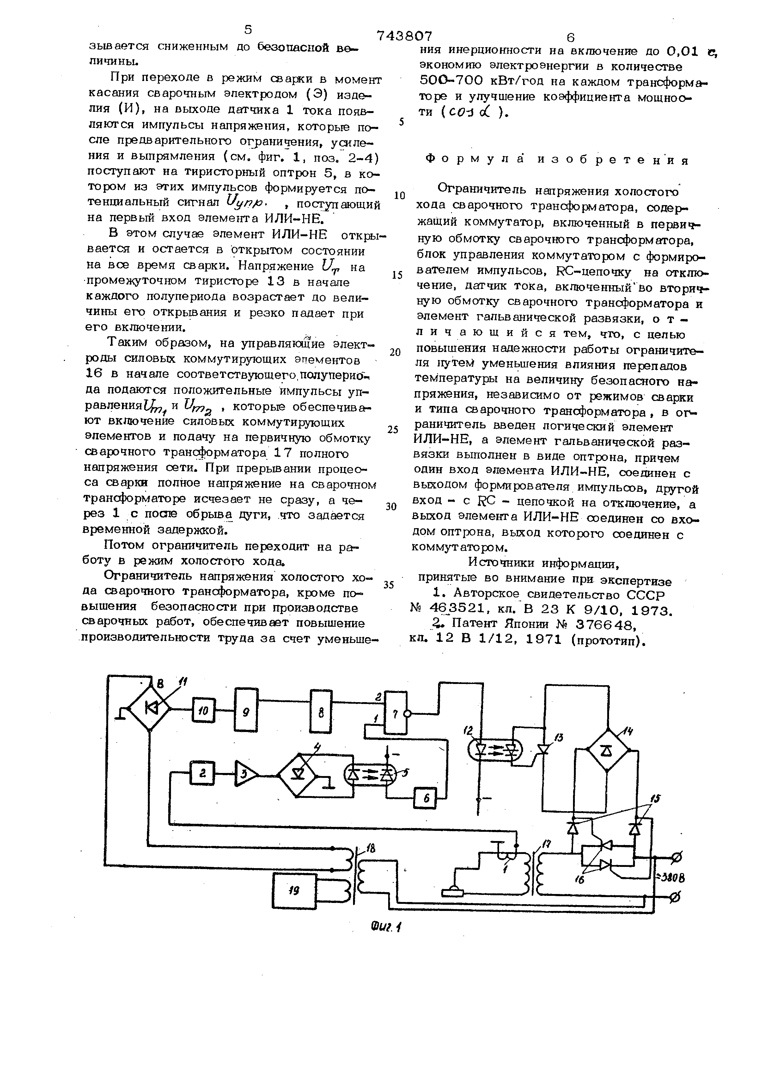 и типа сварочного трансформатора, в ограничитель введен логический элемент