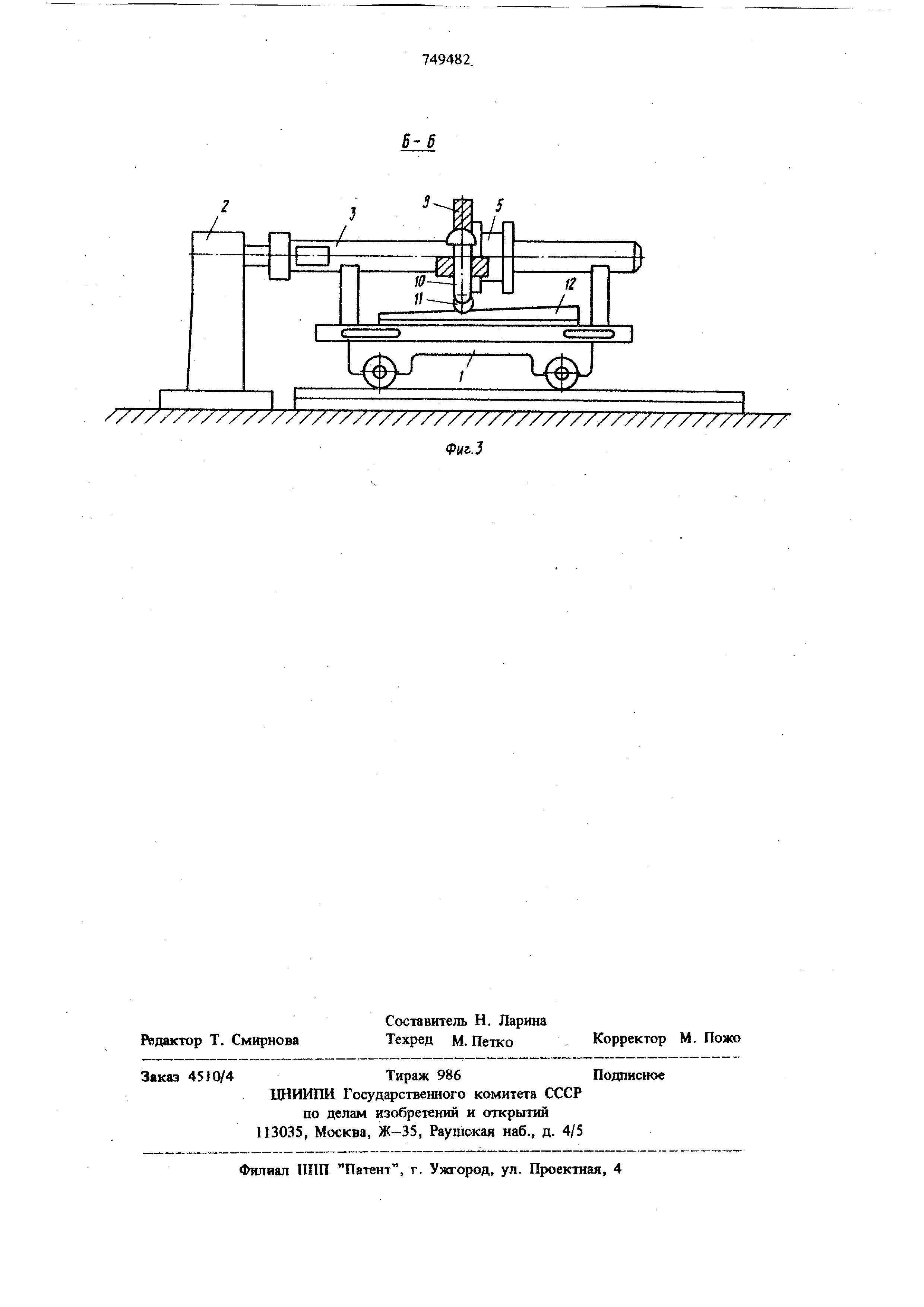 привода 7 передают дорн с дорновым кольцом на охлаждаюпдай стеллаж 6. При зтом поворотный