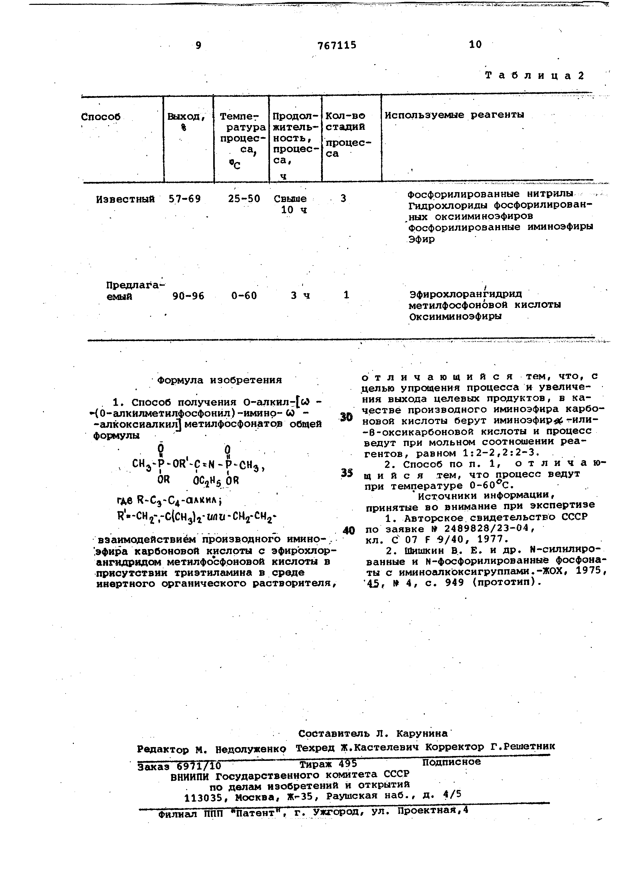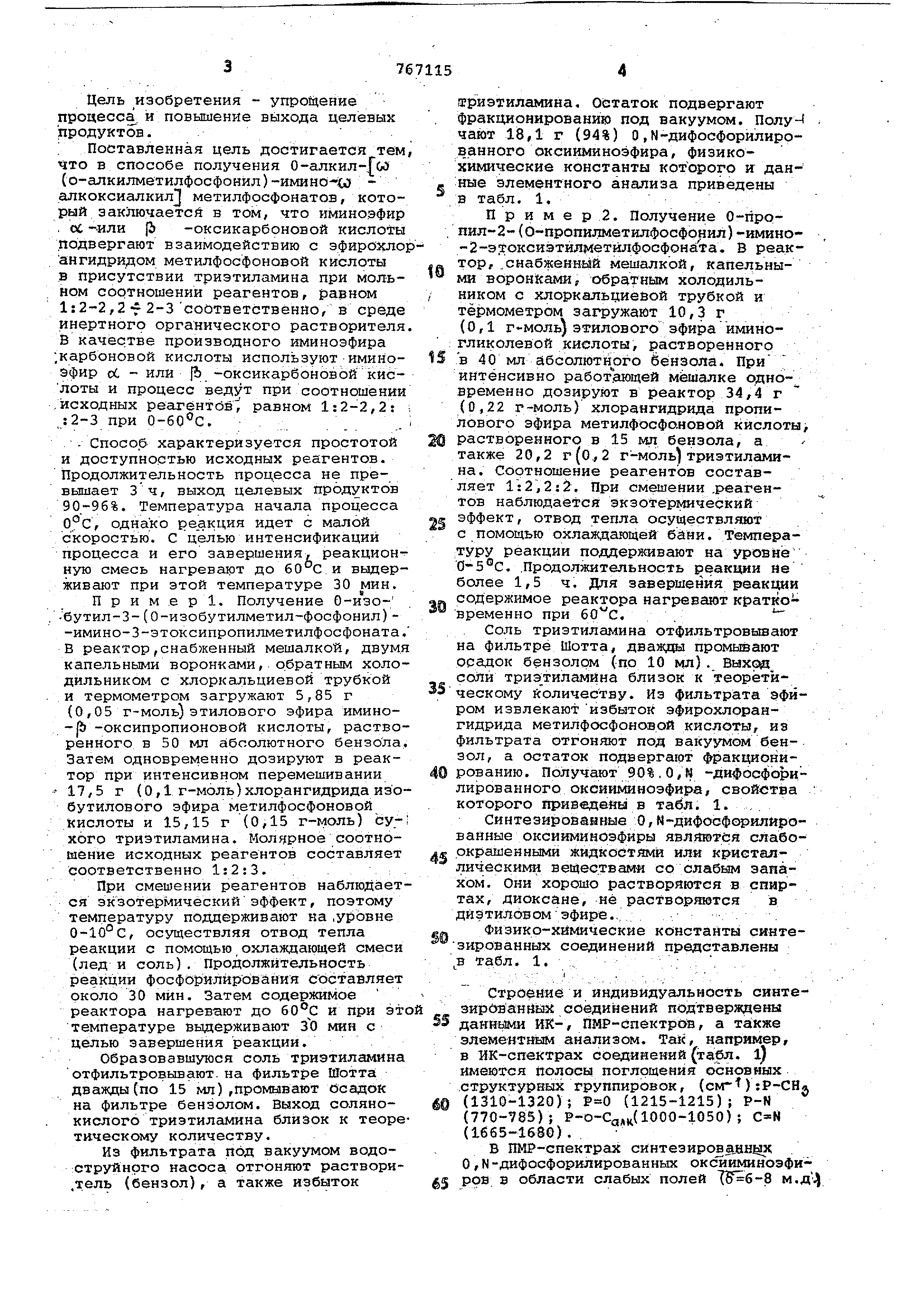 Формула изобретения . 1. Способ получения О-алкил- сд Ч0-апкйлметилфосфонил)-иминр-W -алкоксиалкил