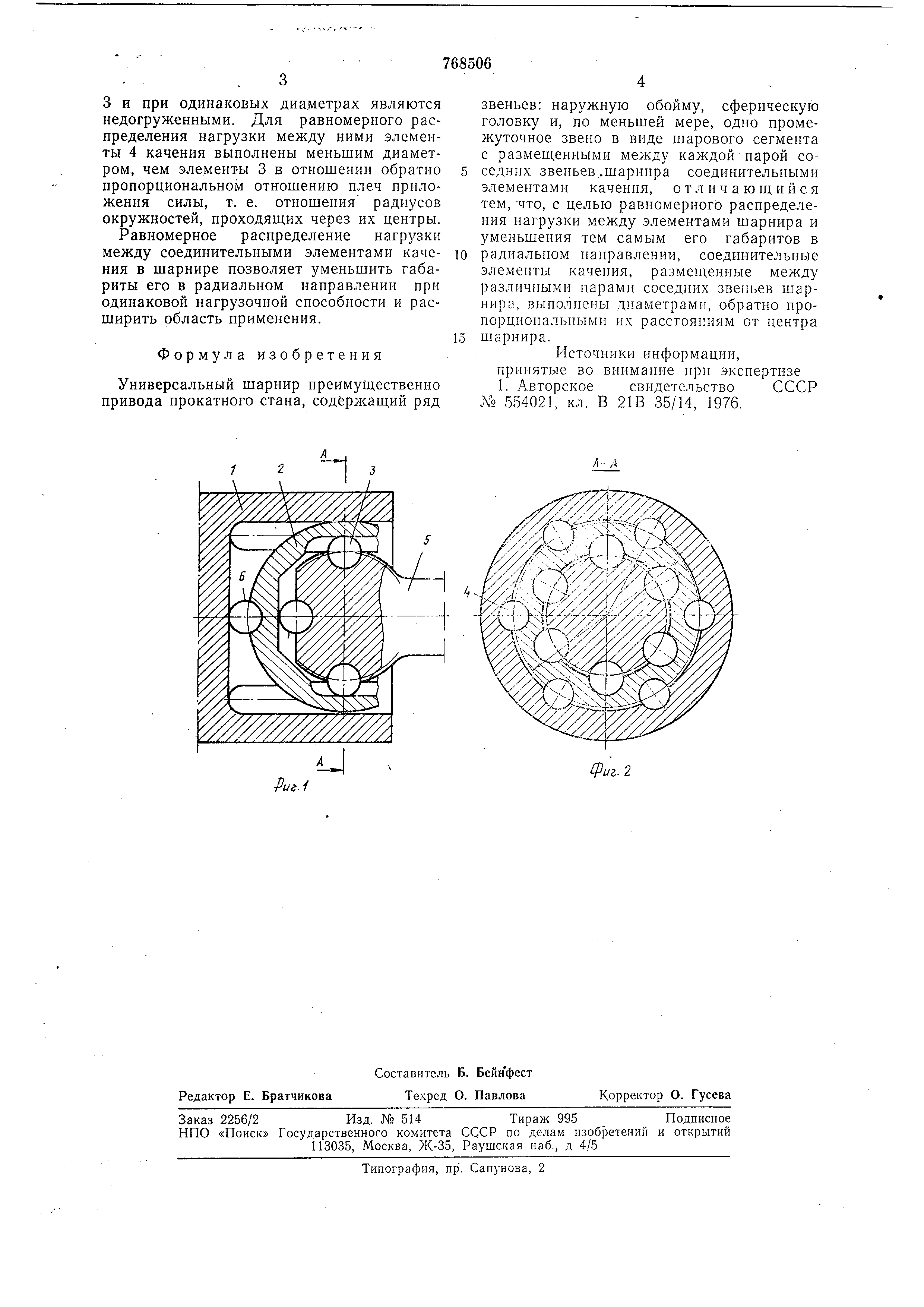 При вращении обоймы 1 нагрузка передается головке 5 через элементы 4, промежуточное