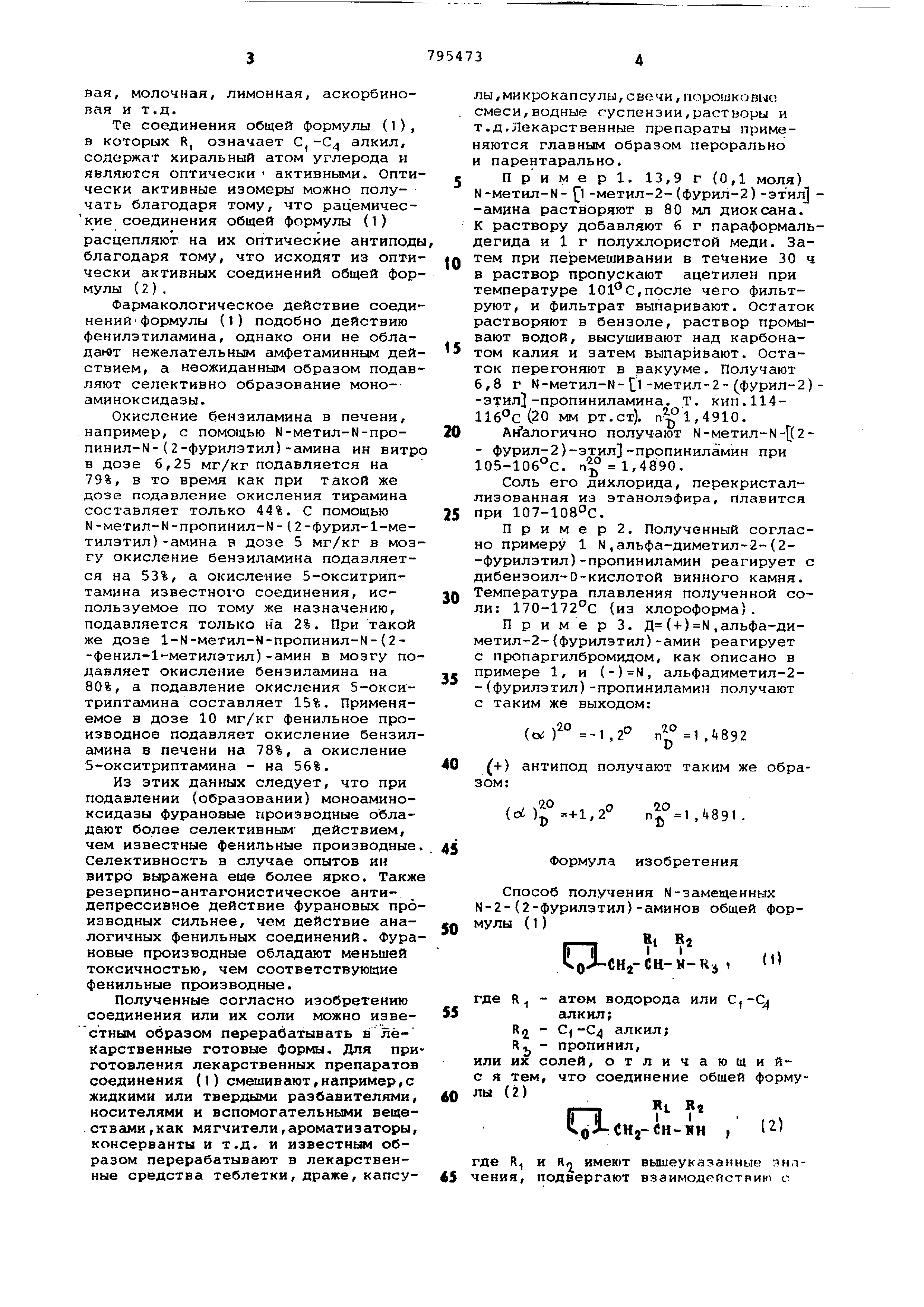 т.д.Лекарственные препараты применяются главным образом перорально и парентарально. Пример. 13,9 г (0,1 моля) М-метил-М-р-метил-2-(фурил-2)-этилJ -амина растворяют в 80 мл диоксана.