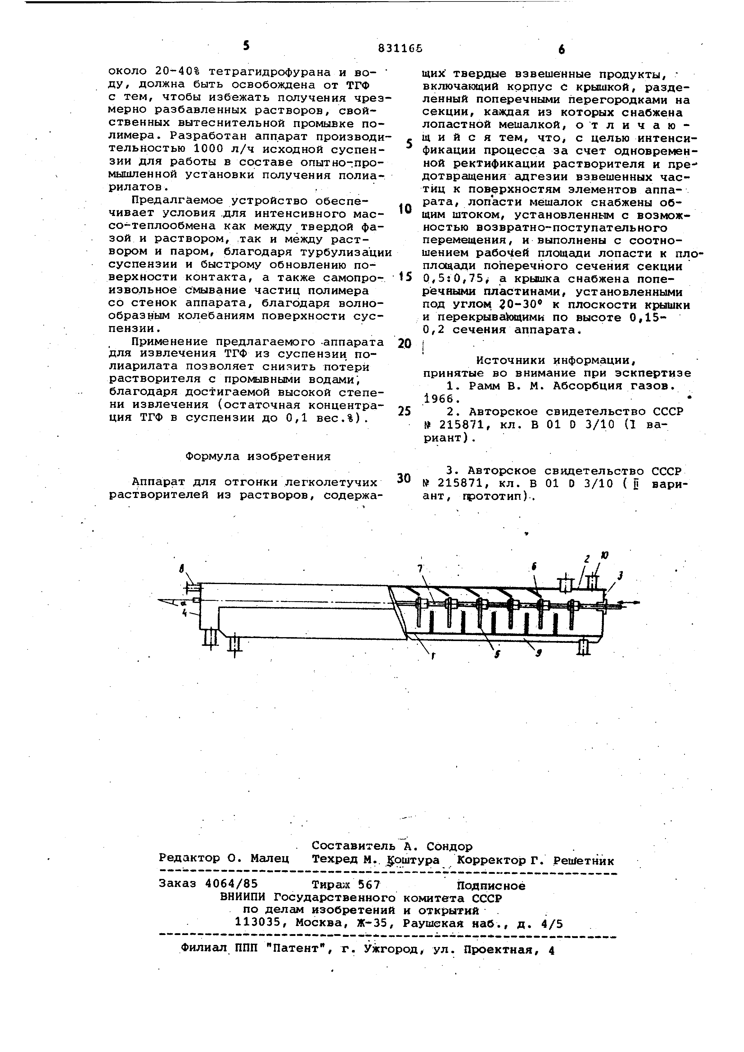 верхнюю часть аппарата. При работе аппарата сусенэия полимера, в которой растворены подлежащие удале