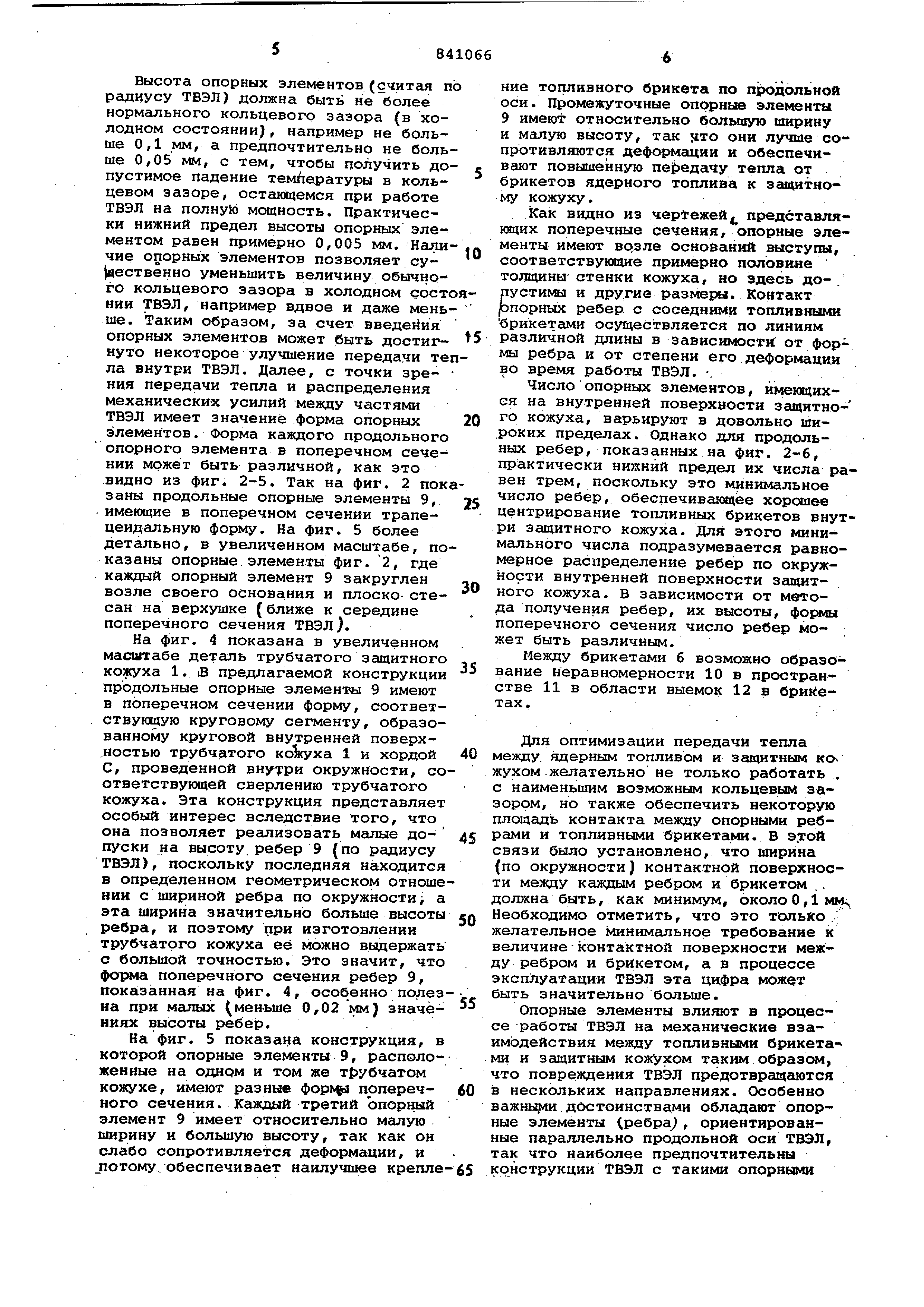 для нескольких возможных конструкций ТВЭЛ, находящихся в данное время в производстве. Высота опорных элементов(считая по радиусу ТВЭЛ) должна быть не более
