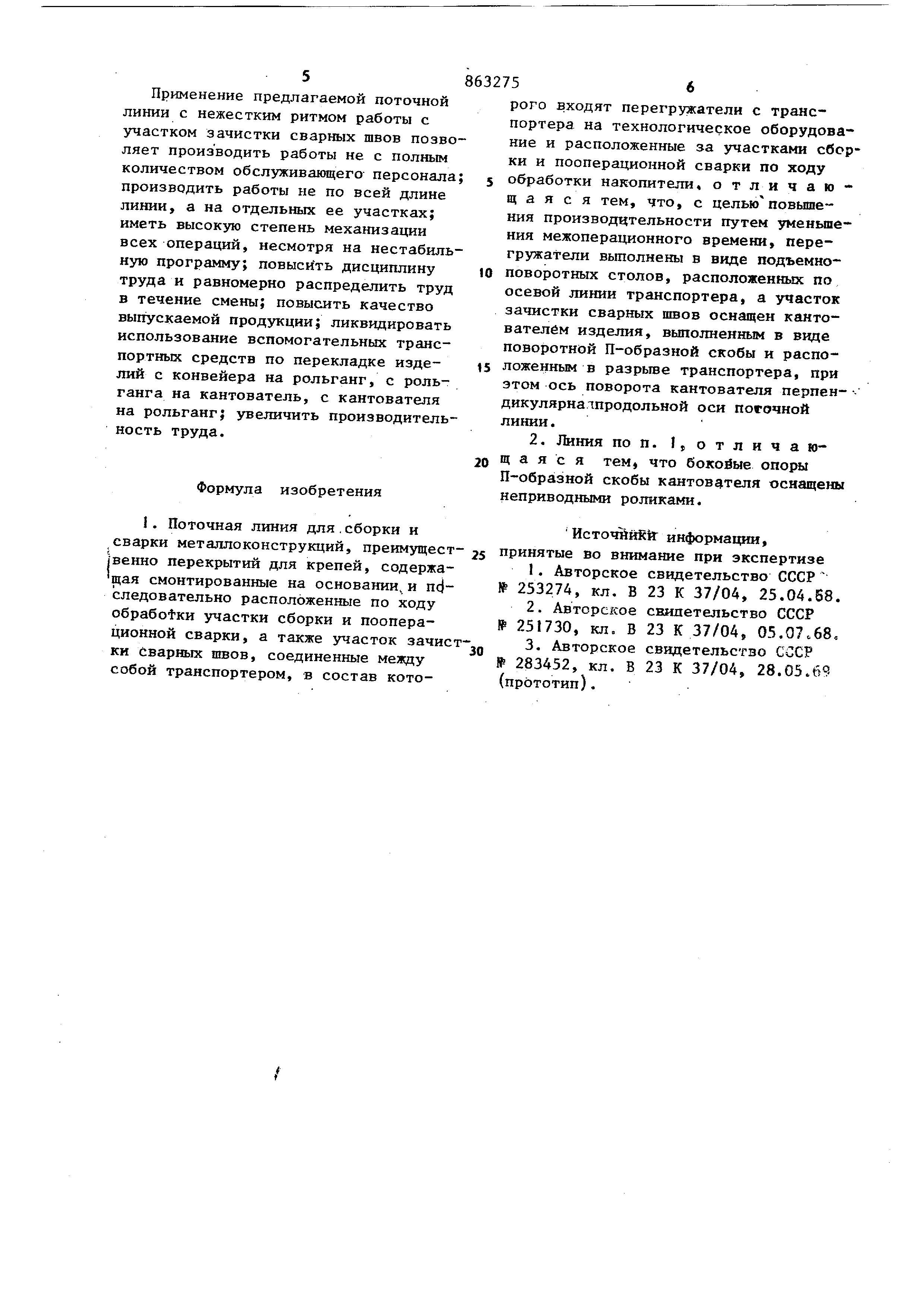 (54) ПОТОЧНАЯ ЛИНИЯ ДЛЯ СБОРКИ И СВАРКИ МЕТАЛЛОКОНСТРУКЦИЙ