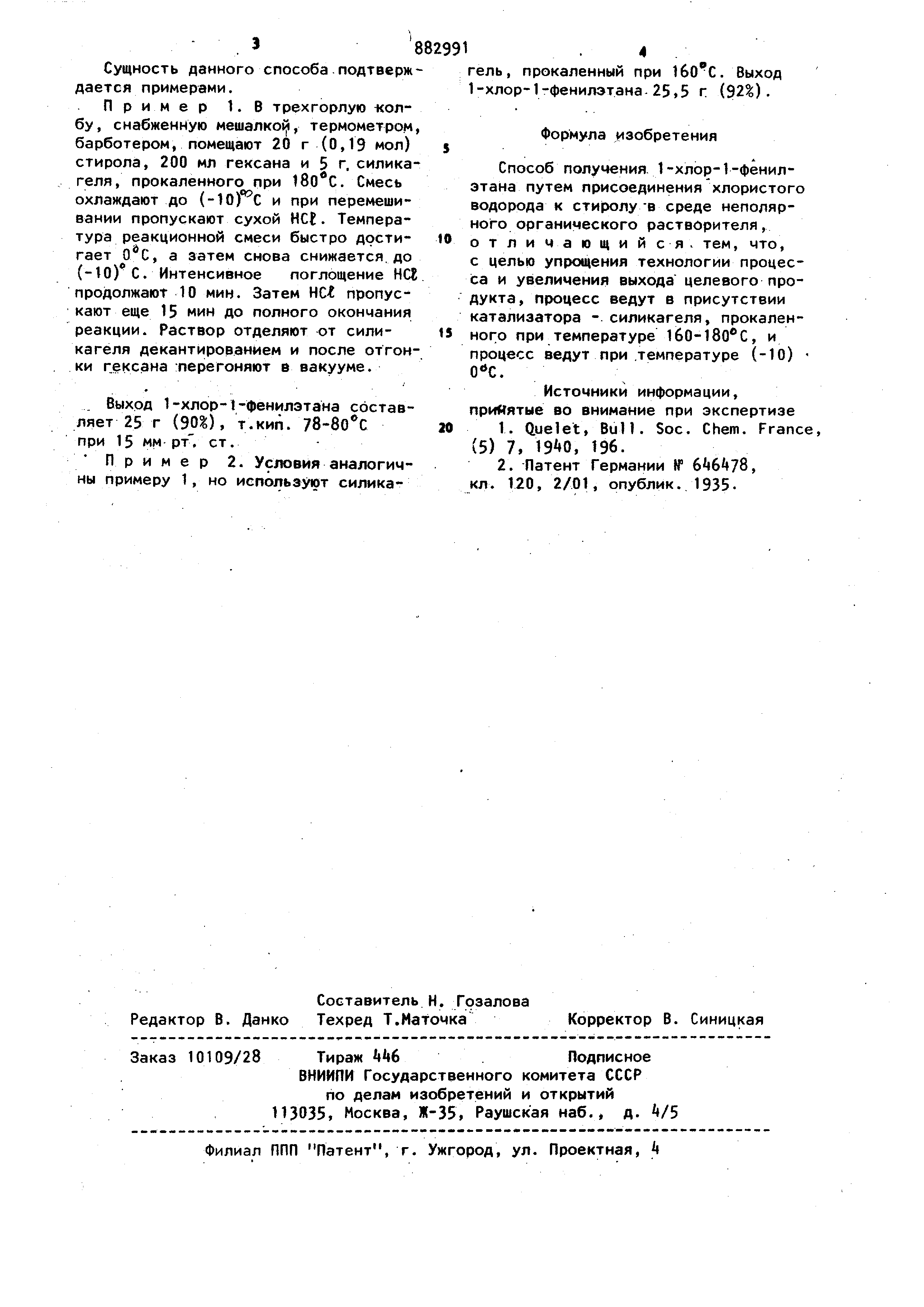 1-хлор-1-фенилэтана-25,5 г (Э2%). Формула изобретения Способ получения. 1-хлор-1-фенилэтана путем присоединения хлористого