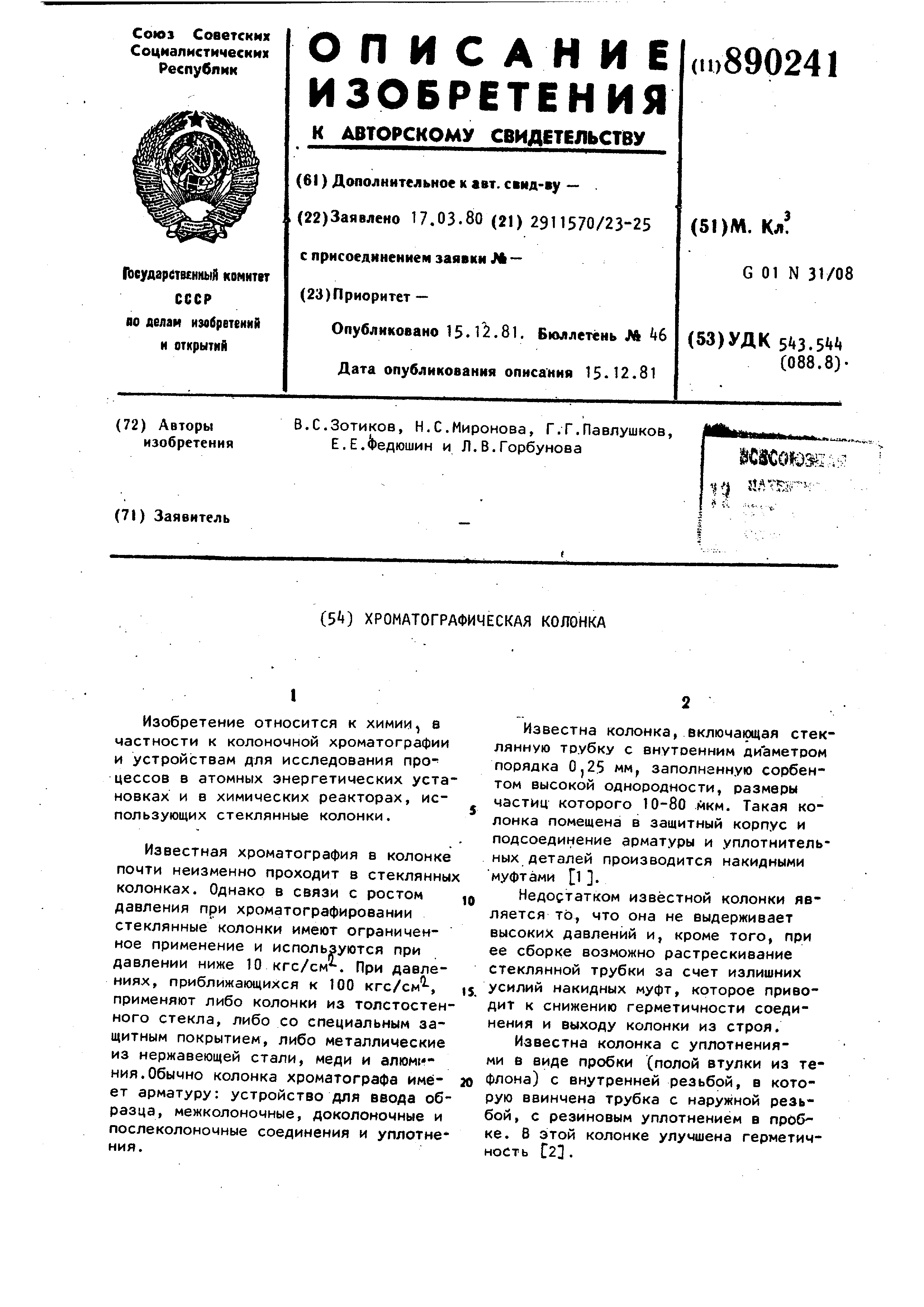 колонка установлена. Формула изобретения 1.Хроматографическая колонка,