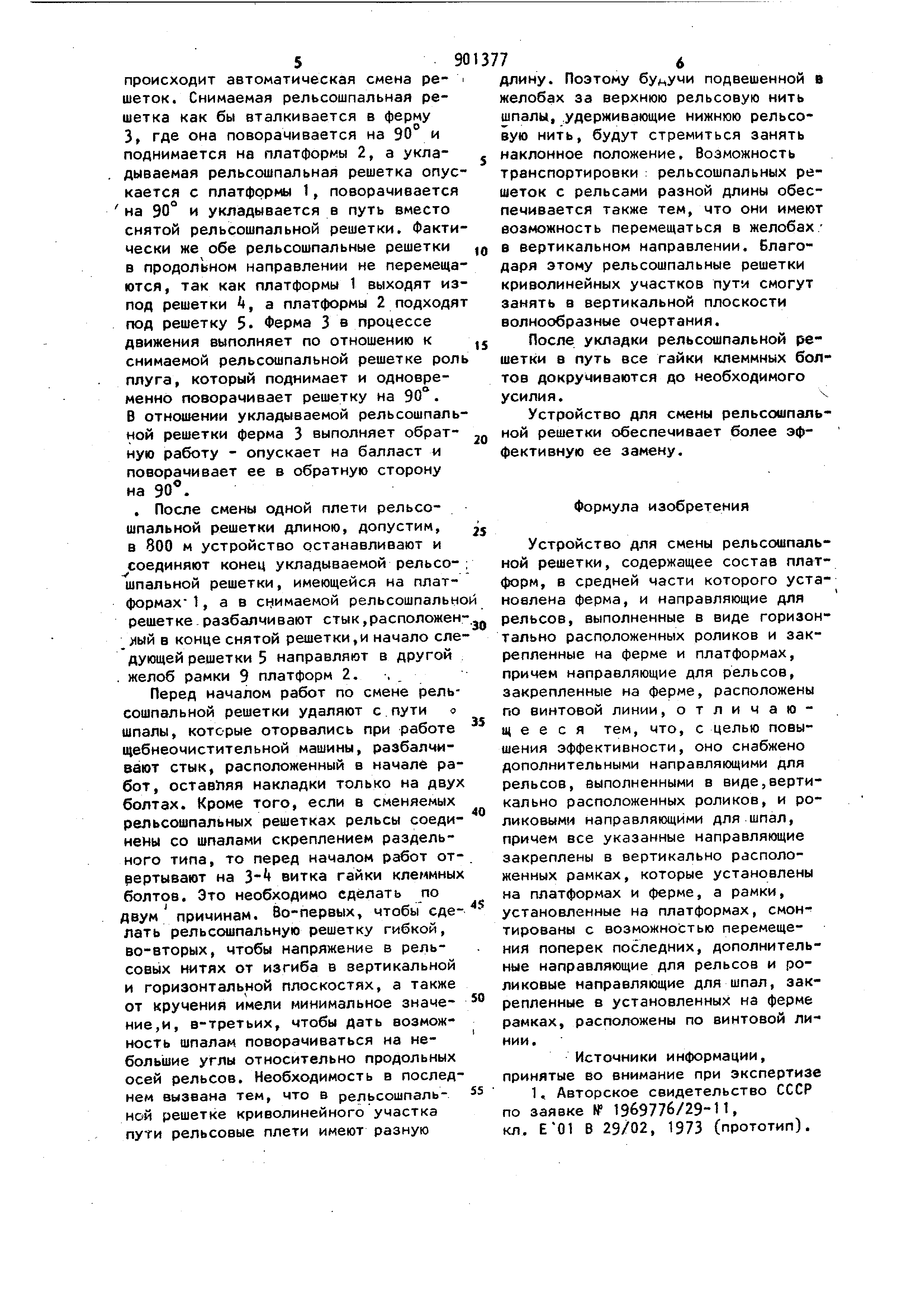 снимаемая с пути реяьсошпальна решетка 5. На ферме 3 закреплены направляющие