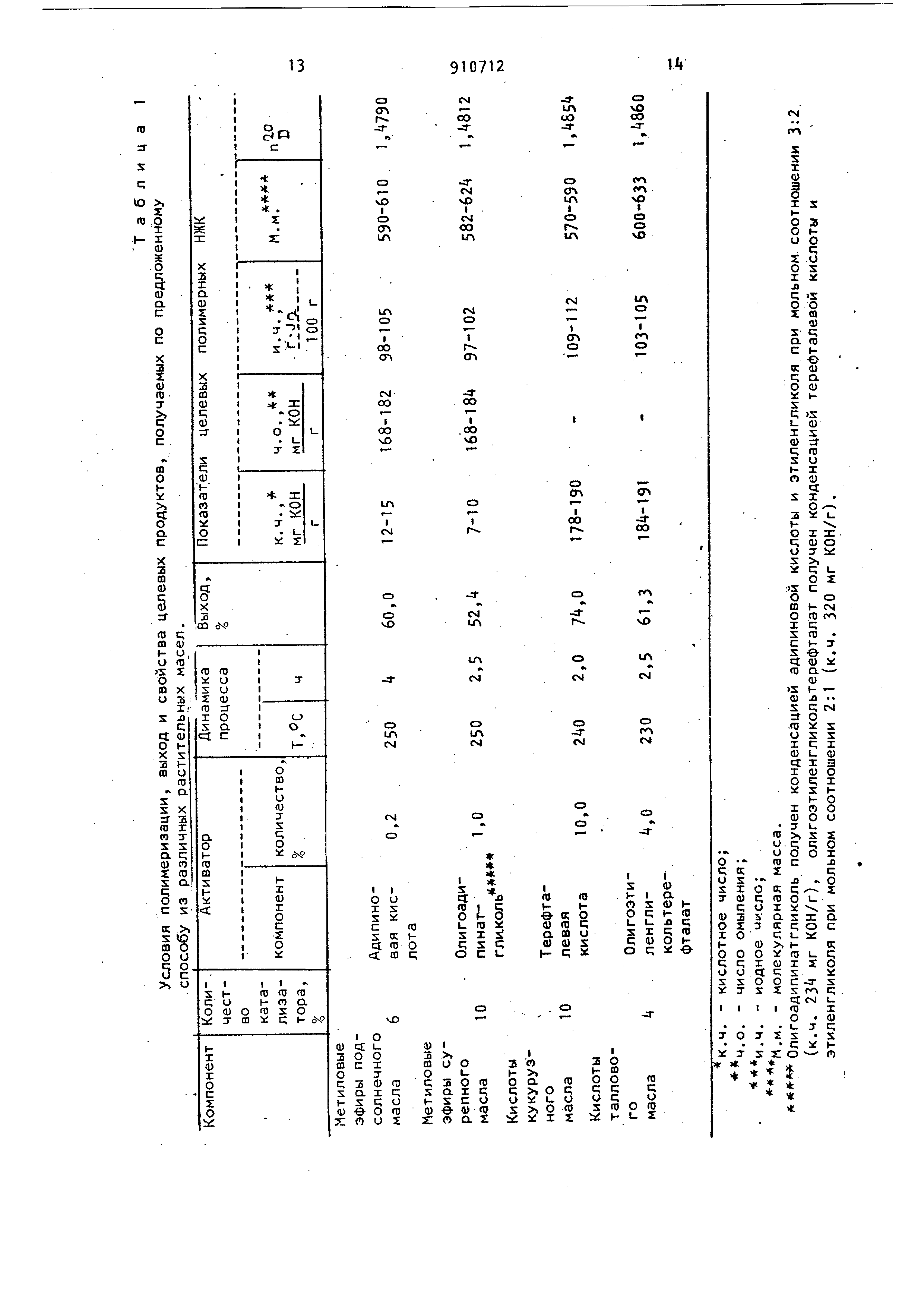 при полимеризации по предложенному способу других масел, сведены в; табл. 1 и 2. Технический эффект от использова ния предлагаемого способа по сравнв