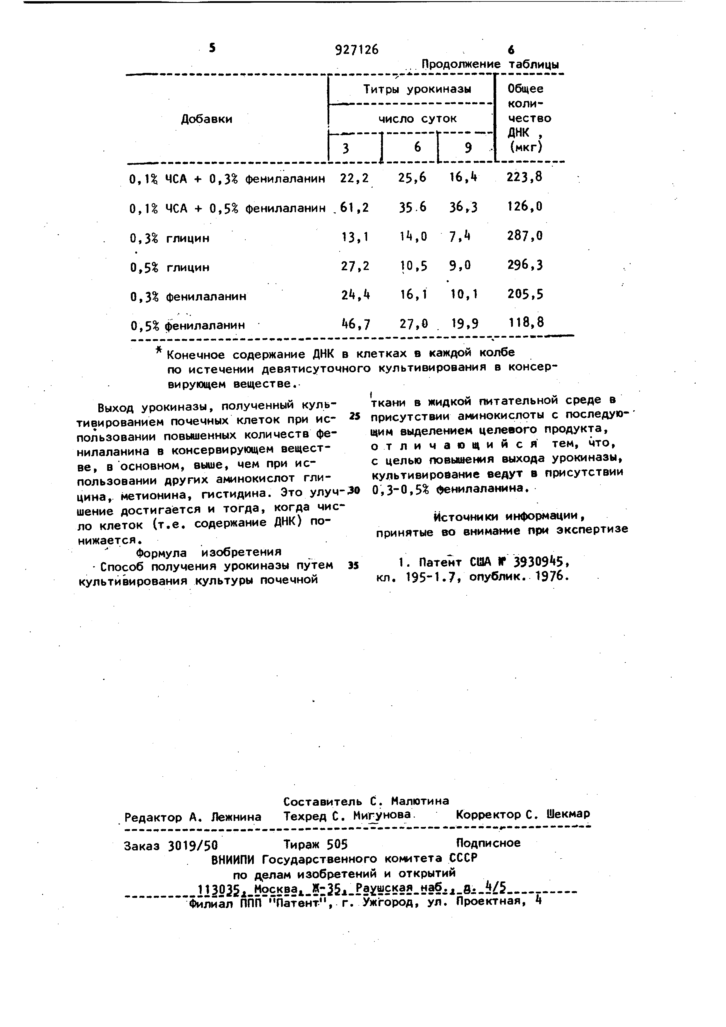 что, ве, в основном, выше, чем при ис-с целью повышения выхода урокиназы, пользовании других аминокислот гли-культивирование ведут в присутствии цина, метионина, гистидина. Это улуч-ЗО0,3-0,5 0енилала «4на. шение достигается и тогда, когда