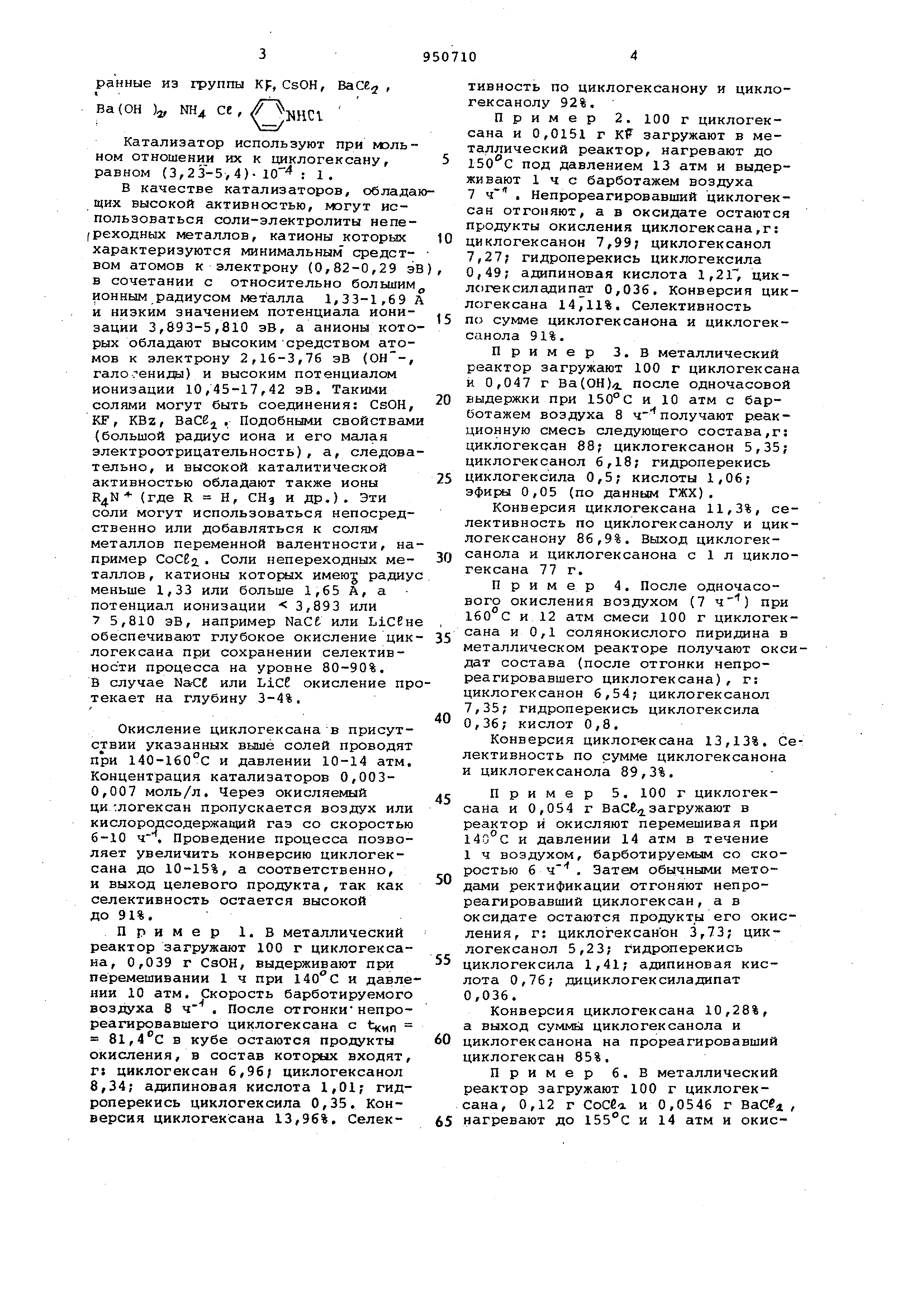 Катализатор используют при мэльном отношении их к циклогексану, равном (3,23-5,4)-10 4 : 1.