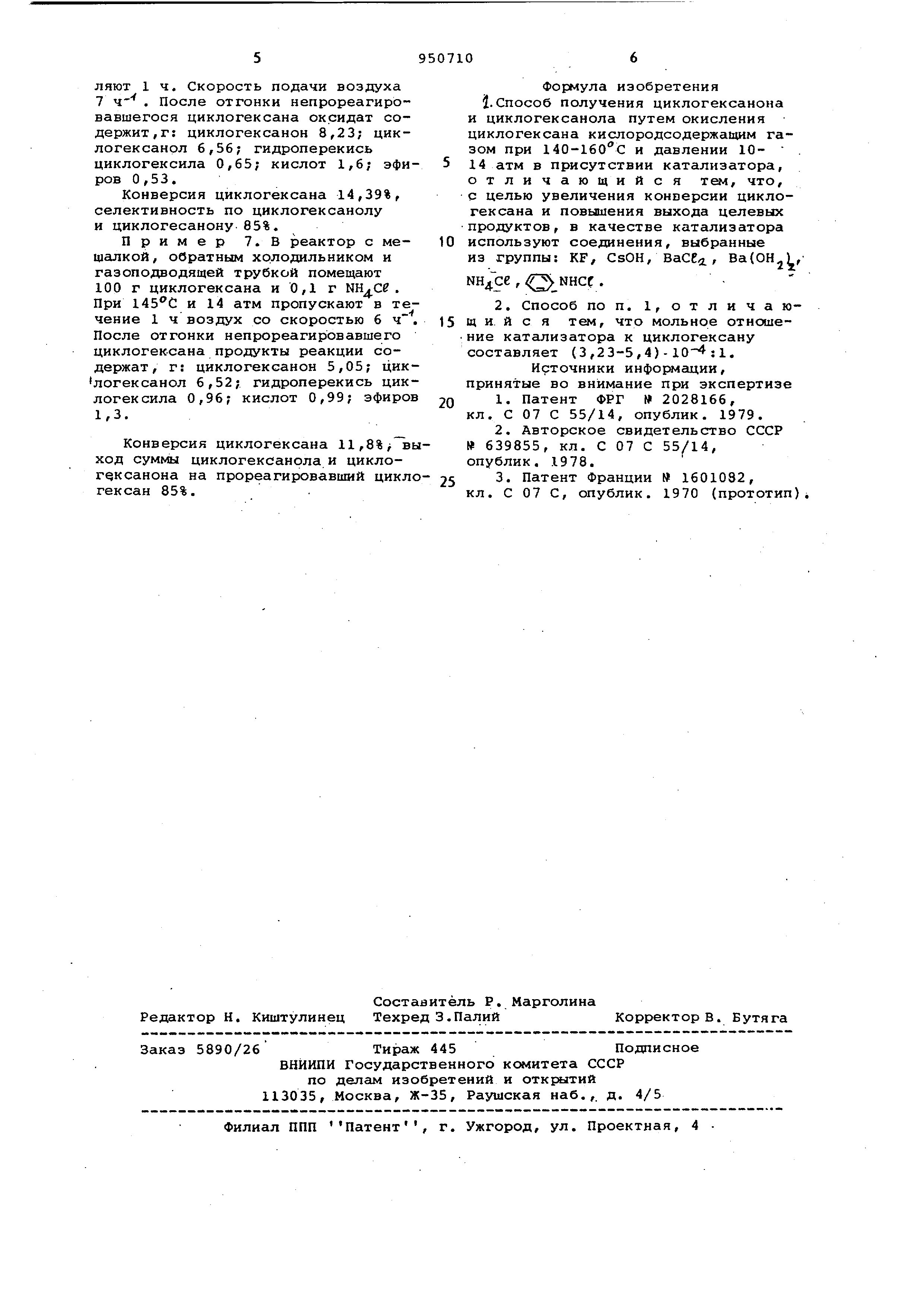 катализатора к циклогексану составляет (3,23-5,4)-10 :1. Источники информации,