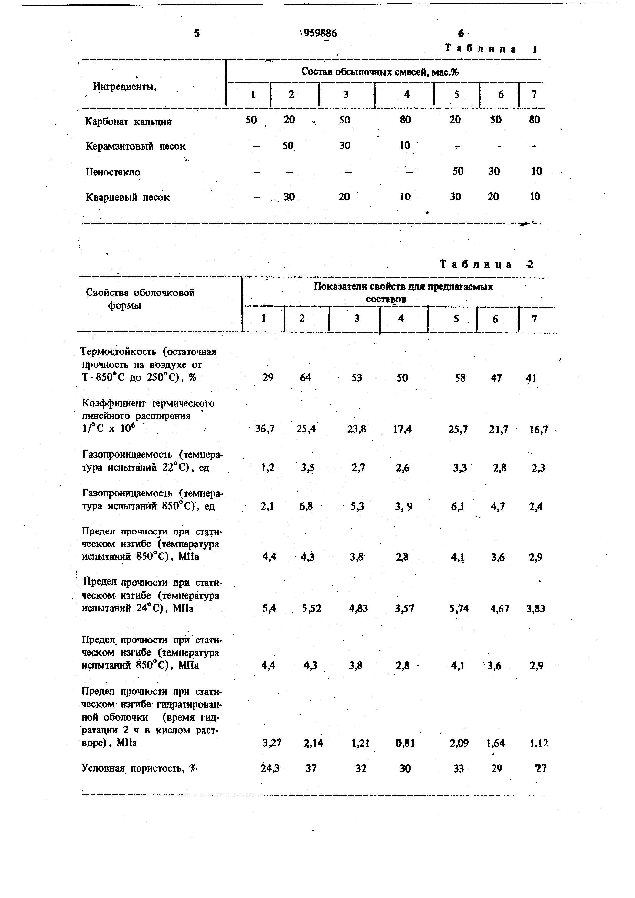 Состав и свойства предлагаемой смеси для обсыпки приведены в табл. 1 и 2. Свойства оболочковой формы Термостойкость (остаточная