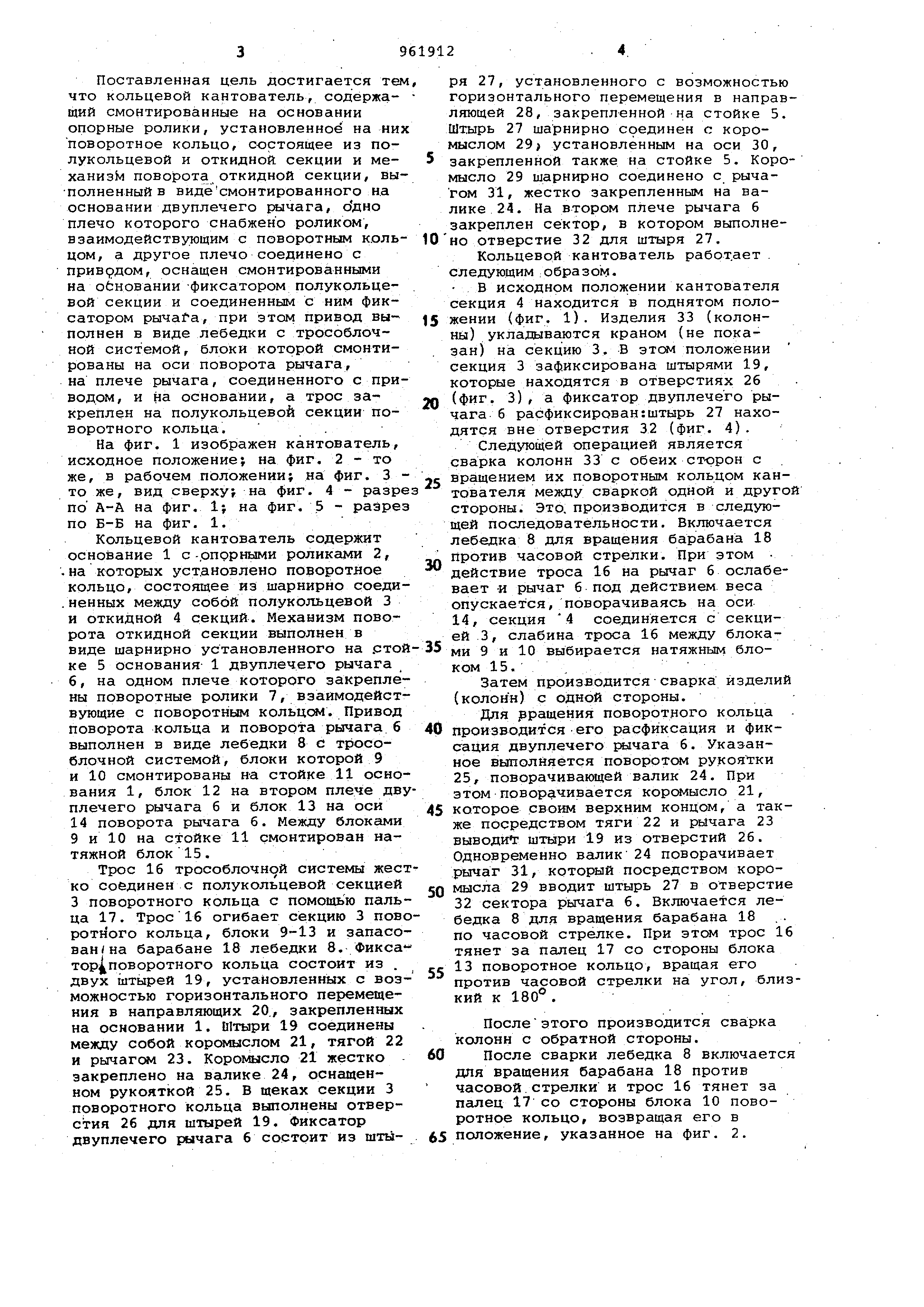 грузе влево. Сваренные две колонны 33 снимаются с кантователя и последний готов к повторению цикла. Применение предлагаемого кольцевого , кантователя упрощает конструкцию