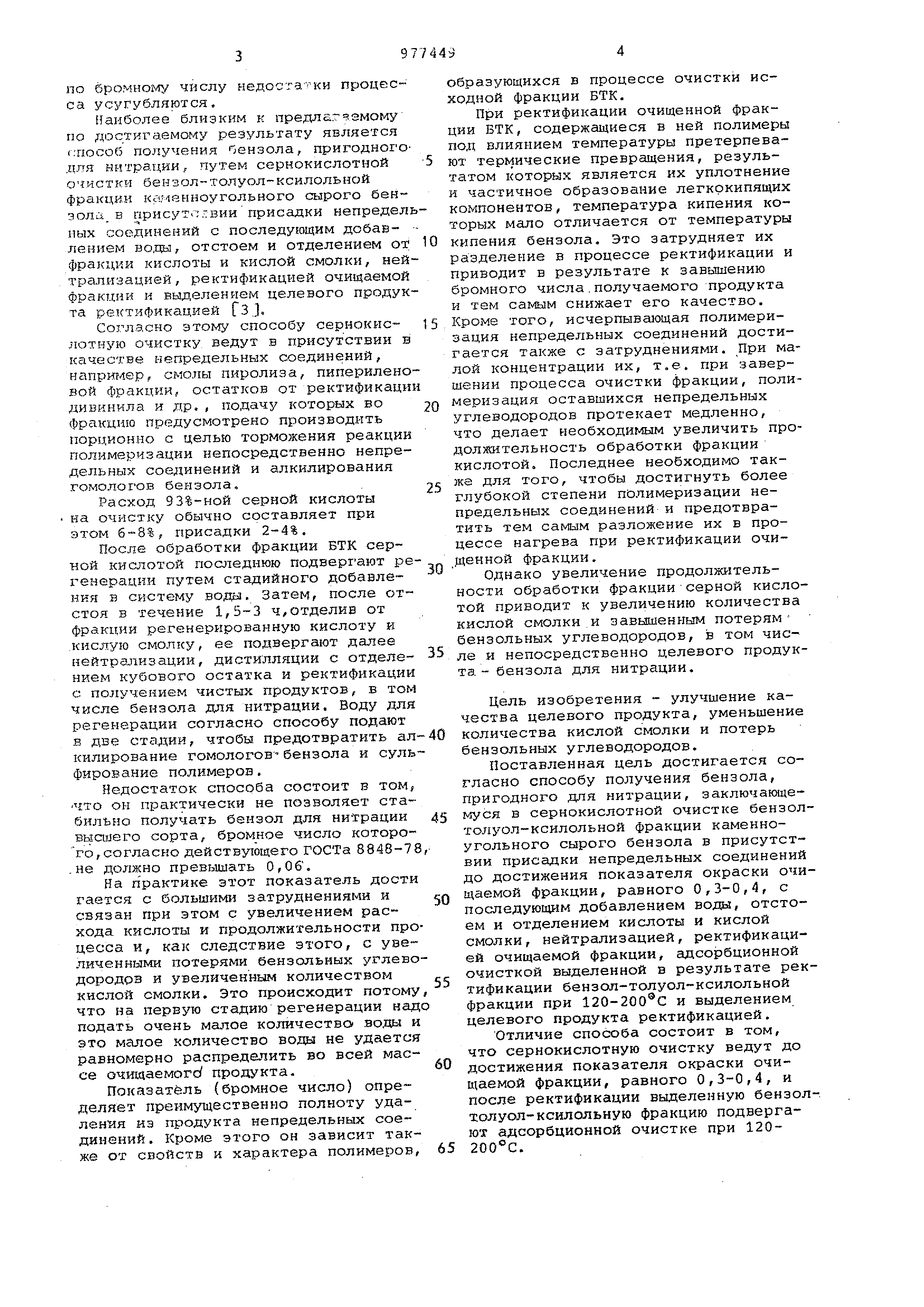 и позволяет несколько уменьшить потери бензольных углеводородов. Од10 нако в связи с тем, что получение бензола, пригодного для нитрации высшего