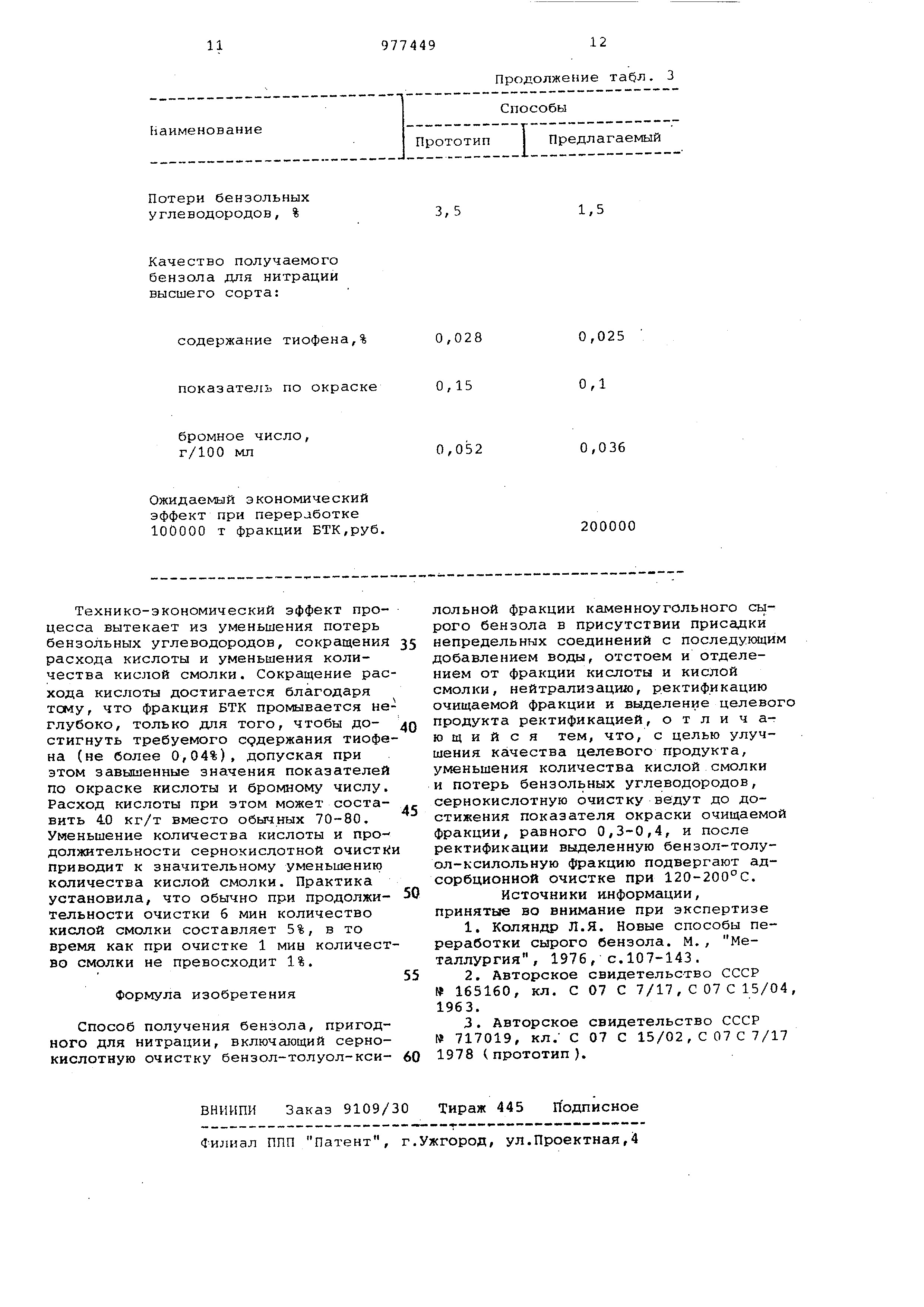 по достигаемому результату является с.тюсоб получения бензола, пригодного