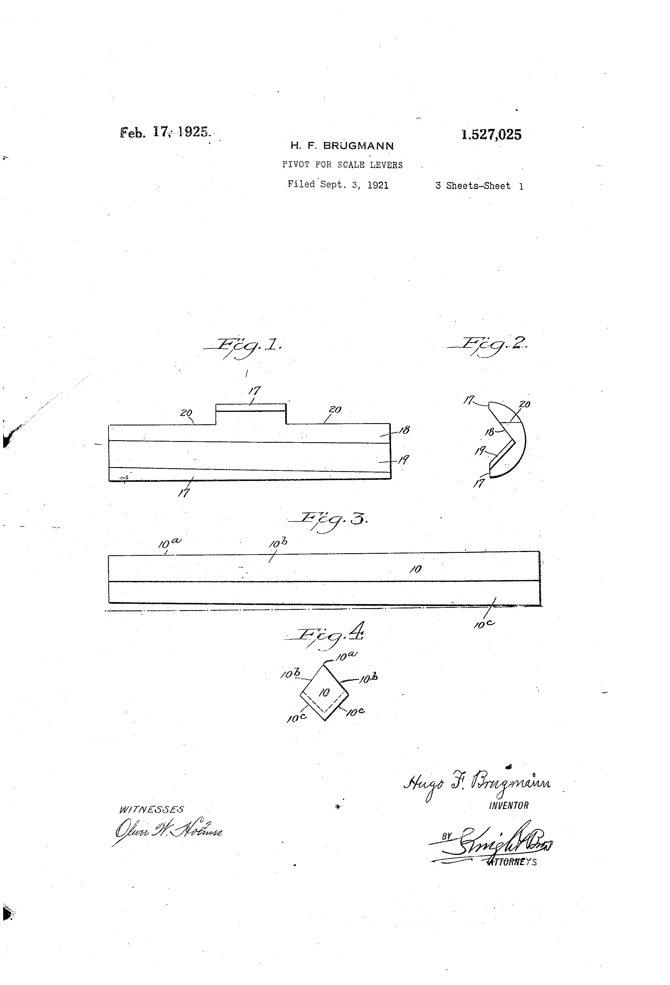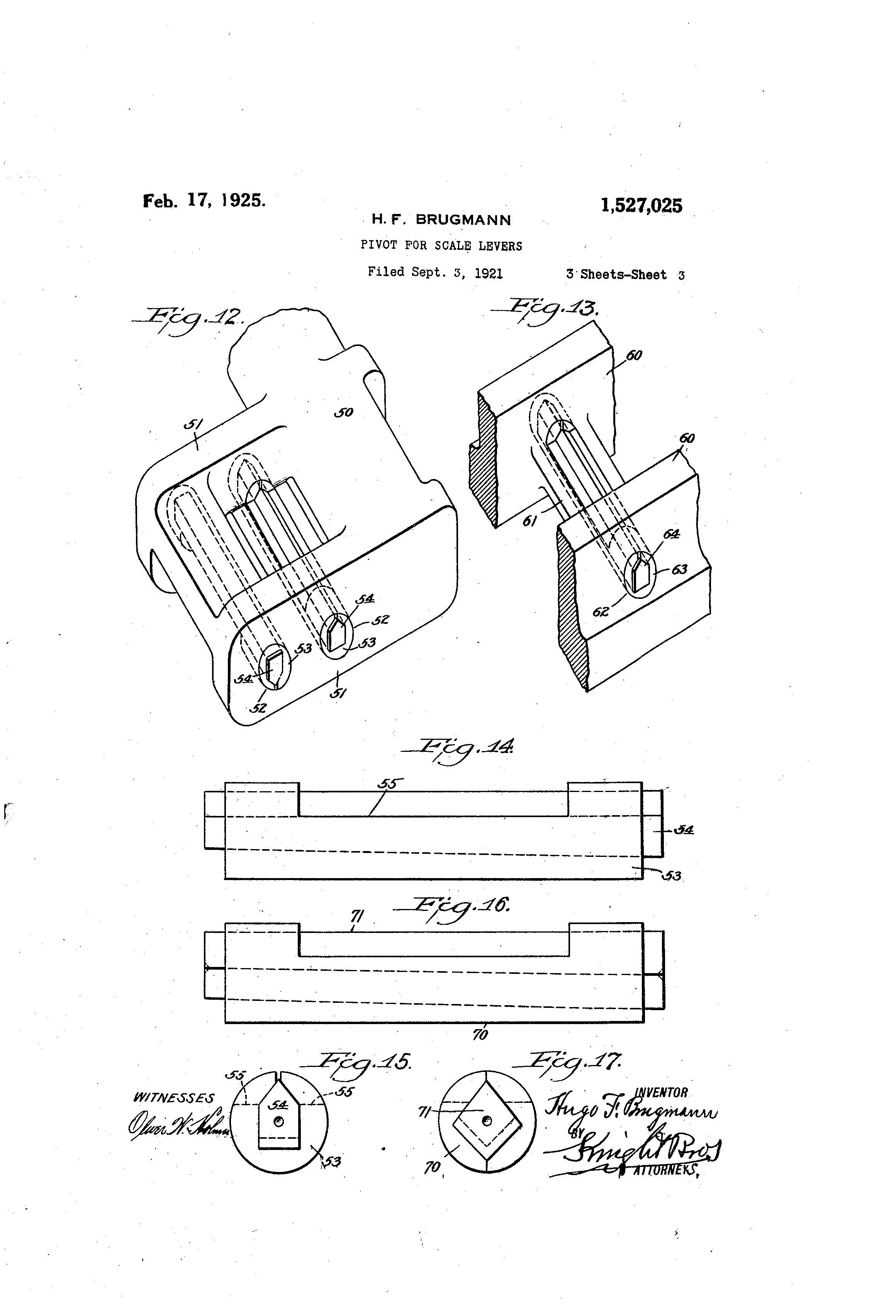 claim:- 1. A naacliinecl-in pivot for scale levers comprising ai-i exp,,insible pivot holder ocket of a seal ,tdal)ted to be seated in a s e lever, aiid 9, pivot b,,ir seated in said holder nile s ,irld for d with face whicli are respeetively parallel witli and inclin(,cl to the longitudii-ial axis of the pii,ot bar, whereby the' ivot bar forces the holder into binding p 3 eiiga(-('mei-it witli the socl@:et of the scale lei,ei- and iiiailitains its -working edge in fixecl i-el,,ttlon t6 the scale leA7er. 2. A i.-emovable pivot for selile levers comprisilig an exl)ansible soelceted holder adapt40 ed to fit a liole in 9, sc,,ile levei-, and a pivot b,Lr fittiiig the soclcet. of said hold,ar, said holder and pivot bai- being formed with corilesl)oiidii-ig eiigyaging siii-faces arallel p witli the lon(yitudinal axis of the pivot bar 4-) -,Lrid otlier e-@igao-iino- surfaces which are inclined to s,,tid axis. 3. The combination with an expansible pil,ot liolder formed witli ,t receii,iiig socket, &o one f,,ice of ivliieli is I)ai-allel with the lon(yittidinal a,xis of the holder wliile ,tnother flt'ce is ta,pered oi.- inclined t6 said txis, oi' a knife ed.-:e pii7ot I)ai@ liivii-ig a sur@face parallel wi.@h its loi-igittidinal axis qiid allother siirf,,ic,e inclliied to its s,@iid axis. 5 T 5 4. The. combination with ,Ili exi),iiisible e t holder f6i,;Ocli@ ted pivo iiie;d in coiiiple men'tar), sectioiis, a li:nlfe edge pivot bir fittiiig the socl@et of saicl sectional 1-tolder, correspondiiig enga(,ing faces of the holder and 6o I)i-,,ot bar beiiig inclinecl to the axis of the b@,ii- to cause the holde@r to expa-iicl whei the I)ar is forced therein. a. The combination witl-i a sc,,tle lever having a slibstontially cylindrical machined 65 I)ivot-receiv,l,ng soelcet, of an ext)aiisible socketed I)ivot holcler shapecl to fit and be adjlisted iii the socket of said scale lever@ and a longitudinally tapered pivot bai.@ seated in said holder. 6. The coiiibinatioi inith a scale lei,el- 70 li@iviiig a iiiacliined pivot-receiving socket, of an exp@irilsit)le piA7ot holdoi- adapted to be seated in tl-ie socket of S',Iid scale lever, lilid a pin,ot bai- seat d i e n said liolder aiid formed Airith faces which are reSpeetilTely I)arallel 75 iAItli and ii-icliiied to the loiigitiidiiial axis of the piaot bai@, ivhei-eby the lioldei- is exI)ancled into binding engao-emeiit ii,ith the socket of ttie seile, lei,er "tild the worli:ina edge of the I)ivot b,,tr is maintaiiied ii, tiie 80 desii-ed ingtilar relation to soid leiei,. T. The combin,,i,tion ivitli a scale leier hal,- iiig a iilacliined pii,oi--i,eceiA,-ill(r SOC]cet, o-l' aii adjtist,,tl-)Ie expaiisibl.e piiot liolder foi-nied iiit,]-i ,i loncritudi-nall)- tapei@ed socket, 85 ancl ,t loii[gitudii7,,tlly tapered l@nif e edge@ ])ivot bar fittin- the soeliiet ofsaid holdei-. 8. The coiiab natioi-i with a scale lever liaving a c3,lii-iclric,,tl pii,()t-i,eceii,in- soelket, of an expansible pivot bolde@t@ sliape@l to fit and 90 be adjlisted in s,,tid lovei, socli@t and forined ivith i lono-itticlinally tapered socket, a-nd 'It kiiife edge I)ivot bar tapered longitudi0 e ai n,,tlly t fit the socli: t of s d holder. 9. The combiiaation witl-i a sctle leier liav- 95 ino- a i@einfoi,ced section forined Avith a I illachiiied pivot-receivin(r socli:et of ,Ln expaiisible socketc-cl holcler adjust,,tbly moiintecl iii the socl;@et of saicl scale lea,er, alid @t loligitiidiiially t@tpei-ed piv6t ball fittilig tile 100 socket of said holdei.-. 10. A reiiloa,able pii,ot foi- scale le@,(@rs colliprising ,ii-i expansible socketecl holdei, ,tdapted to fit a liole in a scale lever, an(i a knife-edge pivot bai@ fitting tl-io, socket of 105 said holdei,, said holder aiid pivot b.ar bein. cr foriiiecl witb coi-i-espondin@ ,z eno,,,tcriiig sui faces inclined to the loD-it@lai-iial@ a"xis of t@lie z@ll pivot bar and tlle holder being clit. awa3, to expose the worl6ng kn.ife ed(Ye where de- 110 tn sired. 11. The combination with a reinforced scale lei,er fornied with a pii,ot-i@eceiA7in(y socket in its rein foi,ced pa,rt and 11al7in(r sai(I reiiiforeed I Stifficielltl), pai,t ei.it aNN-a.) to ex- 115 pose the working I)il7ot, o-C in (,.xl)aiisibl(, socketed holder iiioiiiited in tlic. socl.--et@ of s,,tid scale leirei@ and ciit aAva.)T to expose. the pivot, al'id ,t pivot bir wedged in the socket of said liolder. 120 12. The combination ",ith a scale learer formed -with a ivot-i-eceivitig socl@et aii exp I)ansible socki-,ted pivot-liolder rotatably acljust-,Lble, in s,,tid lever-socket, a pivoi bail mounted in the socket of said holder and projectino, beyond the holder at one end, saicl hol(ier a'nd pivot bar having en(raging surf,,ices which I)ermit relative lonLriC7Lidin:il inove.-nent ancl lock eirctimferentialli,, Avbereby the pivot and bolder can be rotated 13( 1,527;025 a together in the lever socket to ,idjust t-lie pivot bar by en-aging the projectin(,, end of said bar. 13. The combination -with a scale lever formed )iith a pivot-ieceiving socl<et, aii expansible socl@eted pivot-holdeli@otatably adjustable iii said lever-socket, ,tnd a pivot bar wedged lonc),ittidinalli, in the socket of zn s,,tid holder the en-,io-in@, surfaces of@ saicl 10 holdei- aiid pivot bar peri-ii'tt@@ng a limitecl i-elative inovemei-it lon"it-LidinalliT and locking eircumferentia,113,. 14. In a device of the cliaracter described, the combination of a member h,,tvirig a 15 socket, a pivot holdei- rotatably ,icljust,,ible iii said socket, and -@ pivot bar NiTedged lodyitud@@nally in said holder, and iiedgin- means securinu botli the liolder aiid Pi.vot bai- in position. 20 1 5. li a device, of the cli,,ti-actei- described, tl-ie combinatioi-i of ,t meinber havin(y t socket, an expansible pivot lioldeirotatably adjtistable ii-i said socket, 9, pivot bar loncyltucliiially Nvedgecl iii s,,iid holder, and locli:- 25 ii-io- the holdei- and btr in position. 16. Tn a dei,ice o-f th(@ charactei- cl-escr