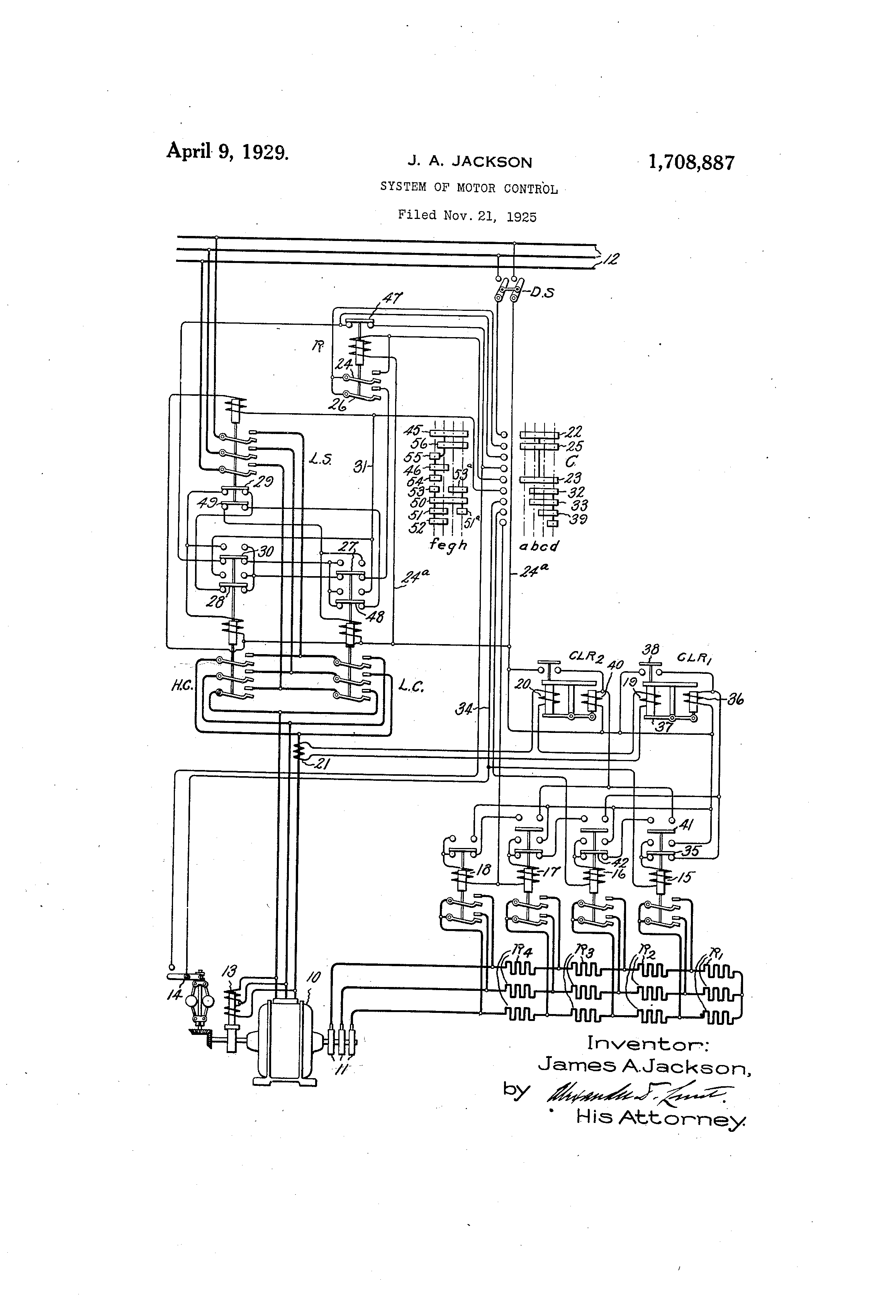 Letters Patent of the United States, is: The -conihination, with an alternating -current indtictioii moior ad:ipted to drive iii(I to I)e di-iven bv an active load, of s,%vitch for e@tablishing'power conneeTo tions for the motor, a resistor arranged to be coiinect6d iii circuit with t-he motor for varying the operating speed thereof, and means I-esponsive t o the speed of the motor for autoi-natically establishin(y a shoi-t circuit 75 aboiit said resistoi, upon@ a change from 'motorin(, operation to. brakin- operation of said mot"'or. n 2. The combination witli an alternating current induction inotor adapted to drive 80 and be driven by "an active load, of switell mechanism for establishing power connee'tions for the motor, a speed controuing resistor connected in the secondary citcuit of the motoi-, independently operable switch 8r) inechanism for controlling a short circuit around the said resistor to vary the speed of the 'Motor, and autoniatic inean@ responsive to the speed of the motor and arranged to effect, operation of said iiidependently op- 90 erable switch mechanism to establisli a sl-iort circuit about said resistor when the operation of said motor changes from motoring to braking opel-atioil thereof. 3. The coinbination with an alternating 95 current induction motor adapted to drive aiid be driven by an active load,-of a resistor connected in the secondary circuit of the motor for controlling the subsynchronous operat-ino, sp@ed thereof, and switeli mecha- 100 nism responsive to the speed of the motor arranged to establish a short eireiiit about Said resisl-lor upon a chaTiLre froiii motoring operation to braking operat@ion of said motor. 4. The combination with @n electric motor, 105 of reversing switch mechanism for controllino, the condection of the motor to a source of supply, tnd means for controlling said reversiner switch mechanism includin(y a, controller having an off and a plurality of op- 110 erative positions and arranged to effect op-@ eration of the reversing switch mecbanism to connect the motor for operation in one clirection wlien the controller is Yrioved to a predetermined operative position from the 115 off position and to connect tl-ie motor for operation in the opposite direction when the controller is inoved to said predetern-iined operat-Lve position from another operative position. 120 5. The combination with an eleetric motor, Of reversing svviteli mechanism for controllino, the power coniiections of the iiiotor, and me@ins for controlling slid switch inechanisiii includin(r t controller havino, a plui-ality of 125 oper,.ttive positioiis ancl arranged to e@fect operation of the reversina switch mechtnisill to establisli and rna intain PoNNer connections for operation of the motor in one (lirection when the controller is moved through an 130 interi-nediate operative positioii froni oiie oper,itive position to a second operative p(sition and to es'L-ablisli reverse power coiineetions for the motor wlien the conti-oller is retui-ned from said secodd I)osition to said intermecliate opeiative position. 6. The coinbination witli an el(,,cti-ic iiiotor of i-evei-sinswitch iiiech,,tnisiii foi- conZ, trollin(r the poivet connee'@ioiis of the iiiotor 10 an(I mearis foi- codti,olliii- sai(-l i-evei-sliig switch mechanism incluclin- ,t controller liaviii(- ,in off an(I t pltii-,tlity of opei,.ttive posittoiis and at-rai)-eci to eff(,ct. opei-,ition of the switch ineclia-iiism to estat)llsh t, 15 poiver connectioiis foi- ol)ei@ation of the motot- in one dii@ectioii wlien the conti-oller is nioN,e(I -I'rojii tlle off po.sition to ari opei,,,ttlve posi 'tion iTit(,,i,iiie(liate two otber ol)ei-ative 't posi -ioii,,, an(I to iiia'ntain saicl powei- coii20 nections establislied wlille the coiiti-olle, is ,idv. tneecl to one of @,:tid other opei,,itive 1)ositioiis and to cqtablisli and mainttin i-ei,orse powei('OnDC'ct.]oDs for the iiiotoi, wheii the coiti-ellet. i.,@ i@etiii-iie(I tlirou(,,Ii siid lii25 t(-,i,medi,,i'e po,@ition fi-oii-i said oiie of@ opc@i-ativ(@ positions to the otlier of said ol)ei@,itive positions. 7. The, coryibinatioii of an electi-ic motor adapted to,(IriN-e and I)e driven I)y an a(,-tive lo,,'.(I, of clecti-oi-esponsive i,evei,sin(y ;wltcb iiiecbanisni foi- conti-ollin,,, the poivei, coni-@ections of the iyiotor, aiid meiii@,, l'oicoiiti-olliiag sai(I i-eierciing switch mechaiiisin iiielti(iiii,, a eonti-oll.ei- litving an off pOSitiOn 35 @in(I t I)Iurality of opei-ative positions and to eiffect opoi-at@lon of the reversill(y SIA-iteli mc(-Iianisiii to establish powei- confoi, opoi-ation of the, iiiotoi- to cli,ive @li(@ lo@i(I in one i,ipoii niovcnieiit of 40 the (,onti-oller froiii the off position to L pi -e(1c,t(@i-ir.ined operitln,e position and to establish t@everse power coiinections to oppose the toi,qtie of the motor to the torque of an ovei-li.itiling load upon the rettirn of the coi,- 45 ti-ollei- from anothei, posifion to sai.d pre(letei-mined operative position. 8. Tlle combination of an altetnatin- etirinduction motor a-ltpted to driv-e and I)e di-iven by ,tn active load, of a iesistor 150 @(-oniiected in the 1,@CCODclary eireiiit of the iiiotor l'or controll'ii,r the operatin(- spee(!tlieroof, electrorespoiisive switch irieclianism for controllina botl-i the power coiinectiods oi, the motor and tlio sai(i speed re,,riilatin(y 55 i,(,@4istoi, 'aii(I iiieai)s foi- e(-,ntrolllii(,,- iteli iiieebanisrr. a coiltroller ii,t@,@ii)g an off position and"a plui-ality of (,pc@i-,itive positiotis a,,-i@an@r(,,d to effect opet-- .,.tion (-,f the S,-Licl electrore,@ponsive switeli (;O 111(@(11,11lisill to 0.@@tLblisil ower p toi- opei-atioji of the iiiotor iAItli ,,,,,,Id tot- iii circuit tlici-e@N-ith to drin,e the load in o,.i(@ dii-ection upoii iiiovei-nent of tli(, (,onti-o!!(@tfl,(lil the ofT 1)(,,sition to a r,5 poqitioti tiid to establisli i-e1,708,887 verse power connections with said i-esistoiin the niotor eireiiit upon the return 