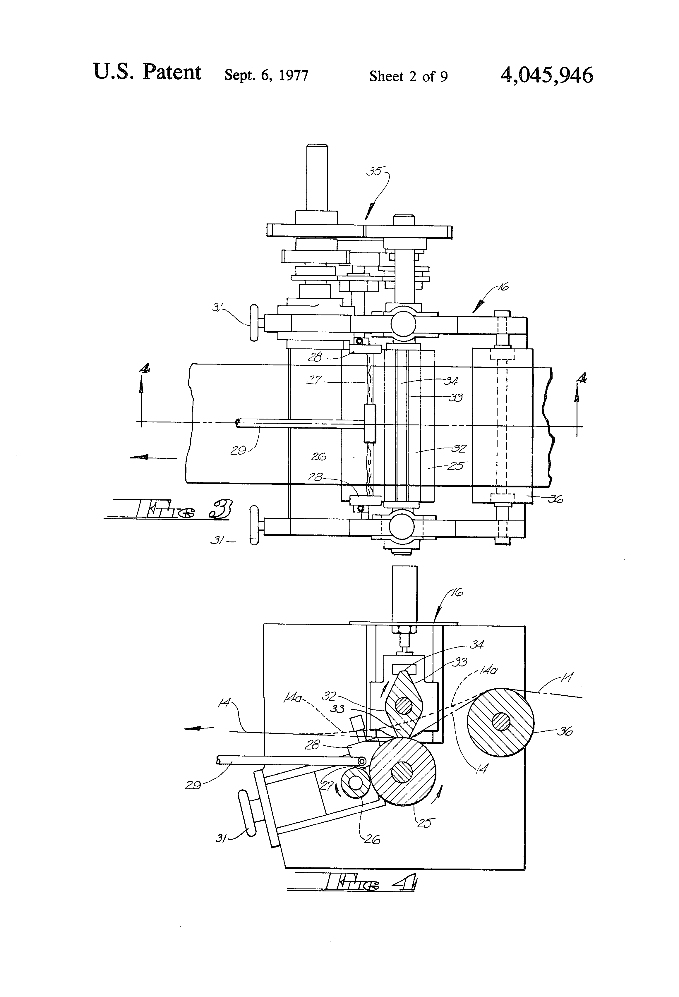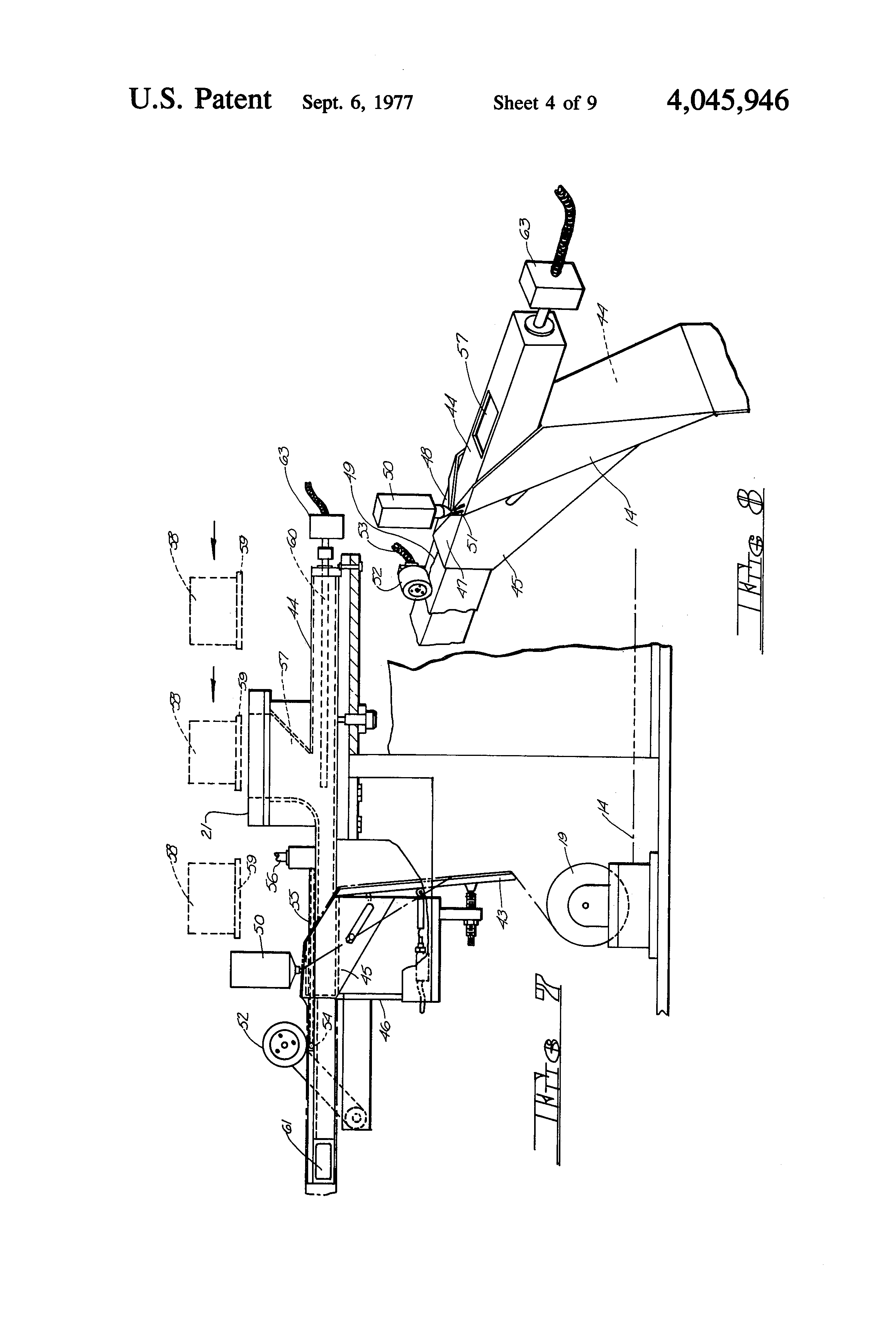For a general understanding of the organization and operation of the apparatus, reference is first made to FIGS. 1 and 2 of the drawings wherein the machine frame on which the various operating components are mounted is indicated generally at 10. Preferably, all of the various operating components will be driven by a prime mover 11 acting through the usual speed reducers, gear boxes and drive trains, as will be readily understood by the worker in the art. While representative drive trains have been illustrated, they do not constitute a limitation on the invention and will not be described in detail other than to note a preference for a drive system operating from a single power source, thereby simplifying the timing of the various components.