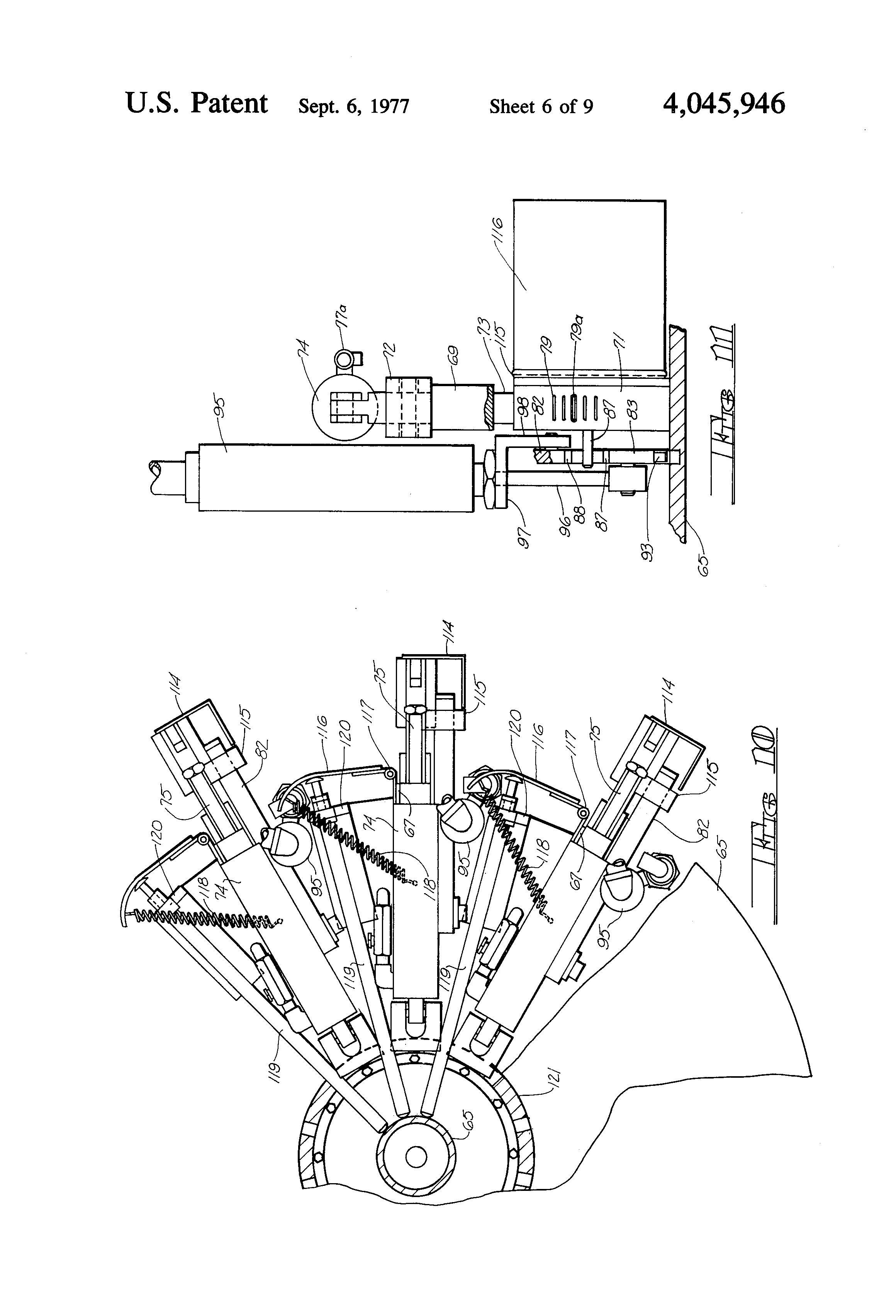 FIG. 10 is a horizontal sectional view taken along the irregular line 10--10 of FIG. 9 illustrating a series of adjacent operating stations on the turret.