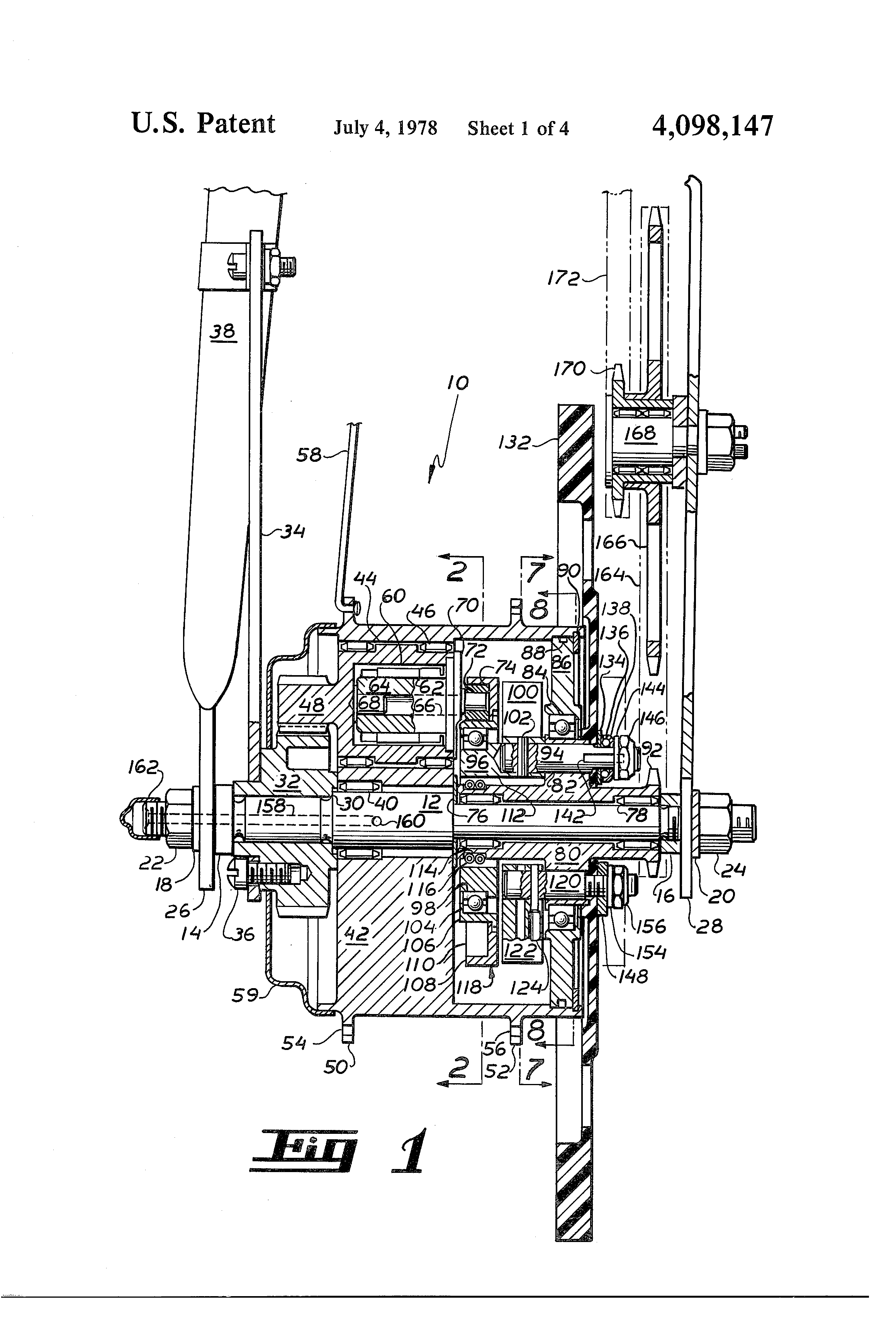 An improved Waddington drive, employed here as a bicycle wheel hub, provides an automatically shifting transmission driven by an operator's foot pedal crank. A number of planet gears journaled for rotation in the hub engage and revolve around a fixed sungear on a mounting shaft thereby carrying and rotating the hub with them. The planet gears are connected through one-way clutches to cranks whose arms follow a cylindrical cam, the eccentricity of which is variable as a function of speed and torque. The cam is pivotally mounted from the rotating input shaft and its eccentricity is controlled by the reaction force between the cam and its followers, the centrifugal force on the cam, and a restoring force developed by a cantilever spring urging the cam to return to an initial eccentricity selectable to match the operator's capabilities. The centrifugal control force is developed by a flyweight integral with the cam and by a counterweight serving to dynamically balance the input shaft.