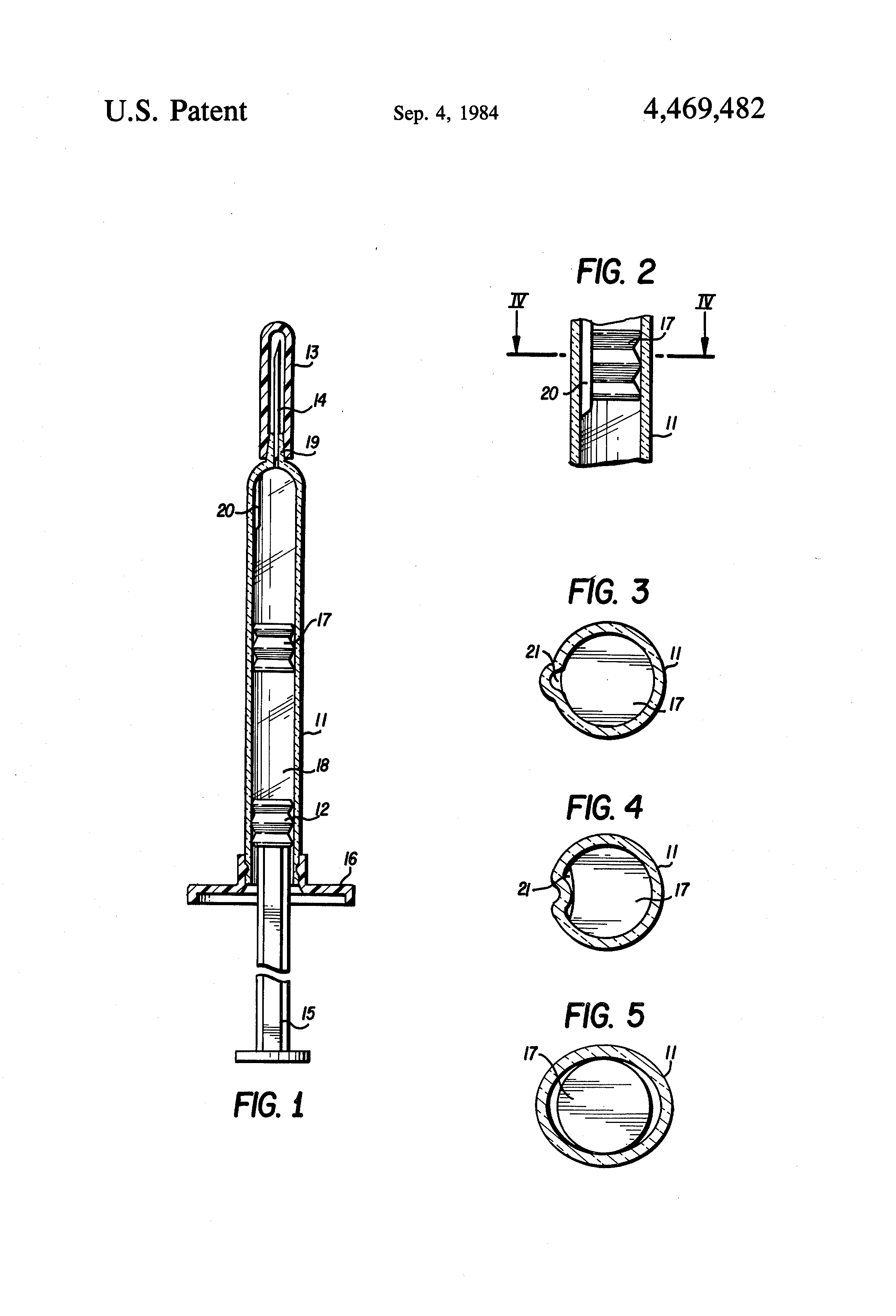 FIG. 4 is a cross-sectional view through the barrel of the syringe according to the preceding Figures, namely along the line IV--IV in FIG. 2; and