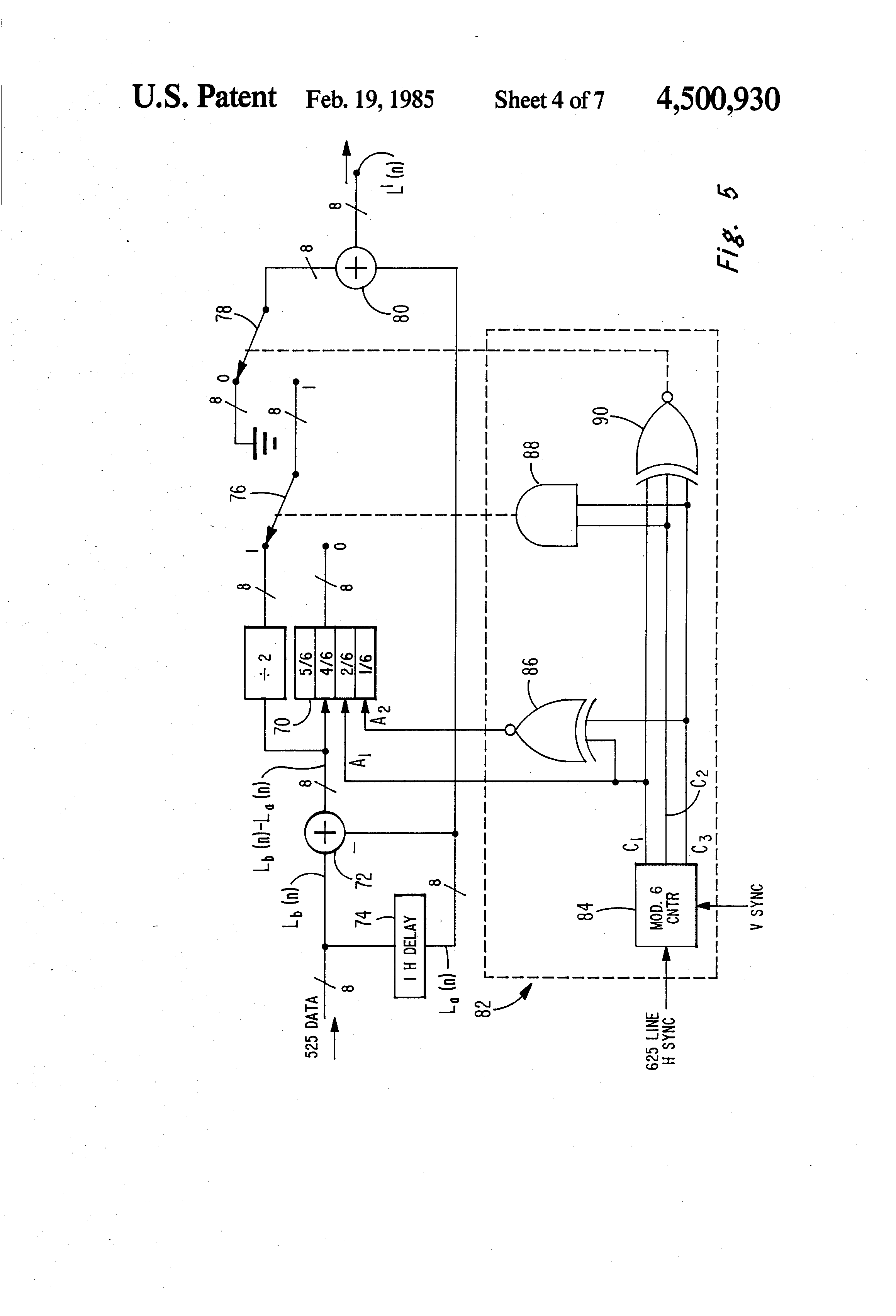 There are many different signal standards used for television broadcasting in various countries. For example, the frame frequency is 30 Hz in the United States and Japan, and 25 Hz in England and Continental Europe. The number of horizontal lines per frame is 525 in the United States and Japan, and 625 in Europe and many other countries. Therefore, when a prerecorded television program is exchanged between such countries which have different frame and/or line frequency standards, a frequency conversion must be provided. Various schemes have been devised in the prior art for converting between the field or frame rates and the line rates of the various television signal standards. However, these schemes require multiple frame stores and sophisticated signal processing hardware to achieve the conversion because of the differences in horizontal, vertical, and frame rates. Such "standards converters" are extremely expensive. It is therefore desirable to provide a less expensive means of converting the standard of a prerecorded television signal to that of another standard. A helical scan video tape recorder, having a capstan that determines the velocity at which the tape travels and at least one video head disposed on a drum which rotates at a velocity to scan the video heads across the direction of tape travel, is arranged to convert from the frame rate of the recorded video to the desired replay frame rate. A control means is provided for establishing the speed of the capstan in accordance with the signal standard of recorded video on the tape and for establishing the drum speed in accordance with the desired replay standard. Adjustment of the horizontal line duration is accomplished through use of a modified time base correction. Line rate conversion is accomplished with a simple interpolation scheme which uses coefficients derived from an approximation of the desired conversion ratio, e.g. 5/6 instead of 525/625. No expensive frame stores are used since the magnetic tape itself is used as a record or store. FIG. 1 shows a block diagram of an embodiment of the invention for converting NTSC to PAL; FIG. 2 shows a block diagram of a modified video tape recorder used in FIG. 1; FIGS. 3 and 4 show diagrams useful in explaining the line rate conversion of the invention; FIG. 5 is a circuit diagram of a first embodiment of a line rate converter used in FIG. 1; FIG. 6 shows logic states of components of FIG. 5; FIG. 7 shows a block diagram of a second embodiment of a line rate converter; and FIG. 8 shows a block diagram of an embodiment of the invention for converting PAL to NTSC. A block diagram of a television signal standards conversion system with the invention incorporated therein is shown in FIG. 1. As an example of operation, a 525-line, 60 frame-per-second (Hz) recorded NTSC television signal is replayed as a 625-line, 50 Hz frame rate PAL television signal by this system. A video tape replay apparatus (VTR) 10 accomplishes the frame rate conversion by reducing the headwheel rotation rate to 50 Hz and produces a television signal having the recorded 525 lines rate but converted to a 50-Hz frame rate. Thus the horizontal line duration is approximately (V525 ×TH525)/V625 =76.25 μs in this signal, wherein V525 and V625 are the vertical frequencies for the 525 (NTSC) and 626 (PAL) line systems respectively and TH525 is the line period of the 525 (NTSC) system, which is about 63.55 μs. Signals from the modified VTR 10, PAL sync generator 20, and reference oscillator 22 are applied to a time base corrector (TBC) 11. Sync generator 20 supplies horizontal and vertical sync information to TBC 11, and horizontal sync is also used to lock reference oscillator 22, which oscillator supplies a modified subcarrier frequency FSC =FH525 /FH625 ×FSC525,SC525, wherein fH525 and fH625 are the horizontal frequencies for the 525 and 625 line systems respectively and fSC525 is the chroma subcarrier frequency for the 525-line system. TBC 11 digitizes video data at a rate of four times the subcarrier of the incoming signal from VTR 10 and writes this data into its memory (not shown). The data is read from this memory at a rate of four times the frequency provided by reference oscillator 22, which oscillator is locked to the 625-lines horizontal frequency standard. The output signal from TBC 11 comprises 625 lines-per-frame, 50 Hz frame rate video, wherein each television line is of proper duration, the 625 lines being obtained by repeating every fifth line. This simplified line rate conversion process will cause a 2.5 line error per field, which is compensated for by changes in the duration of the vertical interval by inserting a new vertical interval. This output signal from TBC 11 is in turn applied to color decoder 14, which decoder 14 separates the signal into its component parts, such as Y, U and V. Because of the repetition of every fifth line, the subcarrier frequency does not follow its normal NTSC sequence of being inverted on altenate lines, since when a line is repeated, its subcarrier phase does not change. Therefore, in order to properly decode this signal, the phase of the subcarrier reference supplied to decoder 14 must be inverted each time that a line repetition occurs. This is accomplished by subcarrier phase switch 24, which provides 0° and 180° subcarrier phases in response to its input control signal from TBC 11. The component signal outputs from decoder 14 are then applied to a line rate converter or interpolator 12 which produces component television signals having the desired 625-line rate and 50 Hz frame rate but having interpolated lines, which interpolation eliminates artifacts caused by simply repeating every fifth line. Finally, color encoder 16 derives a television signal in full accordance with the desired PAL standard. Note that color encoder 16 could also be a SECAM encoder, should conversion from NTSC to SECAM be desired. This invention relates to the VTR 10 and to the line