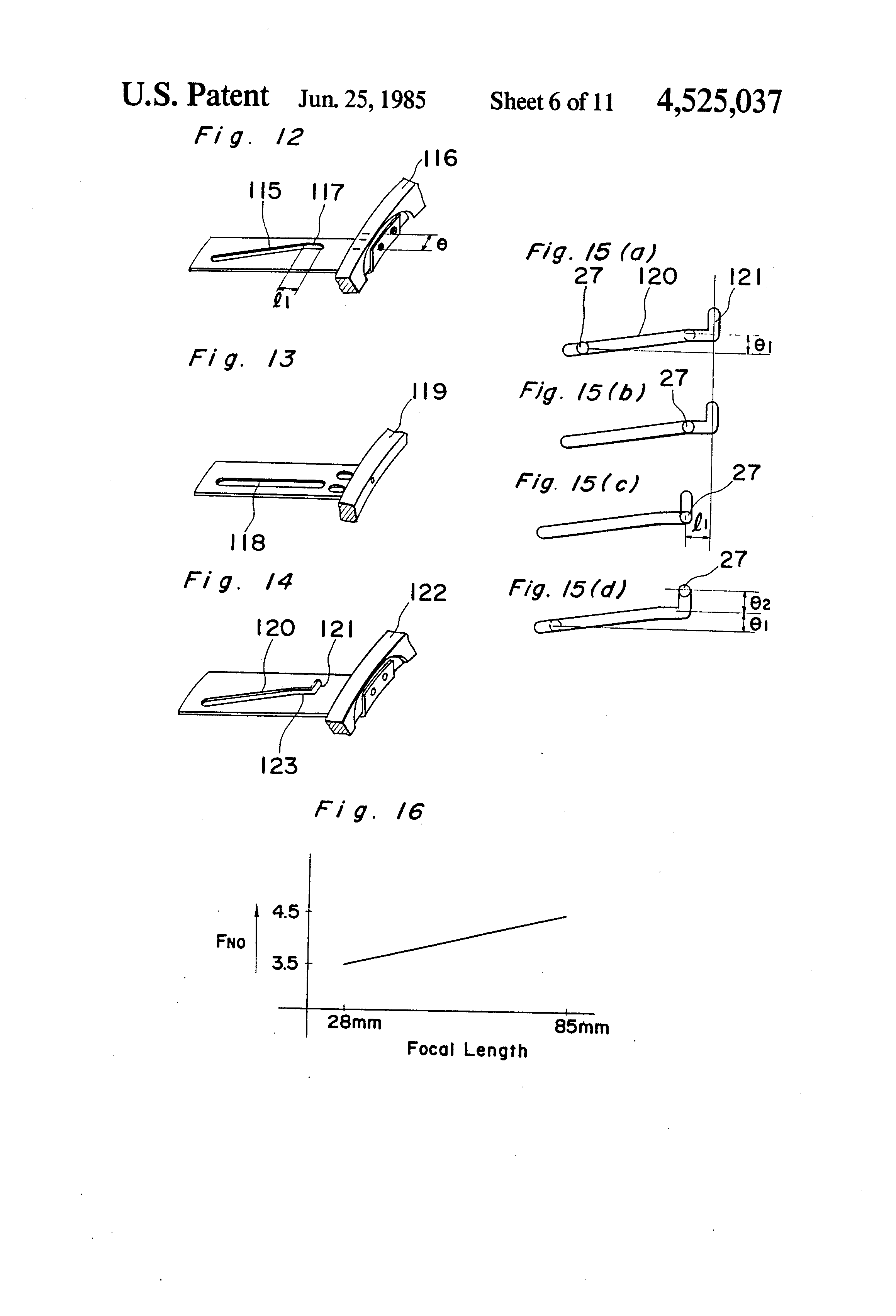 This invention generally relates to an objective lens assembly of variable focal length for use with an optical picture taking apparatus, for example, a photographic still camera, a movie camera or a television camera. More particularly, this invention relates to a varifocal lens assembly of a type wherein the lens speed or the aperture ratio of the lens assembly varies with a change in the focal length. Current commercially available zoom lens assemblies are generally classified into fixed speed types whose optical systems are designed such that the lens speed or the aperture ratio does not vary even when the focal length thereof is adjusted for zooming with the diaphragm aperture kept unchanged, and variable speed types whose optical systems are designed such that the lens speed or the aperture ratio varies when the focal length thereof is adjusted with the diaphragm aperture kept unchanged. The variable speed type zoom lens assemblies are furthermore classified into two subtypes: compensated types, wherein a mechanical compensator system is built in for compensating for change in lens speed resulting from an change in the focal length, and non-compensated type wherein the lens speed is allowed to vary with change in the focal length without any compensator system employed. Both of these subtypes have their own merits and demerits, however they play a role in the market to accommodate a diversity of customers' demands. As is well known to those skilled in the art, for a given diaphragm aperture, the variable speed type is generally faster, i.e., has a smaller F-stop number at the shortest focal length setting than at the longest focal length setting. To compensate for the reduction of the lens speed to make the lens speed constant at all values of focal length, means must be provided for stopping down the diaphragm aperture as the focal length is adjusted to the shortest value, and this is currently embodied in the compensated model such as disclosed in, for example, U.S. Pat. No. 4,258,996. In this compensated model, the maximum available performance of the optical system of the zoom lens assembly cannot be enjoyed, particularly when the focal length is adjusted to a wide angle range. It should be noted that the term "wide angle" hereinabove and hereinafter used and the term "tele-angle" which will hereinafter be used in an opposite sense to the term "wide angle," are a relative notation applicable to a particular adjustable range of focal length of a given zoom lens assembly and correspond respectively to the reading on a focal length setting element such as, for example, a zooming ring, approaching the shortest focal length and that approaching the longest focal length. By way of example, for any zoom lens assembly having it focal length adjustable within a range of 28 mm to 55 mm, the focal length setting to a value on the side of the 55 mm position or the longest focal length may be said to be the setting to the "wide angle" range and that to the "tele-angle" range, respectively. As hereinbefore described, in the variable speed zoom lens assembly of the compensated type, the maximum available performance of the optical system is sacrificed at the wide angle range to tailor the lens speed or aperture ratio to a value given at the longest available focal length setting. However, this compensated model is generally considered convenient in that, since in practice the smallest available aperture reading, that is, F-stop number, on the aperture setting ring is calibrated to a value given at the longest available focal length setting, the photographer need neither readjust the aperture setting ring in an attempt to compensate for reduction in lens speed resulting from the change of the focal length, nor keep in mind the necessity of such a readjustment, and, also, the lens assembly has a consistency with the exposure control system of a photographic camera. On the other hand, although the variable speed zoom lens of non-compensated type, such as disclosed in, for example, Modern Photography, November 1977, Vol. 41, No. 11, pages 164 to 168, is advantageous in that the maximum available performance of the optical system can be fully enjoyed at any focal length setting, not only does the layout in the non-compensated model of the aperture reading on the aperture setting ring in combination with an index marking pose a problem, but also the lens assembly lacks a consistency with the exposure control system. Specifically, in the variable speed zoom lens assembly of the non-compensated type referred to above, the smallest aperture reading on the aperture setting ring includes two F-stop numbers available generally at the wide angle range and the tele-angle range, respectively, in combination with the index marking including the juxtaposed aperture-indicating indicia associated respectively with the smallest F-stop numbers. So far as the lens assembly disclosed in the Modern Photography, supra, is concerned, it is described that the 43-75 mm zoom lens assembly is an f/3.5 for most of its zoom, i.e., the focal length setting, but becomes f/4.5 at the maximum 75 mm setting, and two juxtaposed aperture-indicated indicia are employed in the form of a line and a dot on the fixed barrel around which the aperture setting ring can be rotated. For better understanding of this invention, the merits and demerits of each of the compensated and non-compensated models of the variable speed zoom lens assemblies will be hereinafter discussed in detail under separate headings. Merits: The maximum available optical performance determined by the design of the optical system can be utilized at the short focal length setting or wide angle range. Since in most cases the wide angle range is used more frequently in indoor photography than in outdoor photography and, so far as the indoor photography is concerned, more frequently than the tele-angle range is, the utilizeability of the designed maximum available optica