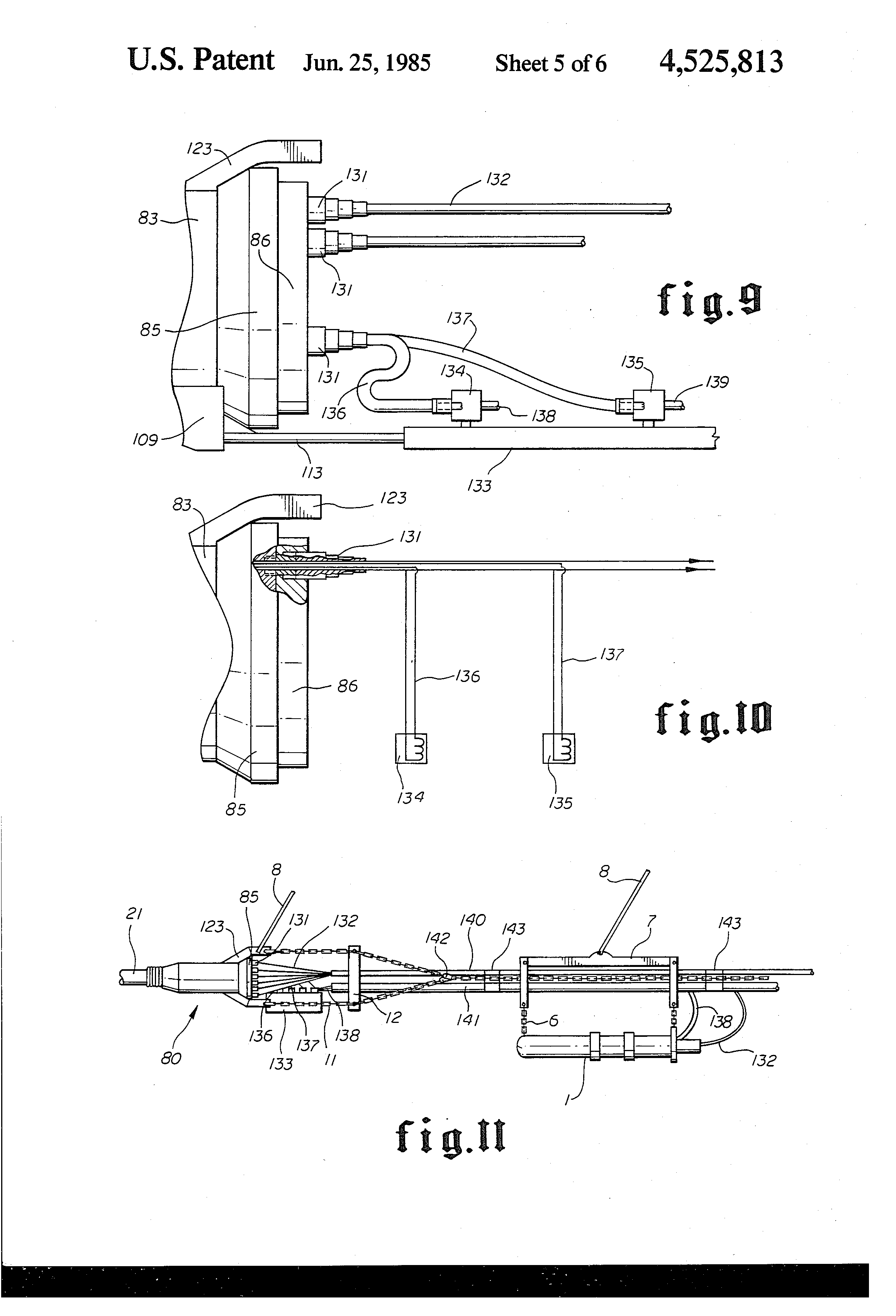 FIG. 10 shows a typical electrical schematic for the electrical control cables 136 and 137 going to the electrically operated shut off air valves 134 and 135 for air guns 1 and 2.