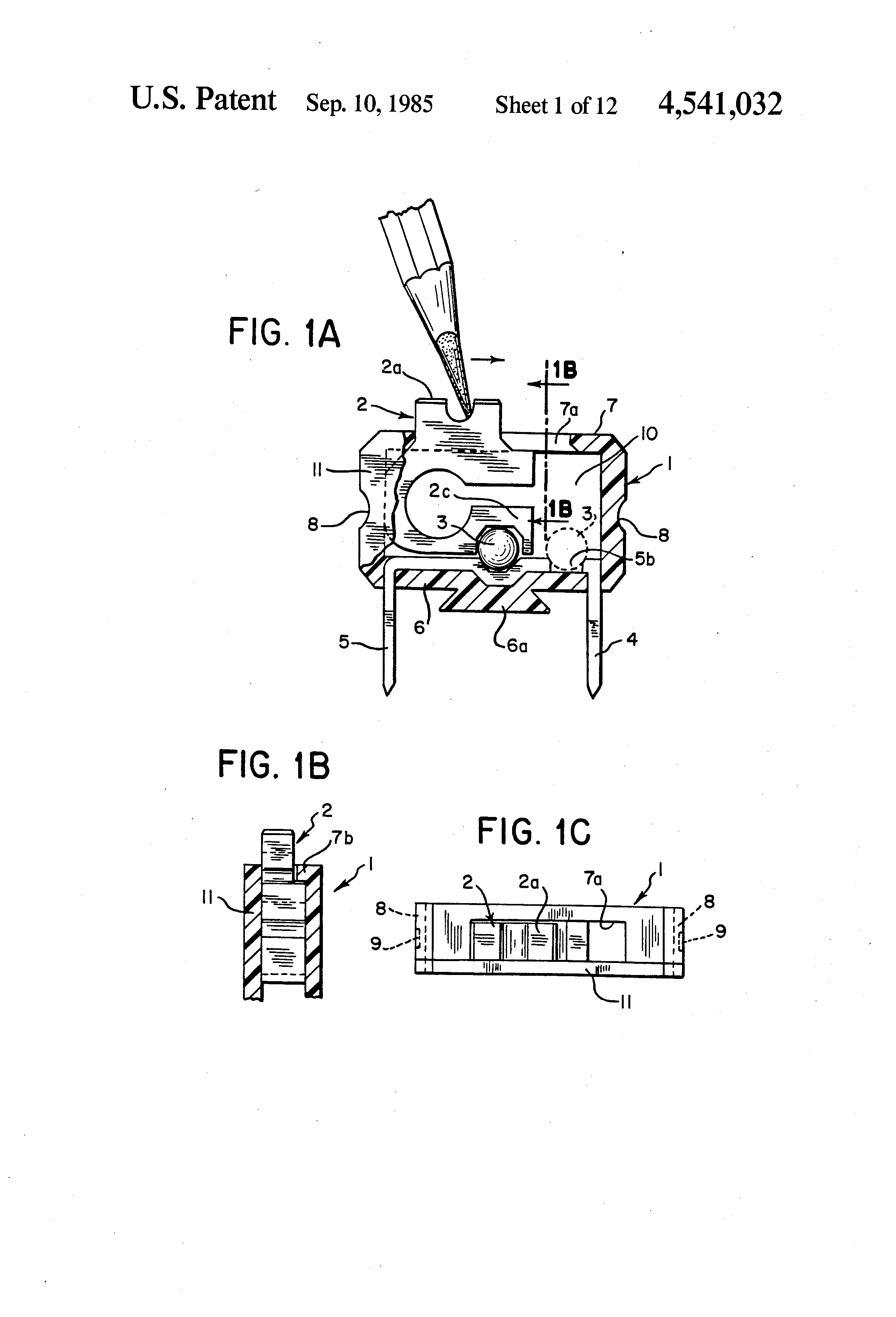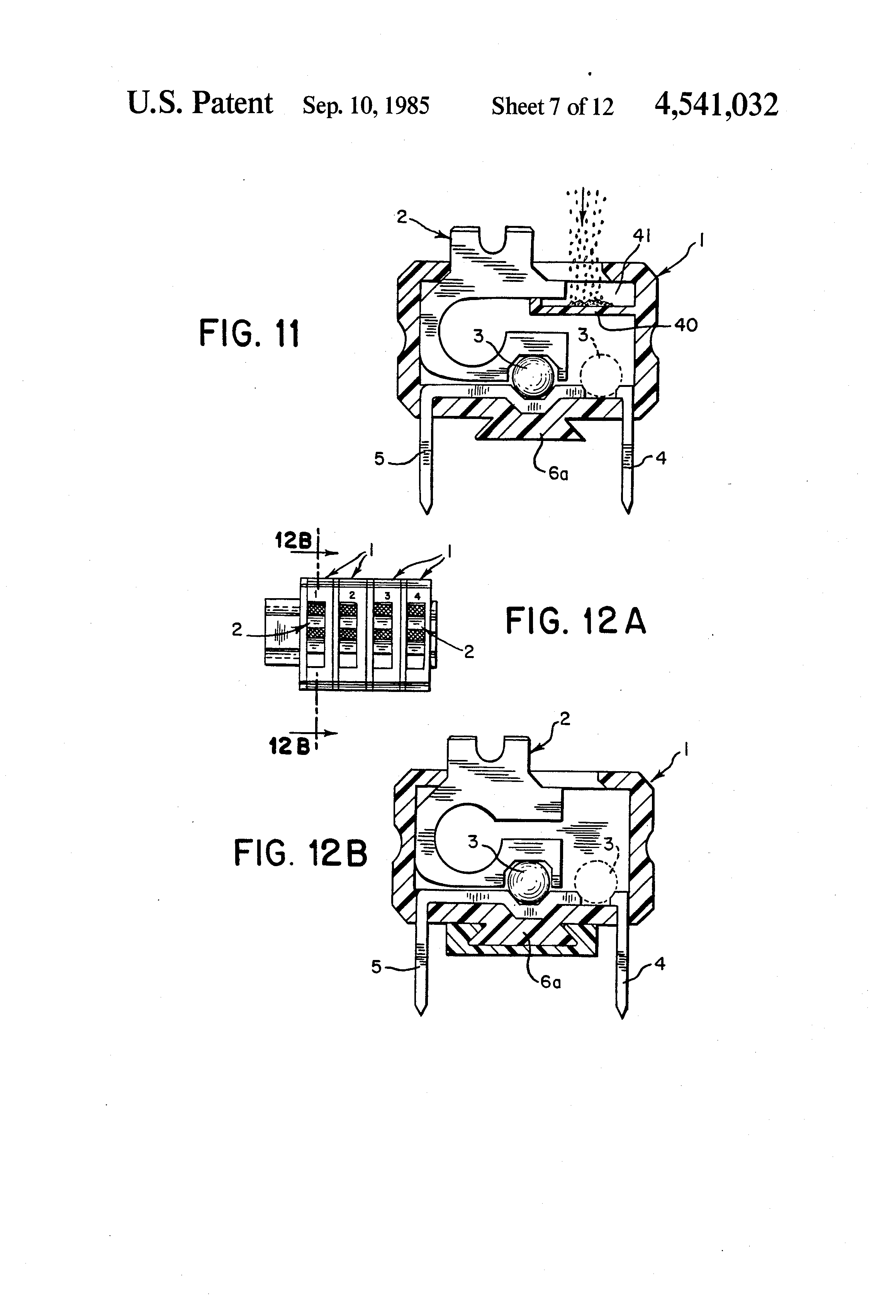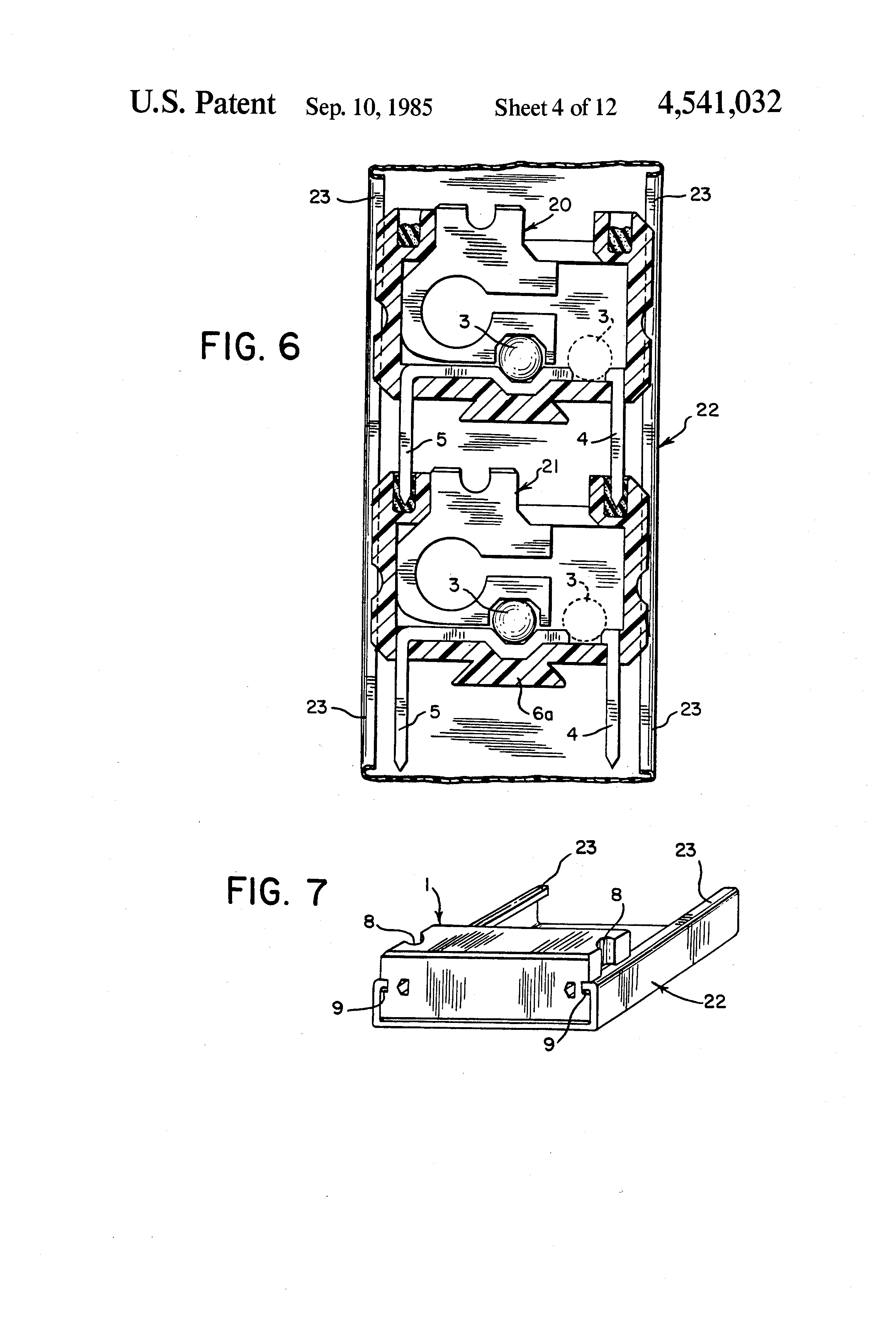This is a division of Ser. No. 384,938 filed June 4, 1982, now U.S. Pat. No. 4,427,851 which in turn is a continuation-in-part of Ser. No. 199,354, filed Oct. 21, 1980, now U.S. Pat. No. 4,356,361. 1. Technical Field This invention relates to electrical shunts and switches and devices for packaging, and installing and removing same from electrical circuits. More particularly, the invention has to do with novel ganged electrical shunts and switches of a modular design concept for use in conjunction with mounting bars and dispenser-cartridges, also of novel structure and design. The shunts and switches of this invention are adapted for "closing" and/or "opening" electrical circuits, e.g., on printed circuit boards or cards, in a programmable manner. 2. Background Art The electronics industry presently utilizes certain devices called DIP-switches and DIP-shunts ("DIP" being an acronym for "dual in-line packaged") adapted to fit a specific industrial standard socket terminal arrangement for components used in integrated circuit applications. DIP-switches currently in use are individually programmable switches that can be plugged into sockets mounted in a printed circuit board. The sockets (and accordingly the correspondingly configured DIP-switches) are arranged in an industry-wide standard 0.100"×0.300"grid pattern, originally developed for integrated circuit applications. The switches are usually produced and sold in solid clusters of from 2 to 10 "ganged" on-off switching elements or "stations". The terminals of each station in the cluster are spaced 0.300-inch apart, and the adjacent terminals of adjoining stations are spaced 0.100 inch apart. Such switches are primarily used for occasional re-programming of operating modes in electronic or electromechanical equipment such as vending machines, xerographic copiers, computer-controlled machinery, and the like. However, the aforesaid switches suffer a number of technical drawbacks which detract from their utility, particularly in commercial applications. First, presently available DIP switch elements or stations are rather complicated in their mechanical design. This adds to the cost and difficulty of manufacturing them using automated production equipment and methods, and increases their mechanical and electrical failure rate. Furthermore, conventional DIP-switches are normally of a design which lacks adequate safeguards against accidental activation. These drawbacks are further aggravated by the fact that DIP-switch elements are relatively small compared to conventional switching devices, thus requiring proportionately greater care in the precision manufacturing process and during field use. A corollary of the foregoing is that when a given switching station in a solid cluster of stations fails or is defective, the entire cluster unit, including non-defective and operative switching elements, must be segregated from the shipment or extracted from the circuit and either returned to the manufacturer for repair or discarded or scrapped. These factors likewise contribute substantially to the cost, both of manufacturing DIP-switches and of maintaining electronic/electromechanical equipment in which such units are installed. For example, conventional DIP-switches normally contain metal contact springs, usually of the cantilever type. Due to the shortness of the cantilever imposed by the standard 0.300-inch distance between DIP-switch terminals on a given station, such contact springs are subject to excessively high stresses, which can cause them to fracture. Also, metallic compression coil springs, such as those found on some conventional DIP-switches, are subject to similar stresses which can likewise lead to mechanical failure of the component. Another type of device used in modern circuit design is the so-called programming "jumper plug" or DIP-shunt. These are described in U.S. Pat. No. 4,030,793 and are particularly useful in situations where the reprogramming of printed circuit boards is normally done only occasionally by field technicians on electronic or electromechanical equipment such as that previously described. The use of DIP-shunts to perform this function accomplishes the same purpose at a fracton of the cost of having DIP-switches installed on the equipment. However, conventional DIP-shunts suffer the disadvantage of having a metal jumper or shunt which is exposed to the environment, thereby increasing the risk of short-circuiting during field service, unless the exposed electrically conducting part of the jumper is covered with a suitable insulating material. Conventional DIP-switch and DIP-shunt designs as well as prior electrical switching and jumper plug technologies are exemplified in U.S. Pat. Nos. 2,246,373; 2,464,184; 2,521,468; 3,403,236; 3,618,409; 3,621,157; 3,643,042; 3,710,057; 3,750,085; 3,757,060; 3,760,486; 3,772,486; 3,792,210; 3,825,876; 3,846,900; 3,878,344; 3,958,090; 3,971,905; 4,012,608; 4,030,793; 4,061,405; 4,100,670; and 4,172,317. A need has therefore existed for DIP-switches and DIP-shunts of simpler mechanical design and greater durability in the field than those heretofore available, and for means which permit greater versatility in storing, transporting, installation, and removal of such switches and shunts. Accordingly, it is an object of this invention to provide a structurally and mechanically reliable, readily packageable, and low cost DIP-switch of a novel modular design concept for use in selectively closing and/or opening electrical circuits such as on printed circuit boards and in integrated circuits, in a programmable manner. Another object is to provide a structurally and mechanically reliable, readily packageable, and low cost DIP-shunt of a novel modular design concept for use in electrical circuits such as on printed circuit boards and in integrated circuits, in a programmable manner. Another object is to provide "on-off" switches and shunts compatible with standard integrated circuit 