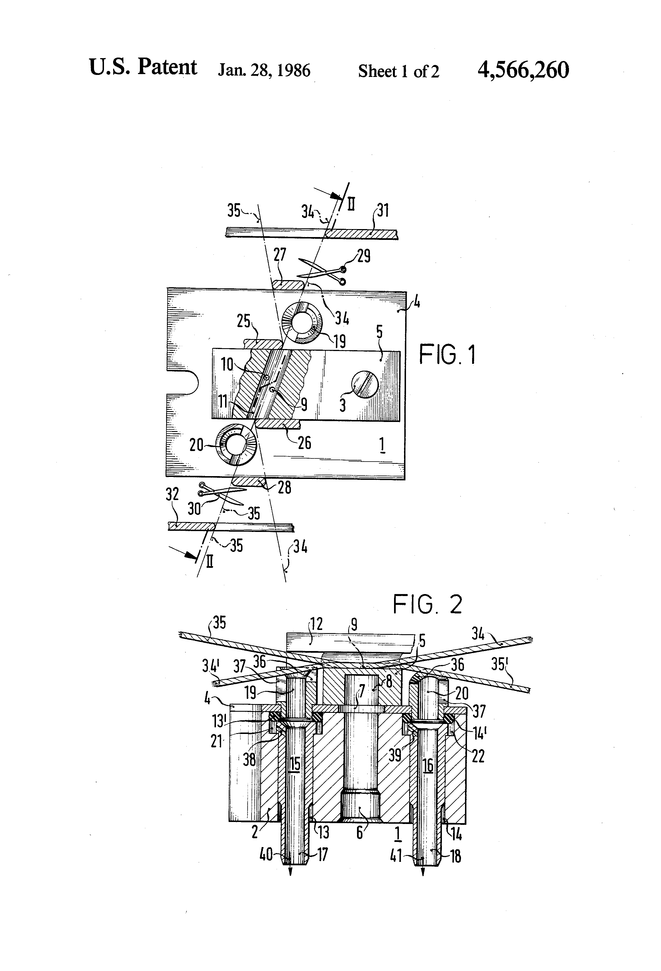 From FIG. 1 can be seen the position of the yarns 34 and 35 after their insertion into the splicing channel 11, but before they have been severed and the yarn ends 34' or 35' respectively have been produced. The yarn 34 coming from the lower right changes its direction at the cover plate 26, passes over the suction tube 19 and is guided through the opened yarn severing device 29 to the upper right. The yarn 35 coming from the upper left changes its direction at the cover plate 25, passes over the splicing channel 11 and is guided through the opened yarn severing device 30 to the lower left. It can also be seen from FIG. 1 that the two sucking tubes 19 and 20 are mounted in the plate 4 in such a way that their slit-shaped recesses run in the direction of the yarns and point to the subsequent ends of these yarns. The yarn ends are produced by the operation of the two yarn severing devices 29 and 30. Simultaneously with the severing of the yarns compressed air is injected into the wider parts 21 and 22 of the bores 13 and 14. This compressed air flows through the injector bores 38 or 39 respectively into the interior of the injector tubes 17 or 18 respectively, where it creates an air flow streaming in the direction of the arrows 40 or 41 respectively.