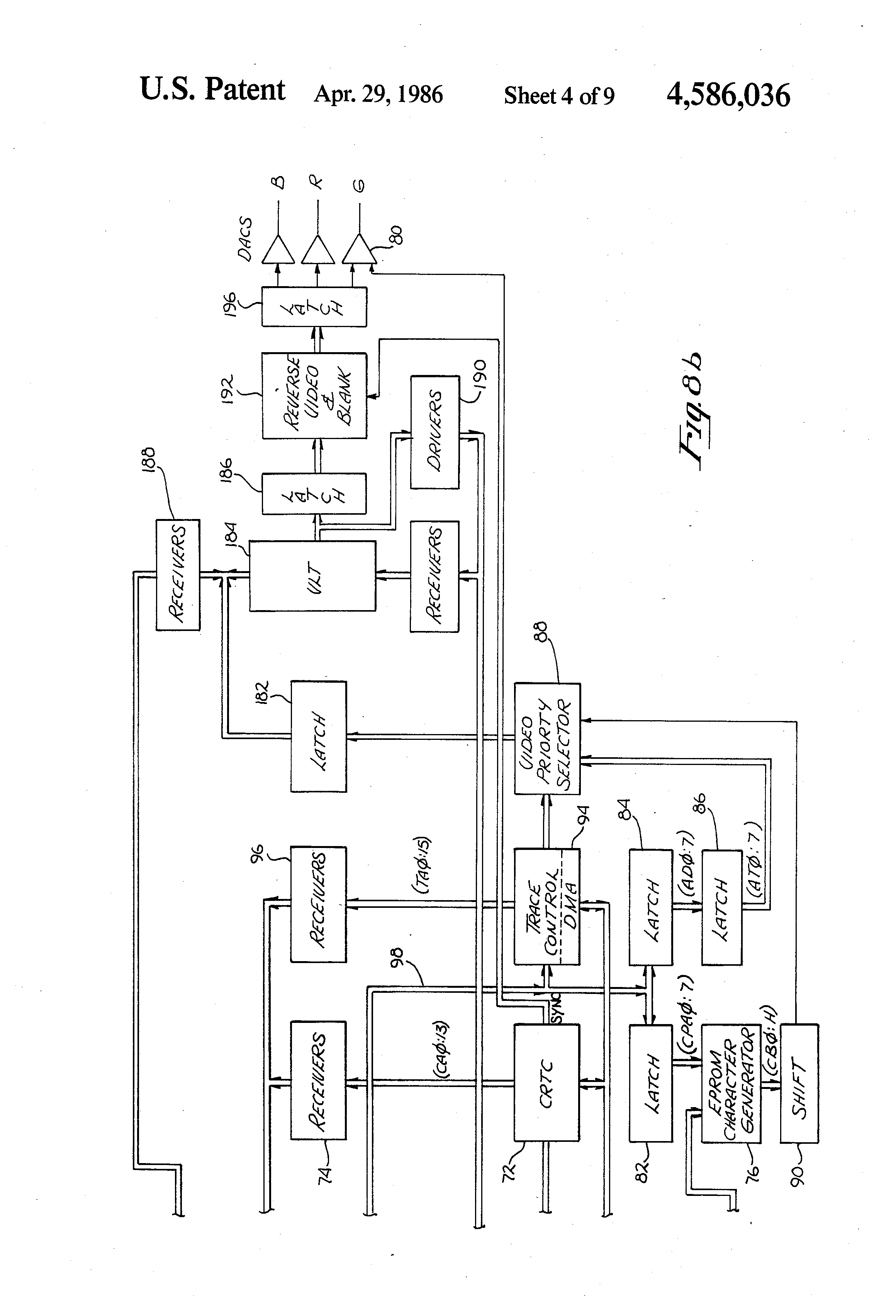 1. In a graphics display system, the improvement comprising a raster scan display, said display being characterised by a vertical raster scan memory means for storing digital data to be displayed, said memory means being a means for storing said digital data wherein the relative vertical position of each data point to be displayed on each vertical raster scan is stored in binary coded form digital communication means coupled to said memory means for receiving digital data to be displayed from an auxiliary digital device in said binary coded form and coupling said digital data to said memory means video sync generation means for providing vertical and horizontal sync signals and for providing a pixel clock signal for each raster scan trace control means coupled to said memory means and said video sync generation means, said trace control means having an addressing means for addressing said memory synchronized to said vertical and horizontal sync signals to botain coded data to be displayed for each vertical raster scan, and a digital counter means responsive to said pixel clock signal for each scan to provide a digital trace signal indicative of a pixel clock signal counter corresponding to the coded data for that scan, and video generation means coupled to said digital counter means of said trace control means, said video sync generation means and said display, said video generation means being a means for providing a video signal to said display to display said data in graphic form responsive to said digital trace signal. 2. The improvement of claim 1 wherein said trace control means is a means for providing, for a plurality of vertical scans lines, a trace signal for said at least one trace to cause the display on each scan line of a first pixel corresponding to the data point for the respective scan line and a second pixel corresponding to the data point for an immediately adjacent scan line. 3. The improvement of claim 2 wherein each pixel of the display is approximately twice as high as it is wide. 4. The improvement of claim 2 wherein said trace control means is also a means for providing a trace signal to also cause the display of all pixels between said first and second pixels. 5. The improvement of claim 4 wherein said first and second pixels may sometimes overlie. 6. The improvement of claim 1 wherein said trace control means is a means for causing (a) for one scan line, the display of a first pixel corresponding to the data point for the respective scan line, a second pixel corresponding to the data point for an immediately adjacent scan line, and any and all pixels therebetween (b) for the next scan line, the duplication of the display displayed in step (a), and then (c) the successive repeat of steps (a) and (b) using the data points for each successive pair of scan lines whereby two adjacent lines displayed as defined by the respective first and second pixels may have starting and ending positions independent of other pairs of lines displayed. 7. The improvement of claim 1 wherein said trace control means is a means for providing for a plurality of vertical scans, a trace control signal for at least one trace to cause the display of a first pixel corresponding to the data point for the respective scan line, a second pixel corresponding to the data point for a different scan line and all pixels between said first and second pixels. 8. The improvement of claim 7 wherein said different scan line is two scan lines away from the current scan line. 9. The improvement of claim 7 wherein said different scan line is an adjacent scan line of the same field of an interlaced raster scan display. 10. The improvement of claim 7 further comprised of means for detecting peaks and valleys in the trace data values, and for the scan line of each peak and each valley, causing said trace control means to provide a trace control signal to cause the display of a first pixel corresponding to the data point for the respective scan line, a second pixel corresponding to the data point for the preceding scan line and all pixels between said first and second pixels. 11. The improvement of claim 1 wherein said memory means is a means for storing coded data for a plurality of traces, each trace being characterized by at least one data point stored in said memory means in binary coded form for each vertical raster scan line crossing the respective trace, whereby multiple traces may be simultaneously displayed. 12. The improvement of claim 11 further including means for allowing a first trace to overlie a second trace on said display. 13. The improvement of claim 12 further including means for filling in vertical lines between said first trace and said second trace with a color dependent upon which trace is lower than the other for the respective vertical line. 14. The improvement of claim 1 further comprised of an alphanumeric character generator for selectively presenting alphanumeric characters on the display. 15. The improvement of claim 14 further comprised of a graphic character generator for selectively presenting graphics characters on display. 16. The improvement of claim 15 further comprised of a priority means for setting the priority of data to be displayed to determine which displayed data overlies which other displayed data. 17. The improvement of claim 1 wherein said memory means is a means for storing coded data for at least one trace, and further comprised of means for causing the display of a trace window on said display, and wherein said trace control means provides a trace signal to cause the display in graphic form of only that data which when displayed falls within the window. 18. The improvement of claim 1 wherein said trace control means includes means for combining a variable offset to said binary coded data, whereby the display of data in graphic form may be scrolled by varying said offset. 19. The improvement of claim 1 wherein said memory means is a means for storing binary code