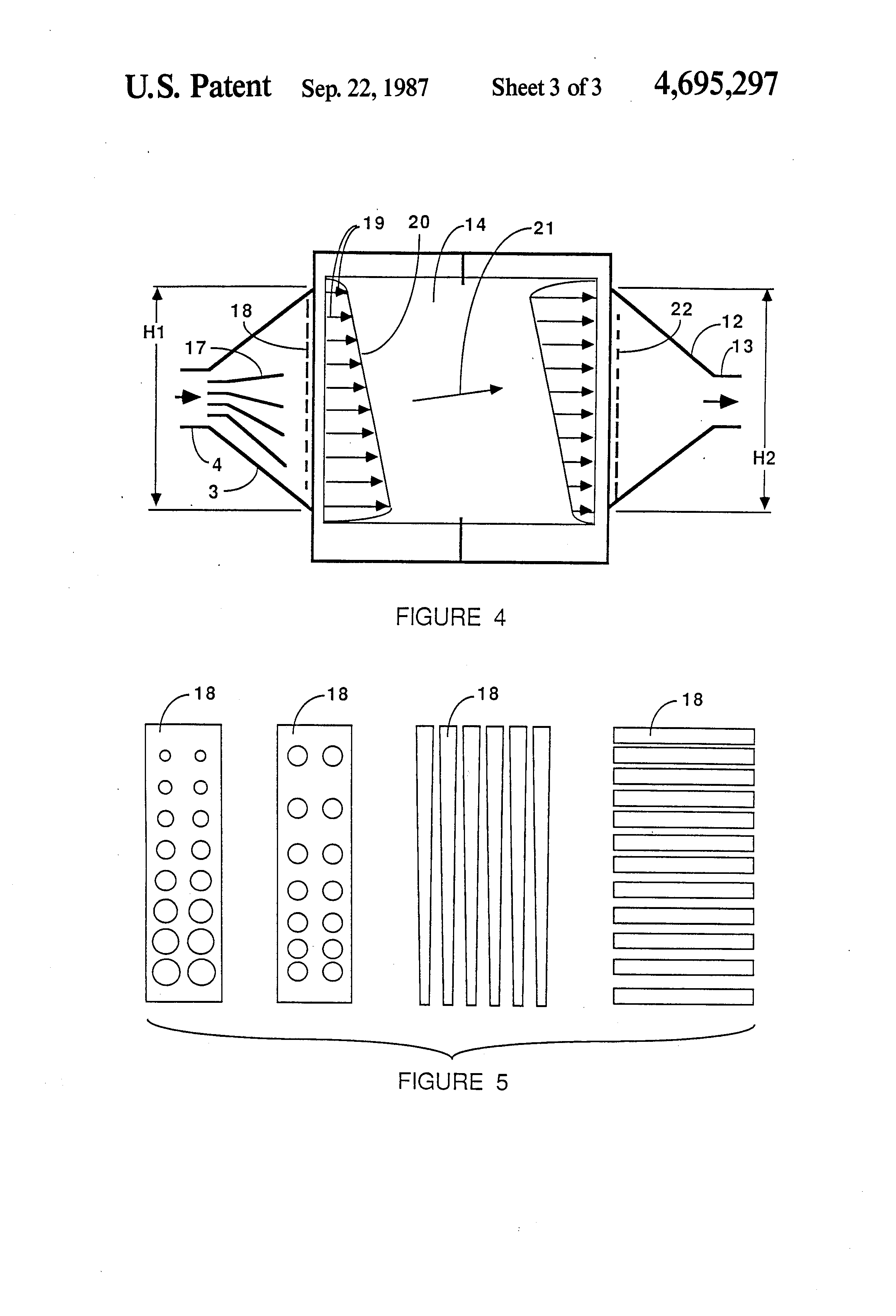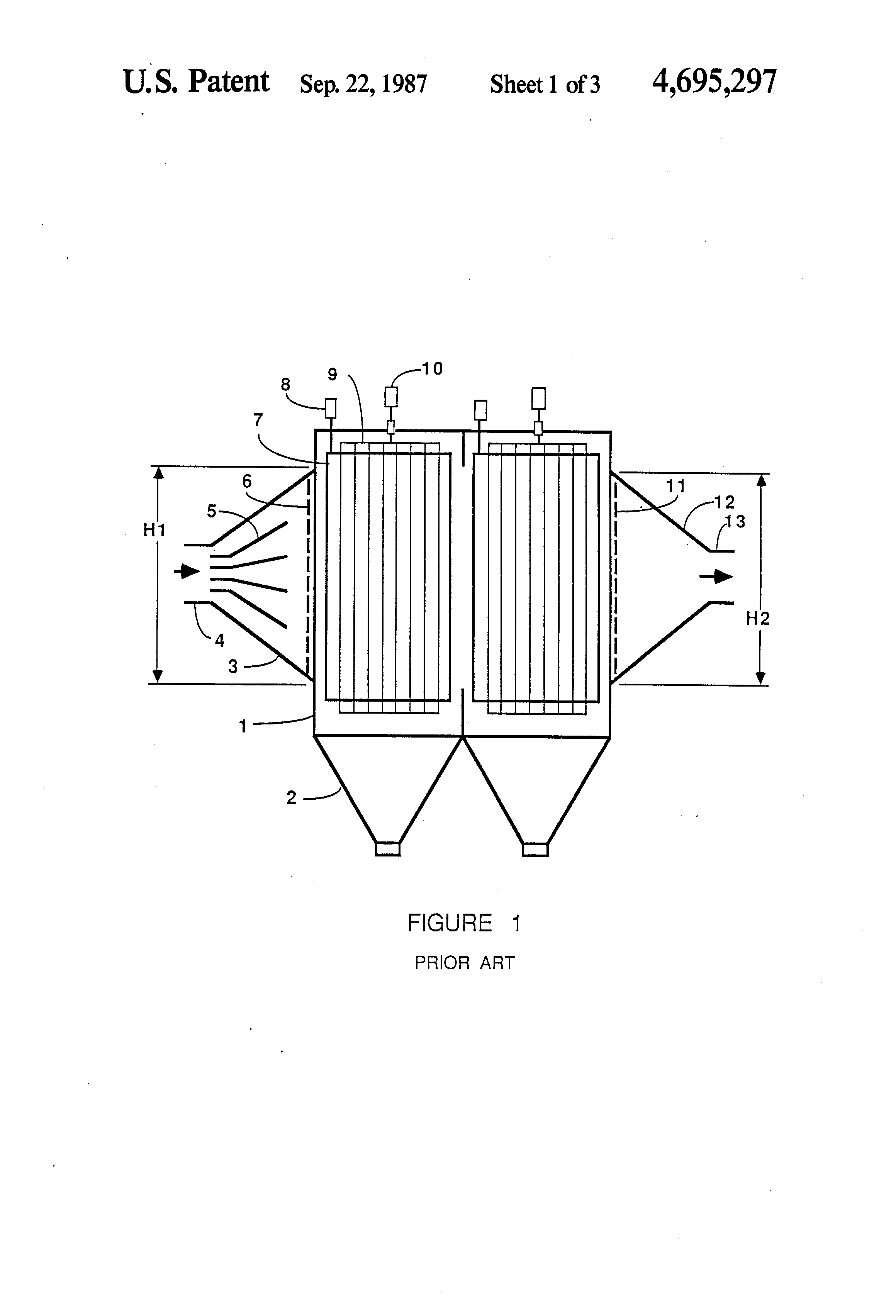 This application is a continuation-in-part of my copending application Ser. No. 714,469 filed Mar. 26, 1985, now abandoned, the disclosure of which is incorporated by reference. This invention relates generally to dry horizontal flow electrostatic precipitators, and more particularly to the gas flow distribution at the precipitator inlet and outlet faces. The use of electrostatic precipitators to remove suspended particles from gas streams is a well known art and dry horizontal flow precipitators are in service on many applications. The treatment zone of a common dry horizontal flow precipitator consists of high voltage electrodes and collecting electrodes arranged to form gas passages parallel to the gas flow. The electrode systems are enclosed in a casing to contain the gas flow. Rapping systems are used to dislodge the dust from the electrodes which then falls by gravity to the bottom of the collector. The bottom of the casing is equipped with a dust removal system to discharge the collected dust. The gas is supplied to the precipitator thru an inlet nozzle that connects the inlet duct to the precipitator casing. Gas flow distribution at the inlet has been recognized to affect precipitator performance and distribution devices are employed to spread the gas flow uniformly across the full face of the precipitator treatment zone. The details of the devices vary with the configuration of the inlet duct and nozzle, and with the preferences of the designer. The gas distribution devices are typically vanes in the inlet nozzle and diffuser plates at or near the inlet face. Although flow distribution at the inlet has been the primary concern, distribution at the outlet has also been recognized to affect performance, and devices similar to those at the inlet are often used to control the outlet distribution. Early precipitator installations were often designed with little regard to duct arrangement or gas flow distribution. U.S. Pat. No. 1,344,330 to Bradley issued in 1920 describes an unusual orifice-precipitator with electrode surfaces perpendicular to the flow, however it is the attention paid to gas distribution that is of interest. The inlet duct is connected to the precipitator casing without an inlet nozzle. The entire duct enters below the horizontal centerline of the casing, does not extend across the full width, and is offset from the vertical centerline of the casing. The opening to the treatment zone is into a small part of the treatment zone face and there are no flow distribution devices. The patent makes no mention of gas flow distribution. The collection efficiencies required during the early stages of precipitator development were achievable without addressing gas flow and the importance of flow distribution to performance had not yet been recognized. The scientific investigation of the effects of flow distribution on electrostatic precipitator performance began about 1945 (H. J. WHITE, "Industrial Electrostatic Precipitation," Addison-Wesley Publishing Company, Inc. (1963) p. 238). This has resulted in progress towards the design of flow control means that will solve the fluid mechanics problem of taking the gas stream from the flow direction and flow velocity of inlet duct and delivering it to the inlet of the precipitator treatment zone with uniform distribution. Examples of this are U.S. Pat. Nos. 3,425,189 to Haselmayer and 3,831,350 to Gilles. Attention has also been given to achieving flow distribution with devices that are not adversely affected by dust deposits, for example U.S. Pat. No. 4,026,683 to Snader. Optimum precipitator performance is associated with uniform gas flow, and uniform gas flow distribution at the precipitator inlet is the recommendation by precipitator manufacturers and other authorities on precipitators. The Industrial Gas Cleaning Institute (IGCI) first published a standard EP-7, Gas Flow Model Studies, in 1969. Since completely uniform gas distribution is not achievable, the IGCI standard for flow distribution gives tolerances on uniformity which are considered acceptable. Progressively higher efficiency requirements, the increasing awareness that gas distribution affects performance, improvements in measuring and control devices, and a mathematical analysis that shows uniform gas flow distribution gives best performance have led to raising the standards for flow uniformity. The revised standard for flow distribution issued by the IGCI in 1981 calls for a high degree of uniformity. Precipitator manufacturers try to achieve uniform flow and often perform model studies to help in the design of flow correcting devices. The mathematical analysis on which the principle that uniform gas flow distribution gives best performance is based assumes uniform dust concentration over a section across the flow at any point within the precipitator. This assumption means either no re-entrainment takes place or that re-entrainment, if it does occur, does not change the dust concentration from the top to the bottom. Re-entrainment changes the dust concentration from the top to the bottom of a dry horizontal flow precipitator. An electrostatic precipitator removes particles from a gas stream by charging them electrically and attracting them to an electrode. When a layer of dust has accumulated and a rapper is activated, the dust layer is dislodged and falls down due to the force of gravity. However, not all the dust reaches the bottom of the precipitator. The layer may begin to slide down as a sheet, but as it gathers speed, it breaks up and some of the dust is re-entrained on its way down. In a high efficiency precipitator most of the re-entrained dust is recollected further back and lower down within the treatment zone. The cycle of collection and re-entrainment may repeat itself several times before dust which entered the precipitator near the top falls below the bottom of the treatment zone and is truly collected. The cumulative effect of this re-entrainment inc