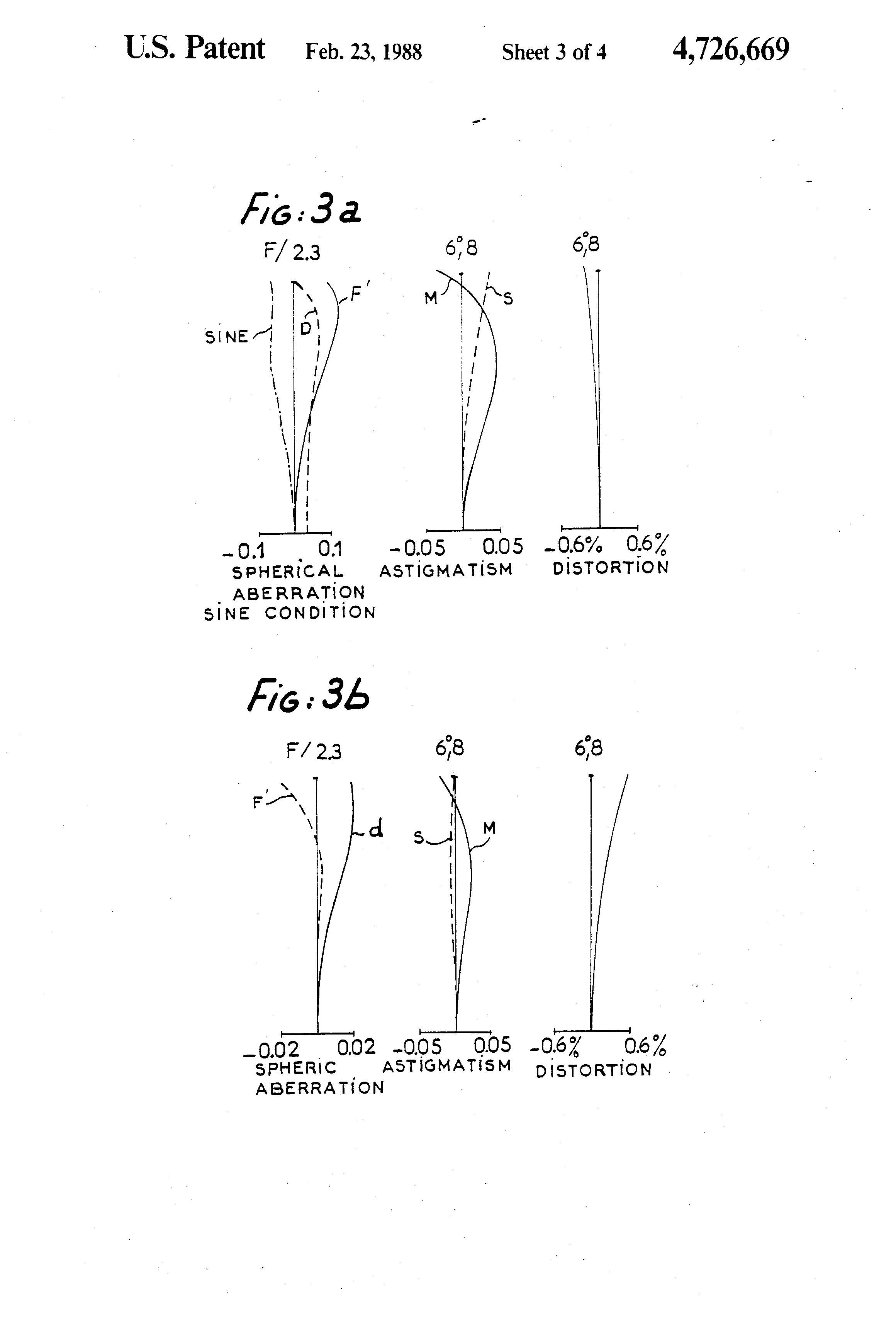 The present invention concerns a telephoto objective lens system of high relative aperture in which focusing is obtained by the simultaneous axial translation of two of its components. Photographic lenses are generally designed for the best aberrational correction at an infinite focusing distance, so that when focusing is made upon finite distances--by the global translation of the whole lens system--aberrational correction is degraded, especially in the case where the lens is of high relative aperture. It has been suggested to combime a global translation of the whole lens system with an internal relative translation of one of its components in order to balance aberrational correction, or to translate only several components. The present invention concerns a new device allowing improvement of the aberrational correction--and particularly coma--throughout the whole focusing distance range. The lens system according to the new device comprises four lens components, axially arranged from the front to the rear of the lens system, hereinafter referred to as the "first lens component", the "second lens component", the "third lens component", and the "fourth lens component". The front first lens component is of positive refractive power; the second lens component is of positive refractive power; the third lens component is of negative refractive power; and the rear fourth lens component is of positive refractive power. The second component has a convex front surface and a concave rear surface. The third lens component is made of two parts separated by an air gap: A front part, the rear surface of which is concave, and in which is concentrated most of the negative refractive power of the third lens component; and the rear part, the front surface of which is concave and the rear surface of which is convex, the positive or negative refractive power of the rear part of the third lens component being very small--and even possibly nil. The presence of the rear part of the third lens component is mainly justified by aberrational correction. The lens system is designed so that focusing is obtained by the simultaneous axial translation of its second and fourth lens component, the aberrations--and notably coma--being well corrected throughout the whole focusing distance range. The axial translation of the second and fourth lens components is forward when the focusing distance varies from infinity to a finite distance. These two compound translations have different amplitudes, the displacement of the second lens component being less than that of the fourth lens component. These two compound translations can be linked, for the simplicity of the construction, by a linear law, but this condition is clearly not limitative: the law guiding the respective translations of these two mobile components can be, if necessary, established in order to obtain best results, as far as aberrational correction is concerned, throughout the whole focusing distance range. The preferred position of the diaphragm is inside the third lens component, or between the third and fourth lens components. But it can also be in any other location to best fulfill the needs concerning the field-of-view and the tailoring of vignetting, as any person of the craft will easily understand. The drawings correspond to two examples. In the first example the diaphragm is located inside the third lens component; In the second example the diaphragm is located between the third and the fourth lens component. FIG. 1a is a longitudinal section view of the first example for an infinite focusing distance; FIG. 1b is a longitudinal section view of the first example for a focusing distance corresponding to an image magnification of -0.12; FIG. 2a is a longitudinal section view of the second example for an infinite focusing distance; FIG. 2b is a longitudinal section view of the second example for a focusing distance corresponding to an image magnification of -0.12; FIG. 3a is a graphic representation of the various aberrations of the first example for an infinite focusing distance; FIG. 3b is a graphic representation of the various aberrations of the first example for a focusing distance corresponding to an image magnification of -0.12; FIG. 4a is a graphic representation of the various aberrations of the second example for an infinite focusing distance; FIG. 4b is a graphic representation of the various aberrations of the second example for a focusing distance corresponding to an image magnification of -0.12. On FIG. 1 and FIG. 2 are represented two lens systems in which we find, from the front to the rear: The first lens component, denoted I, made of a single lens element L1 of positive refractive power; the second lens component, denoted II, made of two lens elements: a lens element L2, the positive refractive power of which is mainly due to the high curvature of its convex front surface; and a lens element L3, the negative refractive power of which is mainly due to its concave rear surface. In Example 1, L2 and L3 are separated by a small air gap and in Example 2, L2 and L3 are cemented in a doublet. The third lens component, denoted III, made of two parts: a front part made of a single lens element L4, the negative refractive power of which is mainly due to the curvature of its rear concave surface; and the rear part made of the two lens elements L5 and L6 cemented in a doublet, with a concave front surface and a concave front surface and a convex rear surface. And the fourth lens component, denoted IV, made of the two lens elements L7 and L8 cemented in a doublet. Next we give the numericl data relevant to our two examples, where Ri is the radius of curvature of the i-th surface, counting from the front, Di the lens thickness or the air separation, Ni the refractive index and Vi the Abbe number. Focusing is obtained by the simultaneous axial translation of the second and fourth lens components, the fourth lens component carrying the bulk of magnificat