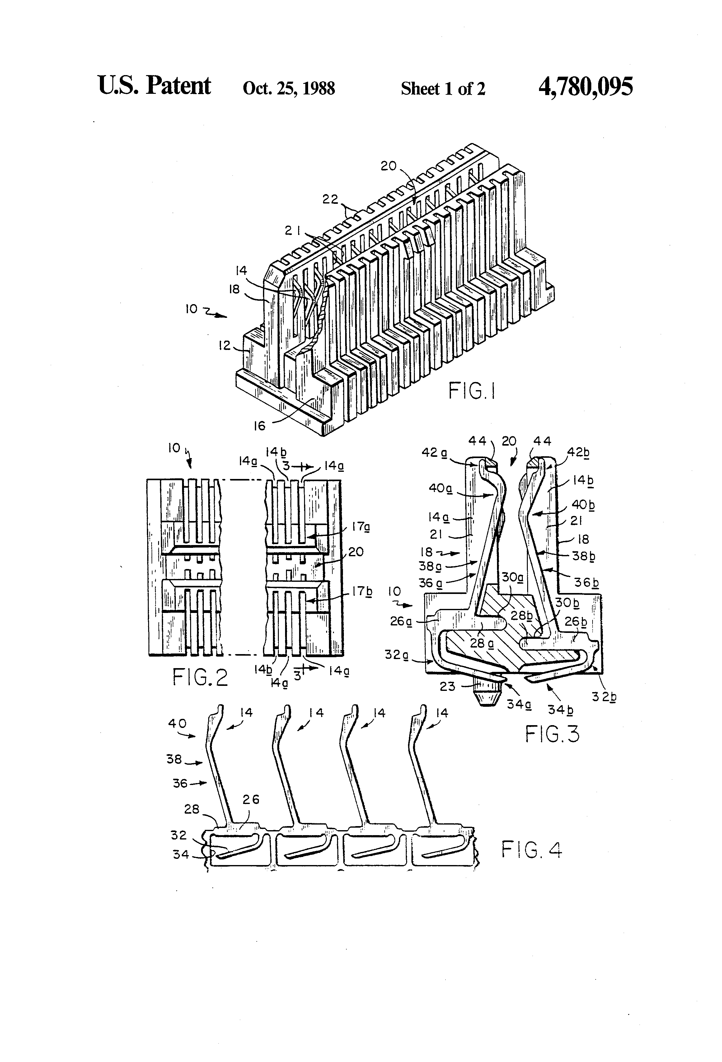 This invention relates to electro-mechanical connectors for circuit boards, and more particularly to edge connectors that mechanically secure and electrically connect the edge portions of circuit boards. Electrical connectors are designed to provide conductive paths between adjacent printed circuit boards. Some connectors also mechanically seize the boards to which they are connected so as to physically secure one board to the adjacent board. Connectors of this type are often installed on a primary, or "mother" board, and are adapted to receive the edges of secondary, or "daughter" boards. These connectors are called edge connectors and are used in modern electrical eguipment that contains a number of parallel daughter boards that are closely packed together. Edge connectors often comprise a number of conductive contacts that are spaced apart and arranged linearly in a housing. Each contact is metallic, and is positioned to abut a conductive contact pad on the edge of the daughter board. Often the contacts are arranged in two parallel rows so the daughter board can be inserted therebetween. When a daughter board is positioned between the rows, the contacts exert a gripping force on the daughter board so as to secure it in the housing. There are a number of disadvantages to the edge connectors currently in use. The conductors of most of these connectors have vertical stems that must be solder-connected to plated through holes in the mother board. Providing the mother board with a large number of plated through holes consumes a significant area on the board and reguires that conductors and other circuit components on the board be designed around them. Moreover, it is difficult to change the edge connectors on a board since they are semi-permanently attached to the board. In addition, the mechanism many edge connectors use to secure the daughter boards is inefficient. Some edge connectors rely on Zero Insertion Force, (ZIF) mechanisms. The contacts of these connectors are in registration with a cam rod so that at least one of the parallel rows of contact connectors can be selectively moved towards or away from the opposite row. Initially, the contacts are spaced apart from each other. After the daughter board is inserted between the opposed rows of contacts, the rows are moved together so as to grip the daughter board therebetween. ZIF connectors rely on relatively expensive mechanica1 mechanisms to secure the daughter boards. Furthermore, the securing mechanism is formed of a number of moveable parts, any of which may malfunction because of either wear or breakage. Other edge connectors rely on Low Insertion Force, (LIF) contacts. These contacts are pieces that have been stamped and bent to have a shape with spring-like resiliant characteristics. Eventually though, the contacts lose their resiliency and are deformed into a permanently open shape. When a daughter board is placed between the worn contacts they do not firmly abut the daughter board. As a result, they no longer secure the daughter board to the housing, nor do they make a reliable electrical connection with the daughter board's contact pads. Moreover, only a limited number of electrical connections can be made per unit length of the daughter board. This is because the individual contact pads on the daughter board have to have a minimum width to insure that there is a sufficient area of contact between them and the conector contacts to form a continuous electrical path with minimal resistance. Also, the contact pads must be spaced apart a sufficient distance so that under normal operation conditions adjacent pads will not short circuit. Current contact pads have a cross-sectional width of 80 mils (0.080") and are spaced apart approximately 20 mils. Thus, each contact pad and insulating gap occupies 100 mils of length, so a maximum of 10 contacts per inch of daughter board can be accommodated. The increasing miniaturization of electronic circuits requires that more connections per unit length of board be made available. Furthermore, some edge connectors provide only signal contacts to the daughter board. They are not suited to transfer the power needed to operate components that may be located on the daughter boards. A principle object of this invention therefore is to provide an edge connector with contacts that do not have to be permanently or semi-permanently attached to the mother board. Thus, mounting of this connector on the mother board does not require the extensive relocation of other components and conductors around it. A further object of this invention is to provide a connector with contacts that are able to secure the daughter board. Furthermore, the contacts are able to withstand the stress of repeated insertion and removal of daughter boards without becoming worn. Moreover, the contacts are arranged to provide a large number of electrical connections per unit length along the daughter boards. Still another object of this invention is to provide an edge connector able to transfer both signal and power currents to and from the daughter board. These and other objects of this invention are provided by an edge connector comprising a insulator module containing two parallel rows of spaced-apart, flexible contacts. Each contact is paired with a contact located directly across from it. A board slot is defined by a space in the module between the rows of contacts. Each contact includes a contact area that extends into the board slot space. The contacts are arranged so that in each row, the contact areas of adjacent contacts are longitudinally offset from each other. More specifically, for each pair of adjacent contacts one has a upper contact area, and the other a lower contact area, wherein the upper contact area is spaced above the lower contact area. The contacts are also arranged so that a contact with an upper contact area is located directly across from a contact with a lower contact area. Thus, one row of contacts in