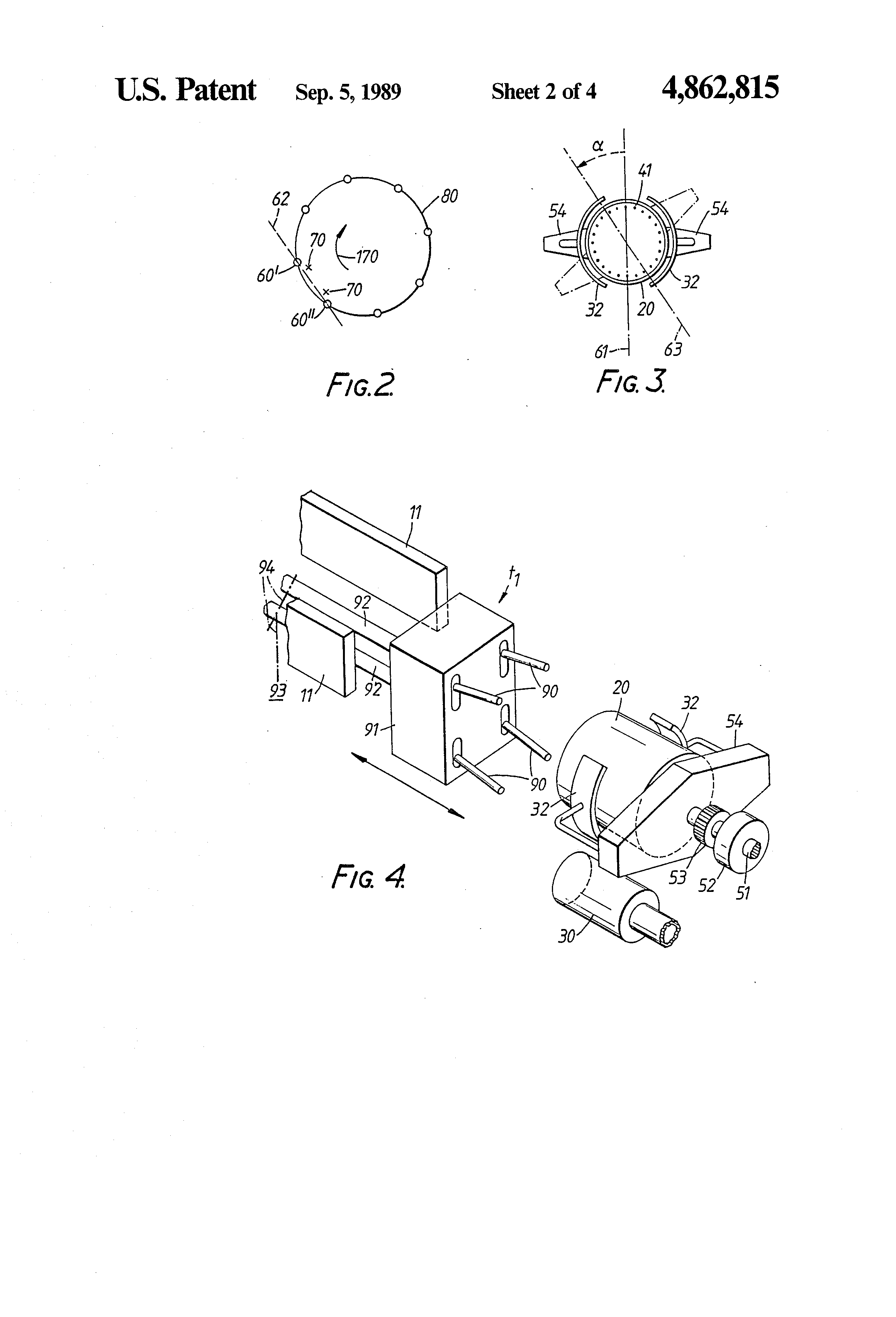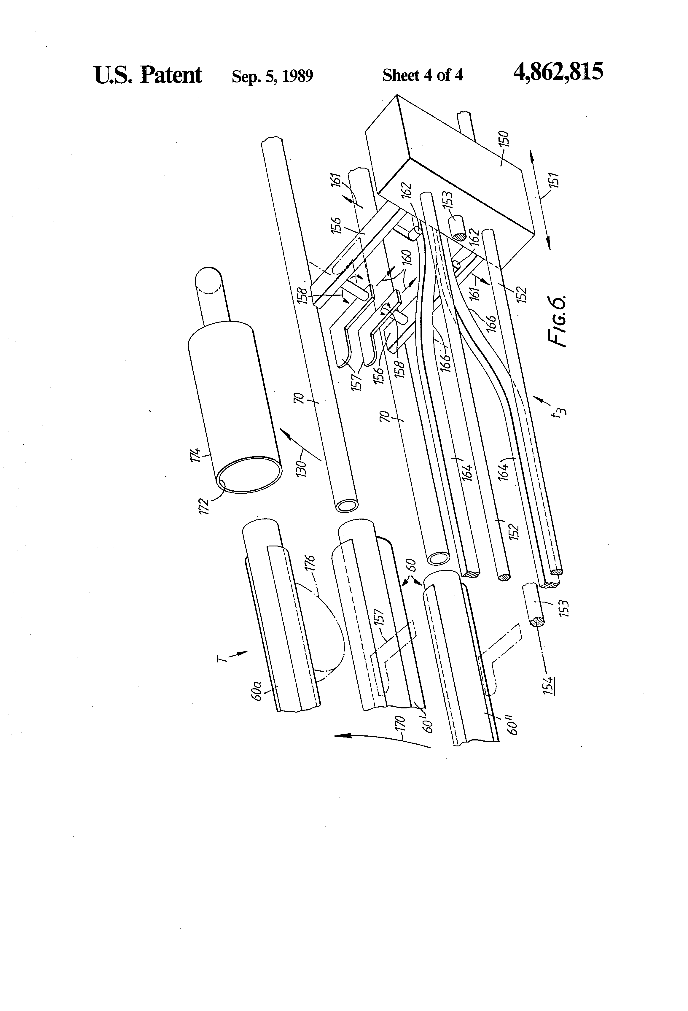 This is a division, of application Ser. No. 06/903,257, filed Sept. 3, 1986 now U.S. Pat. No. 4,784,070, dated Nov. 15, 1988. The present invention relates to the manufacture of pantihose, and more particularly to gussetted pantihose. The traditional gussetted pantihose manufacturing routine involves a plurality of separate operations. First, tubular blanks are knitted on a circular knitting machine. Second, the blanks are assembled side-by-side, each is slit at one end and the slit edges are aligned and seamed together. This operation, commonly performed on a line closing machine, forms the body portion of the pantihose. Third, a gore piece or gusset is inserted and seamed into the crutch of the garment e.g. using a gussetting machine. Fourth, the free ends of the tubes (that form the legs) are closed by a toe closing seam. Fifth, the garment is usually boarded before packaging. At a convenient stage in the manufacturing process, the garment is dyed. The sequence in which the foregoing operations are performed does not have to be as recited above. Although necessarily gusset insertion has to follow the line closing operation, toe closing may be accomplished before line closing or before gusset insertion. Because the numerous operations are performed on dissimilar machines, the blanks have to be handled quite frequently, loading and unloading the machines. Each time they are handled, time is consumed and there is a significant risk of their being damaged. Current developments in the art seek to automate transfer between selected processing machines, but complete automation in this regard has not been attained hitherto. Consider, for example, the operations of line closing, toe closing and gusset insertion. Performed separately, i.e. labour-intensively without mechanical aids for transfer between machines, one may toe close, then line close and then insert the gusset. Alternatively one may line close, then insert the gusset and then tow close. Traditionally, the toe-line-gusset sequence has been chosen by most pantihose manufacturers. Automated transfer devices have been developed to reduce labour and "link" certain machines. Thus, line closers have been linked to toe closers (see e.g. Detexomat's EP-A-116,445). If a gussetted pantihose were required, the garment discharged from these linked machines has previously been loaded manually onto a gusset-inserting machine. Line closers have also been linked to gusset-inserting machines. Generally, tubular blanks are first loaded manually onto tow closers before they are transferred, normally by hand, onto a linked line closer and gusset inserting machine. In either case, of the three processes involving seaming (line, toe and gusset), gusset insertion has been the terminal process for various practical reasons. In principle it is relatively easy to automate transfer from a line to a toe closer, where these machines have rather similarly-configured hose carriers operatively associated in pairs. It is not unduly difficult to automate transfer from a line closer to a gusset-inserting machine, despite their hose carriers being quite dissimilar. The line closer mounts the legs of the hose garment on two carriers and the gusset-inserting machine mounts the body of the garment in, or on, a single carrier. Transfer from two carriers to one carrier is fairly straightforward. Practical problems stand in the way of automatically transferring from a single carrier to two carriers. For example, the garment is limp, and would somehow have to be persuaded to dispose itself properly for mounting on a pair of receiving carriers. Because of such and related problems, gusset insertion has been the terminal process in transfer-automated hosiery machine systems, and automatic transfer from a gusset machine for instance to a boarding machine has not been a practical possibility. A common factor in existing transfer-automated hosiery machine systems has been the line closer. That is, the line closer has been linked either to a toe closer or to a gusset-inserting machine. Hosiery knitting machines are now being developed which produce a one-piece knitted pantihose garment. Such a garment is formed on the knitting machine with open-ended tubular legs linked together at the top to form the body of the garment, and the need for line closing is obviated. Present-day transfer-automated machine systems founded on line closers would be useless for the manufacturer equipped to produce the one-piece knitted garment. We have been re-evaluating the hosiery manufacturing process and in particular ways of mechanically unloading hosiery from a gusset-inserting machine. We have devised an arrangement which can successfully transfer the garment from the gusset-inserting machine to another machine which demands that the garment be mounted with its legs drawn onto a pair of operatively-associated carriers, and, if needed, the garment can be re-oriented to suit the needs of the said other machine. Accordingly, gusset insertion no longer needs to be the terminal process performed on a transfer-automated machine system. In an automated system made feasible by the present invention, the gusset-inserting machine can now be linked e.g. to a receiving toe closer or to a receiving boarding machine. The resulting system is well suited for use with the above-mentioned one-piece knitted pantihose garment, although the system may include a line closer linked as an input to the gusset-inserting machine. According to the present invention, there is provided in the manufacture of a pantihose garment, a method wherein the garment is mounted on a support body and a first manufacturing operation is performed on the thus-supported garment, the garment is transferred from said body to a pair of supports over which its legs are drawn and a second manufacturing operation is performed on the thus-supported garment, the body being placed in a given orientation on the pair of supports, thanks to a preliminary