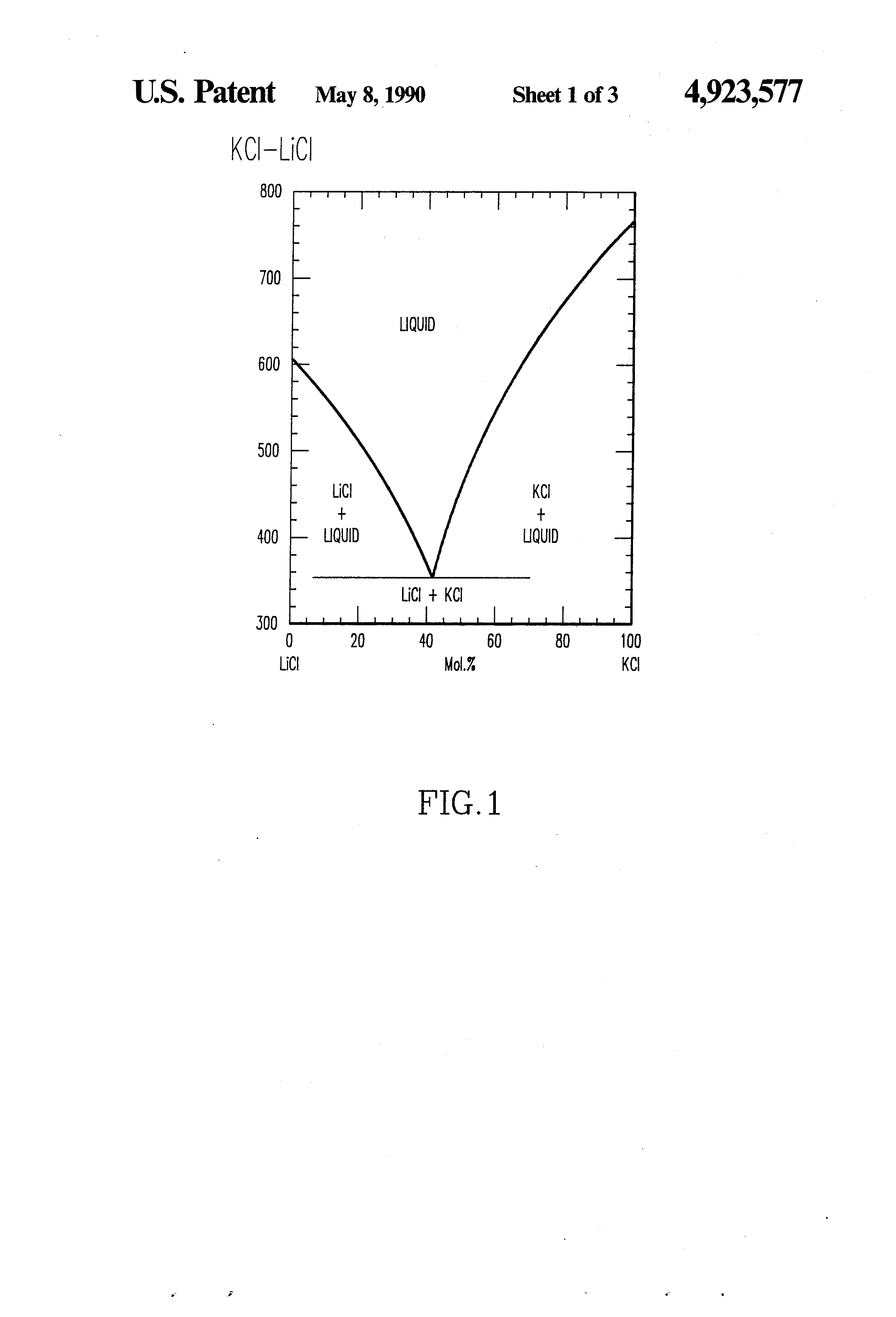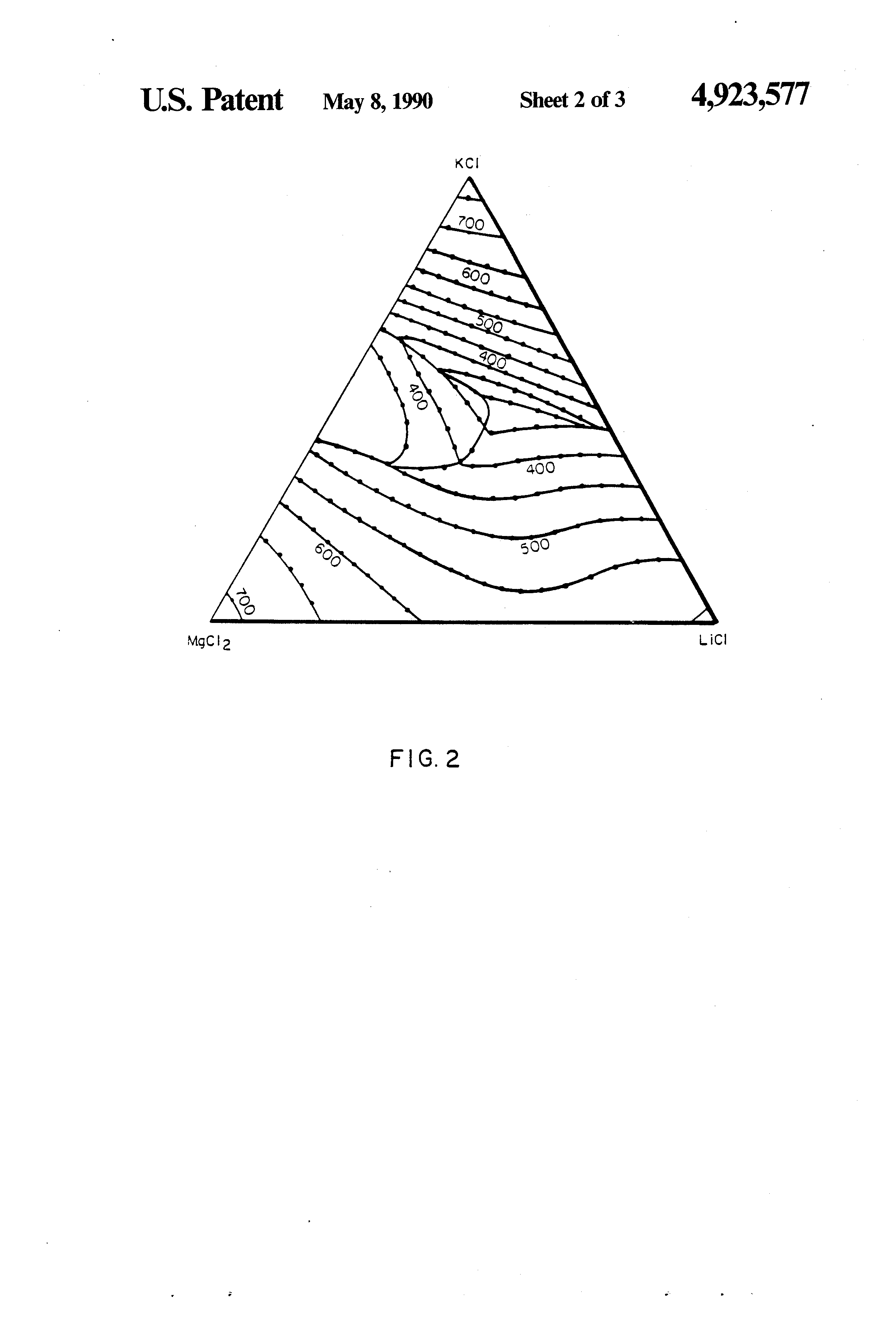 A process for zirconium-hafnium separation is described in related application Ser. No. 242,574, filed 9-12-88 (and now allowed) and assigned to the same assignee. That related application utilizes a complex of zirconium-hafnium chlorides (as used herein, unless otherwise indicated, the chlorides of zirconium and hafnium are the tetrachlorides), and phosphorus oxychloride prepared from zirconium-hafnium chloride with the complex of zirconium-hafnium chloride and phosphorus oxychloride being introduced into a distillation column and a hafnium chloride enriched stream is taken from the top of the column and a zirconium enriched chloride stream is taken from the bottom of the column, and in particular with prepurifying said zirconium-hafnium chlorides prior to introduction of the complex into a distillation column to substantially eliminate iron chloride from the zirconiumhafnium chloride, whereby buildup of iron chloride in the distillation column is substantially eliminated and the column can be operated in a continuous stable manner. A process for zirconium-hafnium separation is described in related application Ser. No. 242,571, filed 9-12-88 (and now allowed) and assigned to the same assignee. That related application utilizes a complex of zirconium-hafnium chloride and phosphorus oxychloride introduced into a distillation column, with a hafnium chloride enriched stream of complex taken from the top of the column and a zirconium-enriched chloride stream of complex taken from the bottom of the column, followed by reduction of the zirconium or hafnium chloride from complex taken from the distillation column by electrochemically bringing zirconium or hafnium out of a molten salt bath, with the molten salt in the molten salt bath consisting principally of a mixture of alkali metal and alkaline earth metal chlorides and zirconium or hafnium chloride. A process for zirconium-hafnium separation is described in related application Ser. No. 242,570, filed 9-12-88 (and now allowed) and assigned to the same assignee. That related application utilizes an extractive distillation column with a mixture of zirconium and hafnium tetrachlorides introduced into a distillation column and a molten salt solvent circulated through the column to provide a liquid phase, and with the molten salt solvent consisting principally of lithium chloride and at least one of sodium, magnesium and calcium chlorides. Stripping of the zirconium chloride taken from the bottom of distillation column is provided by electrochemically reducing zirconium from the molten salt solvent. A pressurized reflux condenser is used on the top of the column to add zirconium-hafnium chloride to the previously stripped molten salt solvent which is being circulated back to the top of the column. An improved process for prepurification of zirconium-hafnium chlorides prior to preparation of a complex of zirconium-hafnium chlorides and phosphorus oxychloride for use in a distillation column for zirconium-hafnium separation is described in related application Ser. No. 242,572, filed 9-12-88 (and now allowed) and assigned to the same assignee. That related application utilizes prepurification of zirconiumhafnium chlorides prior to complexing with phosphorus oxychloride by passing the zirconium-hafnium chloride through an essentially oxygen-free molten salt purification-sublimation system, and at least periodically removing iron chloride from the molten salt purification-sublimation system by electrochemically plating iron out of molten salt purification-sublimation system. The molten salt in the molten salt purification-sublimation system consisting essentially of a mixture of alkali metal and alkaline earth metal chlorides, zirconium-hafnium chlorides and impurities. A process for separating nickel from zirconium for recycling nickel-containing zirconium alloy is described in related application Ser. No. 242,573, filed 9-12-88 (and now allowed) and assigned to the same assignee. That related application utilizes placing nickel-containing zirconium metal in a molten salt bath with the molten salt in the molten salt bath consisting principally of a mixture of at least two alkali metal fluorides to produce a molten salt bath containing dissolved zirconium, electrochemically plating the nickel from the molten salt bath at a voltage sufficient to plate nickel but less than the voltage to plate zirconium to provide an essentially nickel-free molten salt bath; and then electrochemically reducing the zirconium from the essentially nickel-free molten salt bath to provide an essentially nickel-free zirconium. A process for removing phosphorus oxychloride from a complex of zirconium or hafnium chloride and phosphorus oxychloride is described in related application Ser. No. 242,563, filed 9-12-88 (and now allowed) and assigned to the same assignee. That related application utilizes an alkali metal chloride molten salt absorber vessel with a condenser which has the complex of zirconium or hafnium chloride and phosphorus oxychloride as the condensing fluid to scrub zirconium or hafnium chloride from the phosphorous oxychloride vapor. The process uses at least one separate vessel to strip the zirconium or hafnium chloride from the alkali metal chloride molten salt. This invention relates to reduction of zirconium or hafnium chloride after (or in combination with) separation of hafnium from zirconium and in particular relates to electrochemically-metallothermically reducing zirconium or hafnium in a molten salt bath. Molten (fused) salt electrochemical (electrolytic) processes for deposition of metal on one electrode (with evolution of chlorine gas at the other electrode) are known in the art. U.S. Pat. No. 3,764,493 to Nicks et al., and U.S. Pat. No. 4,670,121 to Ginatta et al. are examples of such processes. Naturally occurring zirconium ores generally contain from 1 to 3 percent hafnium oxide relative to zirconium oxide. In order that the zirconium metal be acc