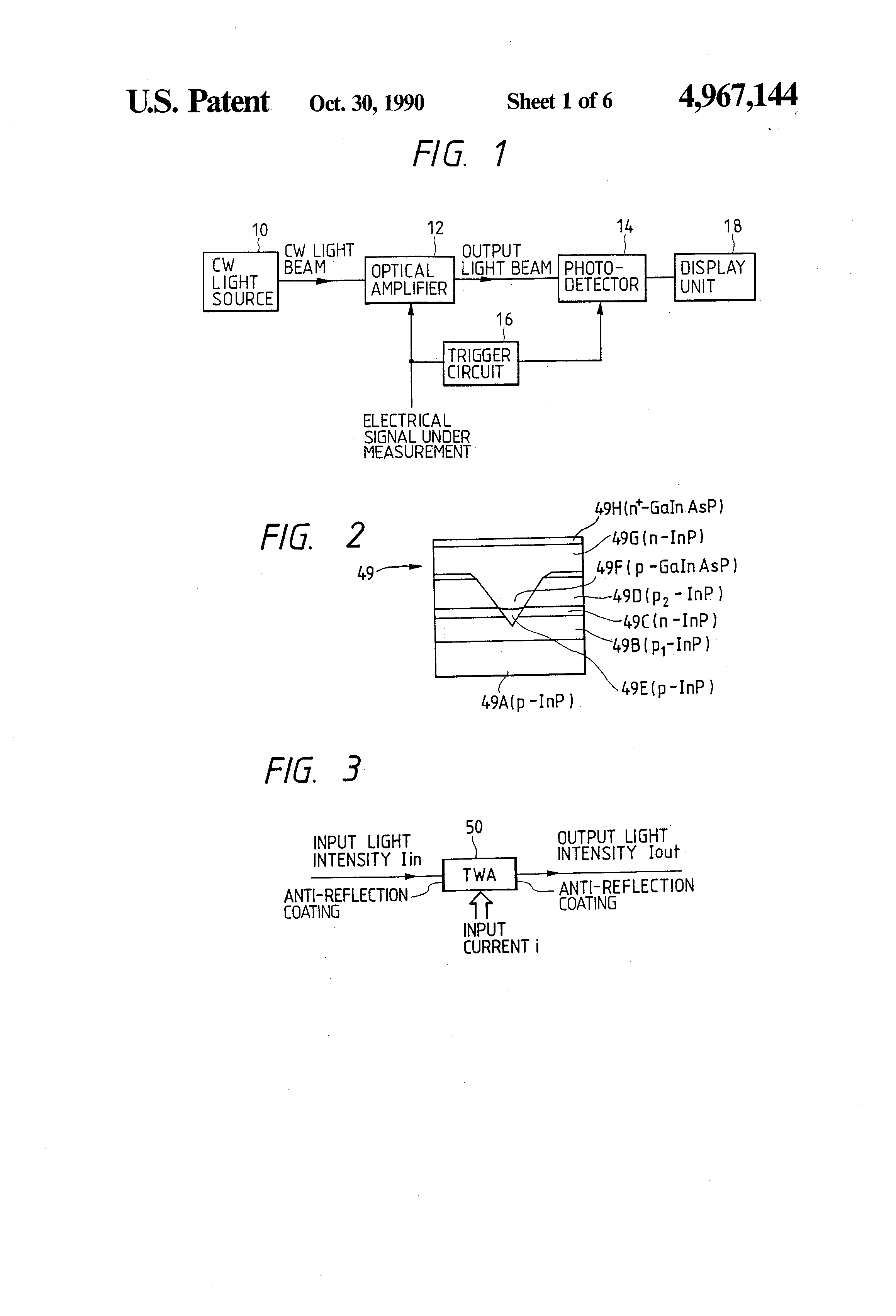 FIGS. 4 and 5 and are graphs of output optical intensity characteristics of the TWA of the invention;
