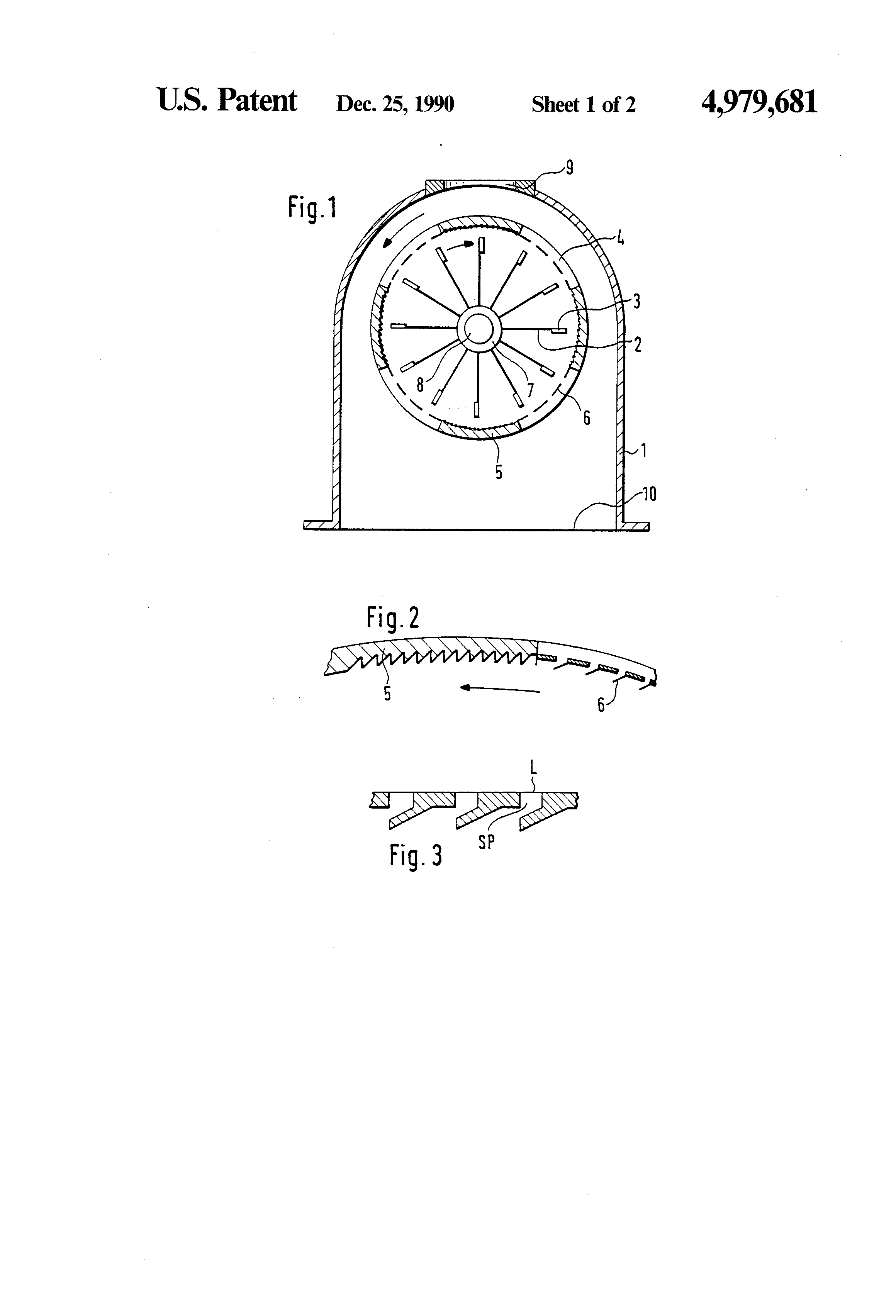 (c) a screen basket 4 which is arranged concentrically to the beater wheel 2 and has sawtooth segments 5 arranged sectionally one after the other on the periphery and metal friction sheets 6 provided with openings,