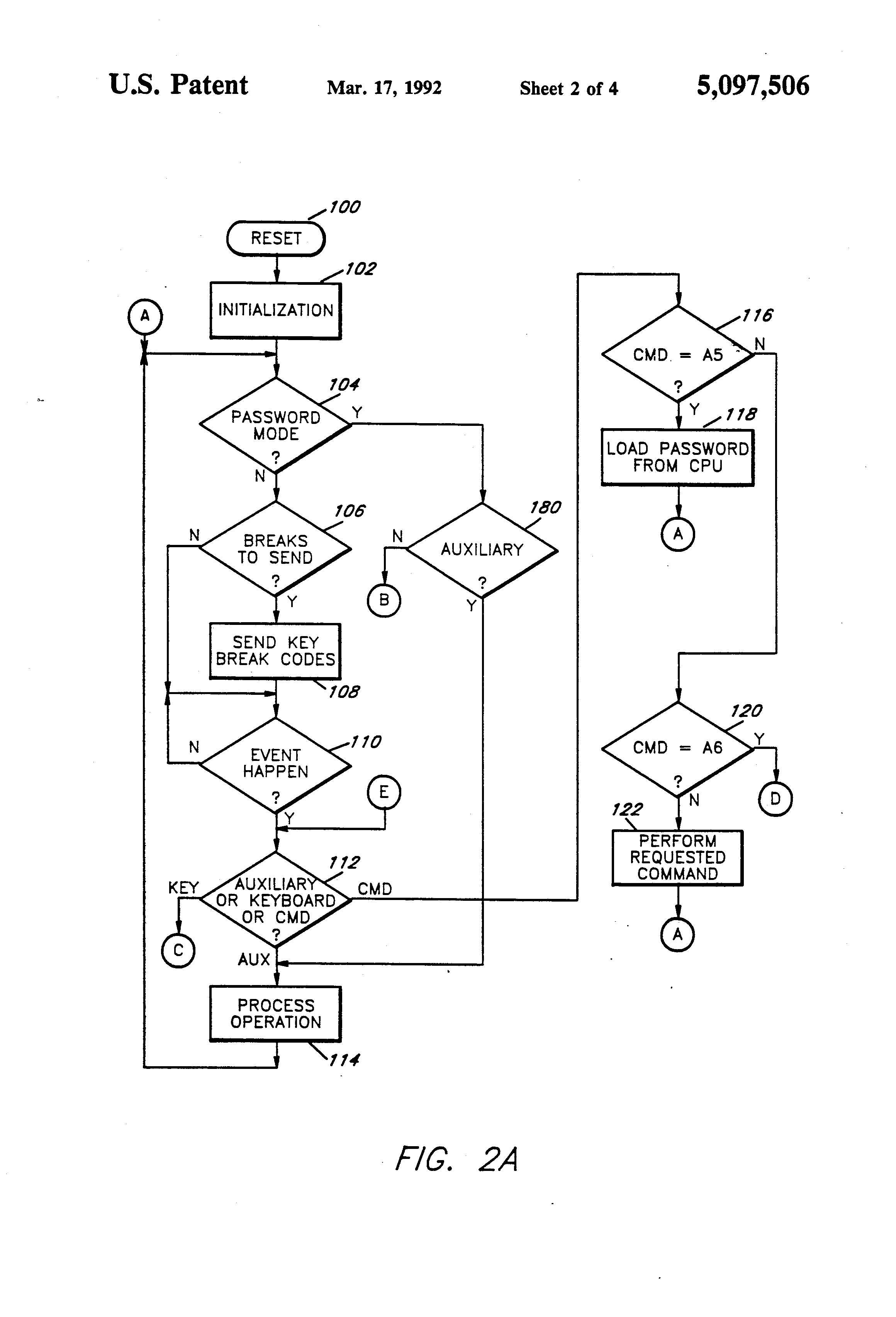 1. Field of the Invention The invention generally relates to keyboards used with computer systems and more particularly to a method and apparatus for locking access to the computer through the keyboard until a password is entered. 2. Description of the Related Art Personal computer systems are becoming more elaborate and are being used for more critical functions. For example, originally personal computers were only used for very simple word processing tasks and spreadsheet applications of relatively limited complexity. Today however, personal computers are being used to form elaborate network systems, both as the work stations and as the file servers and applications of great sensitivity or complexity are being executed. As the complexity of the various applications has gone up dramatically from a simple small spreadsheet application to horribly complex spreadsheets, so has the time required to perform the calculations. In many cases it is convenient for the user to do other tasks and leave his office, leaving the computer unattended. This unattended state is quite common in file server applications of the computer. Security in the personal computer either locally or on to a network is always of concern. For instance, if an administrator's station is connected into a network, the administrator will have various rights which other users are not allowed. If an ordinary user were to gain access to the network via the administrator's station and begin performing privileged options, disastrous results could occur to the network system. The same is true of access to the file server itself. Alternatively, if a spreadsheet program is in the midst of performing a very long recalculation and the operator wishes to leave for a period of time, another party could come in and see the computer doing apparently nothing and hit a key on the keyboard. This could result in the long recalculation being terminated midstream and having to be restarted. For these reasons it is desireable to be able to lock the keyboard so that access cannot be obtained without some clearance. In personal computers according to the International Business Machines (IBM) PC/AT class, a physical key switch was used to disable the keyboard activity. If the key switch was in the unlocked position, the keyboard characters were transmitted to the computer system, while when the key switch was in a locked position the characters were not transmitted to the computer system. One advantage of this was that it was very easy to allow keyboard security to be developed in that the key switch merely had to be turned to the locked position, but a disadvantage was that the key switch had to be readily accessible. If for instance the unit was located in a remote location, on the floor or had a very small size so that the key switch had to be located other than on the front of the unit, this need to physically access the key switch became inconvenient. One large advantage of the key switch was that it required no intervention by the processor in the computer system to perform the locking function and thus long tasks could be left running without interference. When IBM introduced the PS/2 series of personal computers a software based password feature was included. The password value could be loaded into the keyboard interface and activated by software in the computer system so that the keyboard interface did not transfer characters to the system until the password was entered. This was typically done to prevent data entry to the computer system upon initial turn-on, but this feature could be enabled at a later time by means of a utility program. However, because a separate program was needed, this program could not be initiated while other programs had control of the system, such as a spreadsheet program during recalculation. While it was possible to do a hot key scanning sequence using the system processor, a drawback to this technique was that certain operating systems blocked access to the keyboard interface and therefore the password mode could not be initiated. In a computer system according to the present invention the keyboard password capability can be activated without interference to any other programs which are operating in the computer system. The password and a key to complete a hot key sequence is downloaded into the keyboard interface, which is continually scanning the input sequence of key codes received from the keyboard. If a particular sequence of key codes, in the preferred embodiment, the CRTL, ALT and L make codes, are simultaneously present, this is an indication to the keyboard interface that password protected or active mode should be activated. The keyboard interface on its own then proceeds to block all incoming key codes until the complete password is entered. The keyboard interface then scans the received codes to see if the password is being entered. If the password is not entered, the scanning continues. If the password is entered, the password protected or active mode is exited. After the password active mode has been exited, the keyboard interface sends break codes for the CTRL and ALT keys to indicate to the running program that those keys have been released. Thus in this way the main processor in the computer system does not have to perform any function other than initially enabling the keyboard password sequence in the keyboard interface during the initial phases of operation of the computer system. The keyboard controller then performs all scanning functions without assistance from the central processor, which can thus be performing other duties, such as spreadsheet recalculation or file server functions. A better understanding of the present invention can be obtained with the following detailed description of the preferred embodiment is considered in conjunction with the following drawings, in which: FIG. 1 is a block diagram of a computer incorporating the present invention; and FIGS. 2A, 2B and 2C are flowc