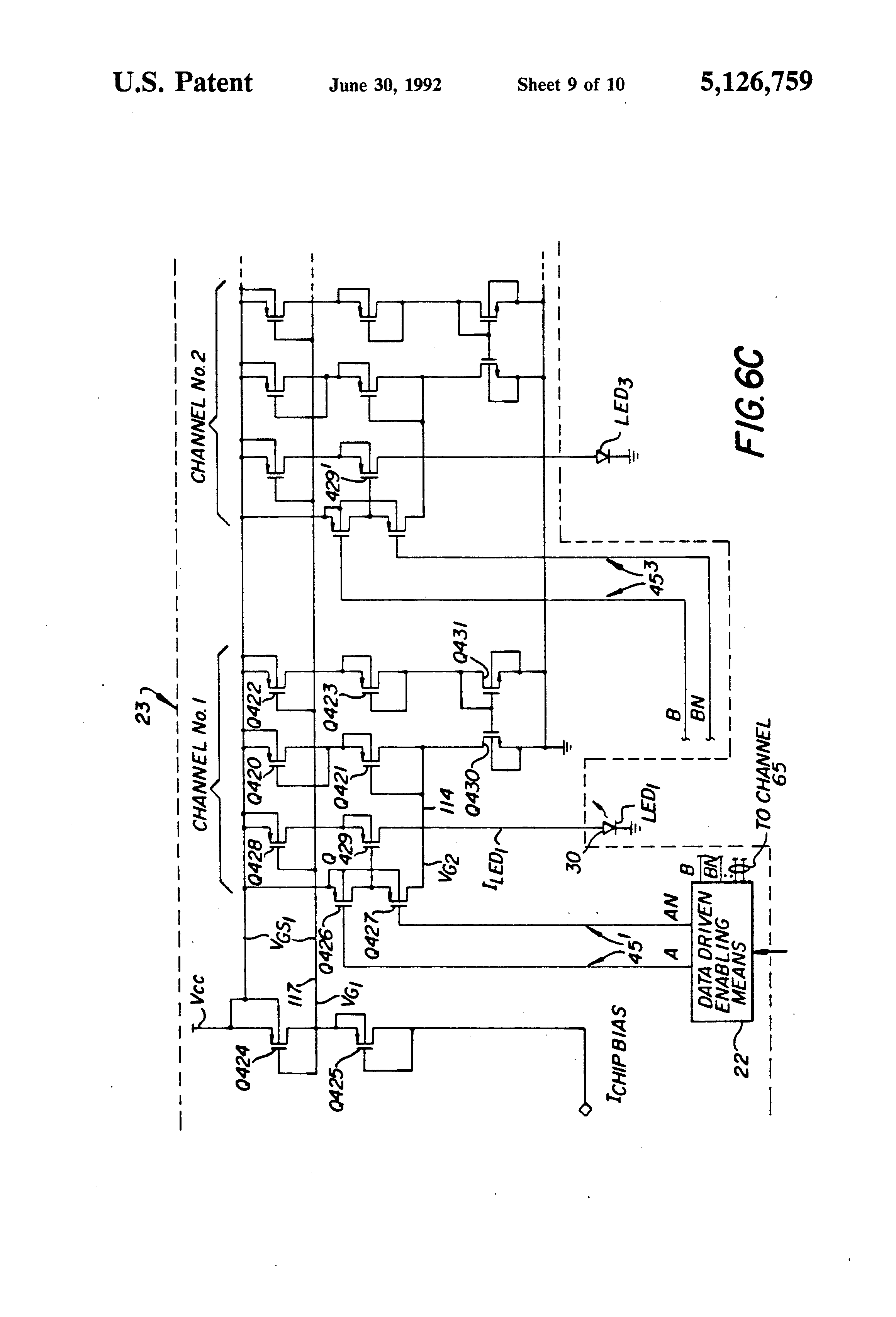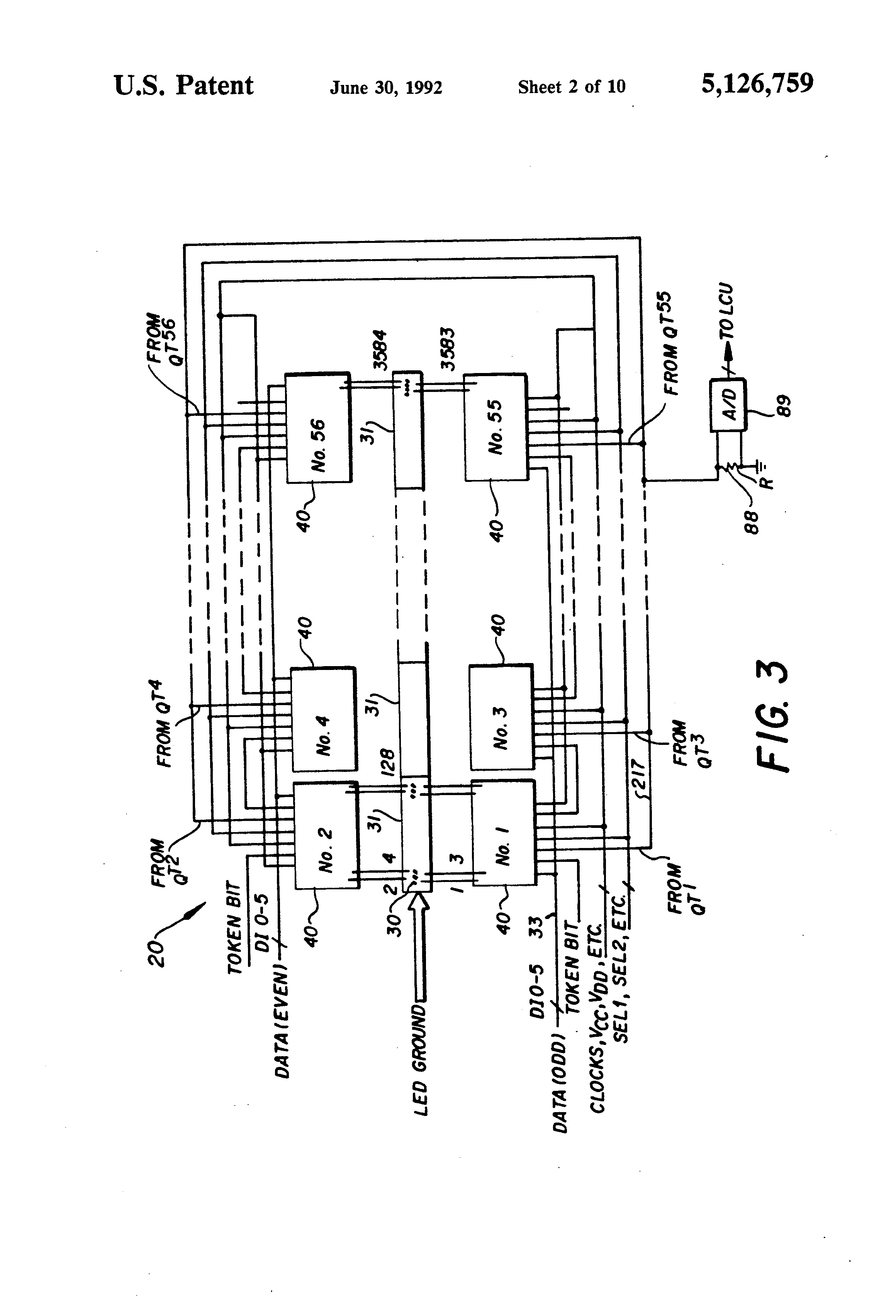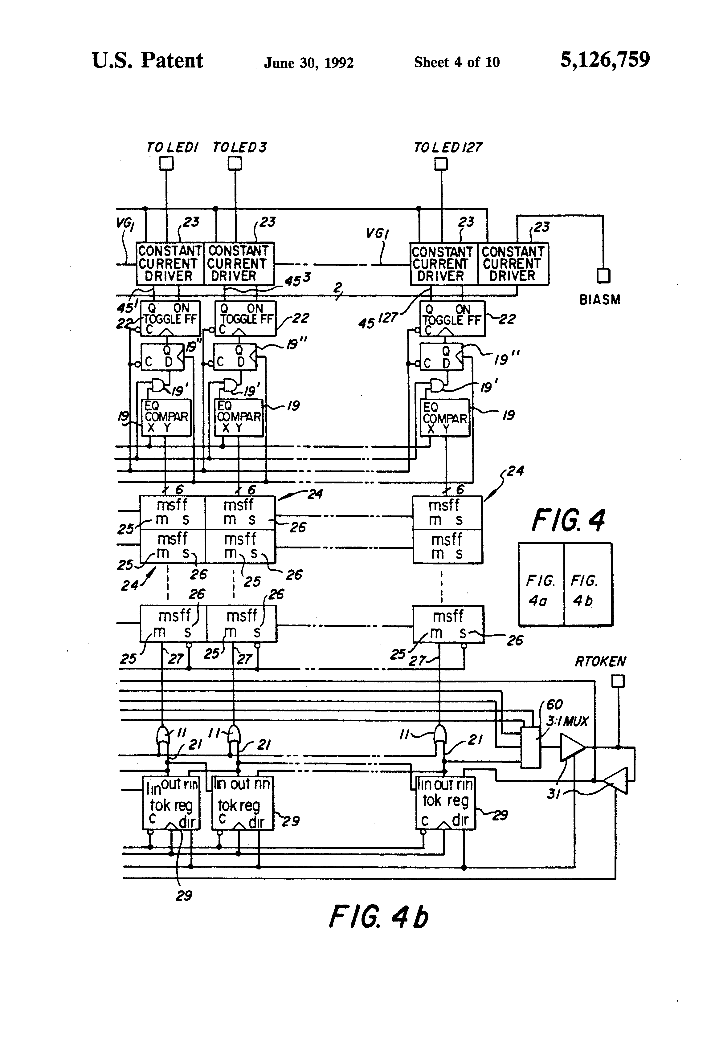 An LED printhead or the like includes a data bus for carrying multibit digital image data signals for grey level recording. A token bit signal is generated and shifted through registers upon the printhead to enable image data registers associated with each LED to latch the image data signals in appropriate order. The image data signals control the energization times for recording pixels. A digitally adjustable current mirror controls the level of current to each LED during recording. Digital current data signals for controlling this level of current are also communicated over one of the lines of the data bus. A token bit signal is also used to control the latching of current data signals in registers storing the digital data used for current control.