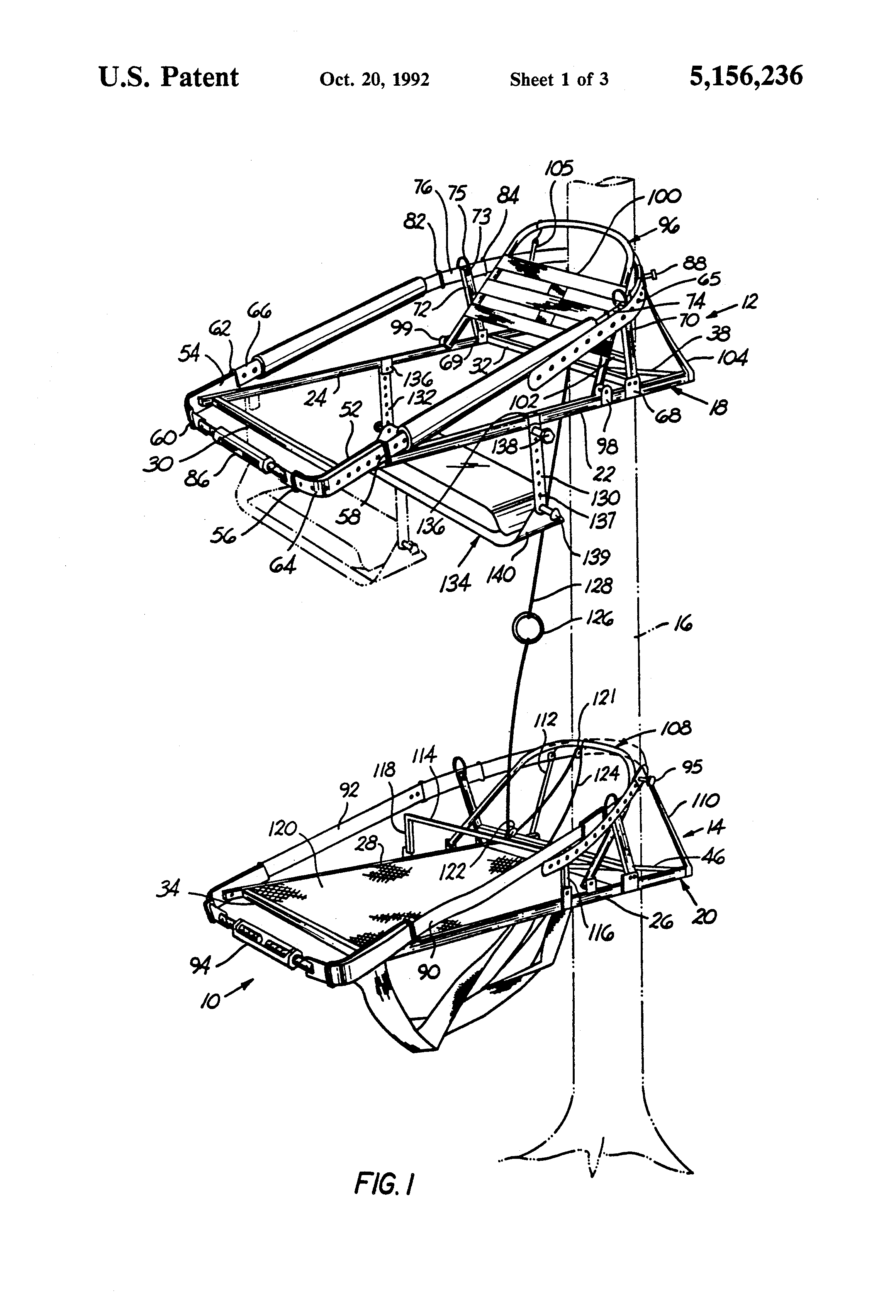 Apparatus for climbing a tree has two frames, each frame having a rigid base portion with a flexible adjustable tree encircling band mounted thereon. A turnbuckle is connected to ends of each band for drawing together and separating the ends so as to change the effective length of the band. The rigid base portions of each frame have tree gripping edges which together with the bands and resiliently biased braces acts to secure each frame to the tree. Adjustment of the turnbuckles changes the attitude of the base relative to the ground. One of the frames is positioned above the other on the tree and they are alternatively raised up the tree or lowered down the tree. The upper frame includes a seat which hangs from the rigid base and is slidable, vertically adjustable and pivotable relative to the base. The lower frame has a platform upon which the feet of a user may rest while standing or seated on the seat. A pivotable brace member mounted on each base and resiliently urged against the tree acts to aid in holding each frame against the tree during the climbing phase and the upper brace member also functions as a backrest for the user.