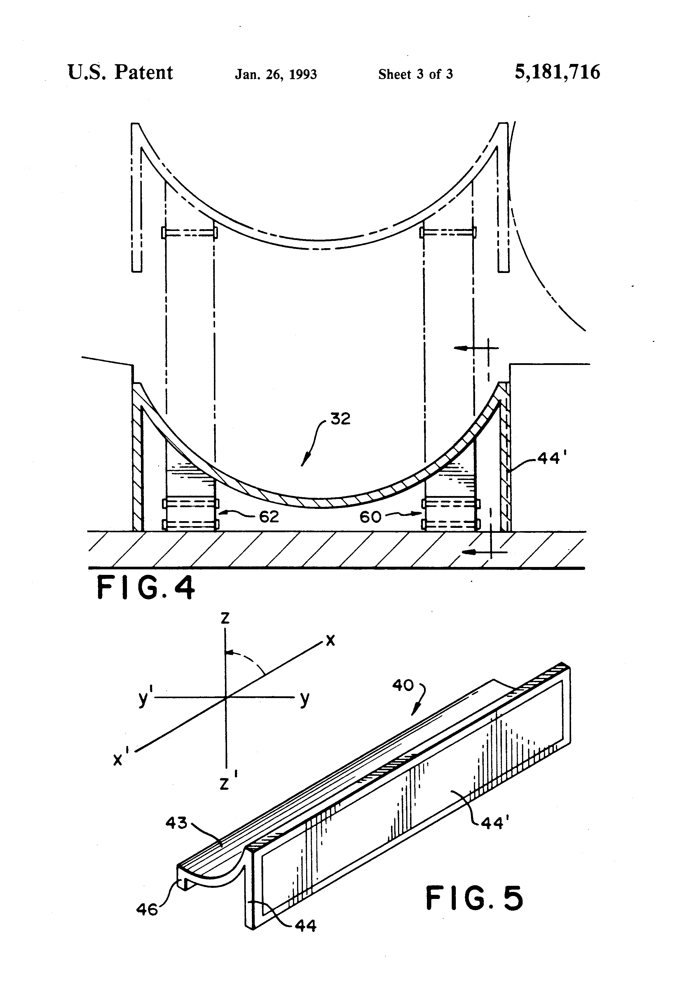 In a preferred embodiment of the invention, the portion 40 is moved upwardly along a path that corresponds to the arc shown in FIGS. 3 and 5. This motion is in the xz plane so that there is little or no lateral motion, i.e., along the y axis as shown schematically in FIG. 5.
