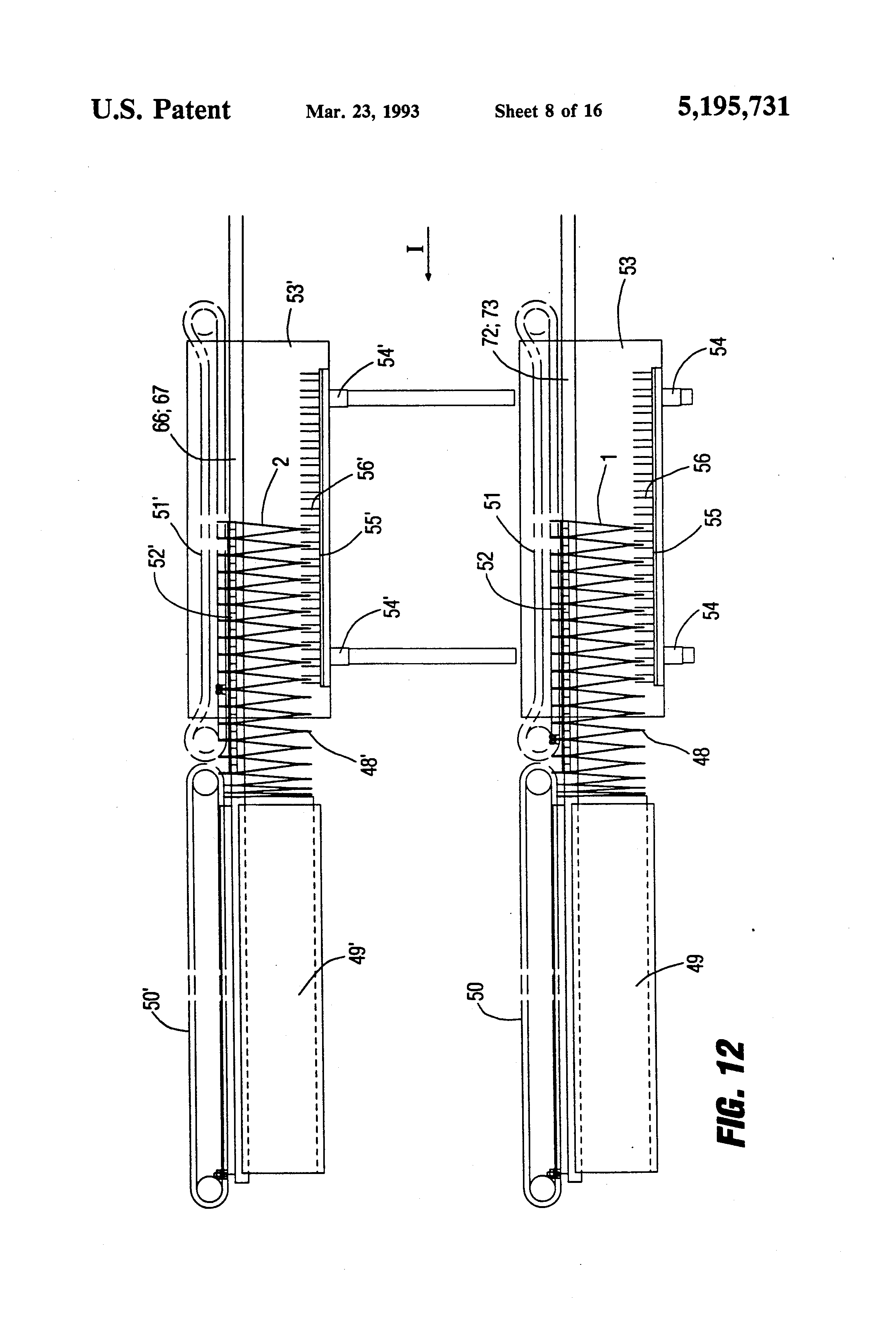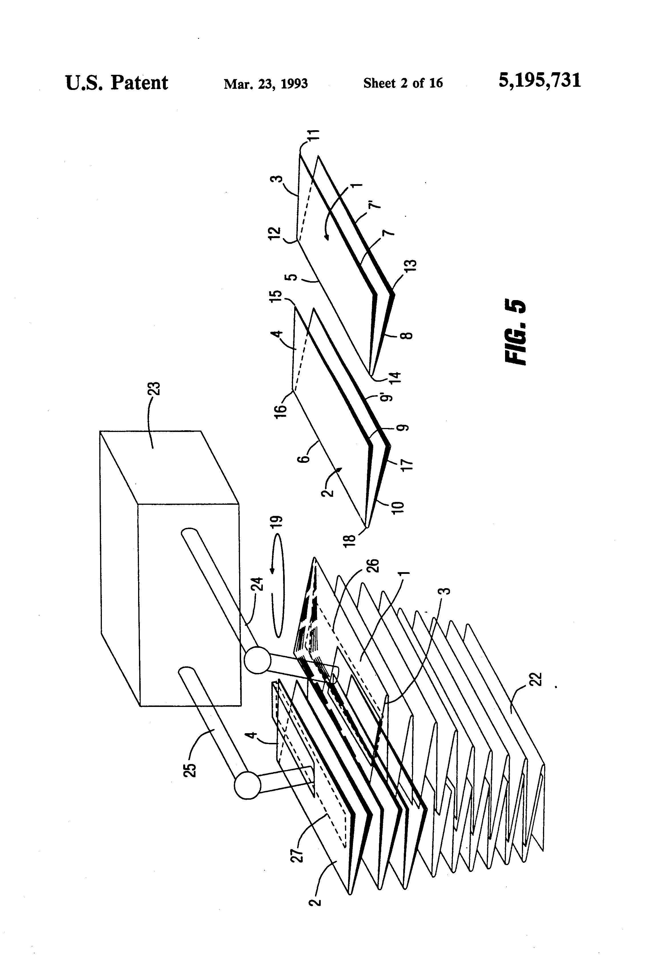 The present invention relates to a method and apparatus to stack folded products, and more particularly to stack newspapers which may include magazine inserts, so that fold lines arise in the completed products which extend longitudinally and, possibly, also at right angles to the longitudinal fold. Apparatus has previously been described--see U.S. Pat. No. 4,530,694, Kobler, the disclosure of which is incorporated by reference--to rotate sheets or packages of sheets about 90° in the major plane of the sheets. Sheets may have to be rotated when they have been folded. Due to the fold, one edge will be thicker than the other and, upon stacking of folded products, the incremental thickness at the folds may add; when a certain height of a stack is reached, the stack becomes unstable and tends to tip over. The known apparatus merely permits folded products to rotate by 90° so that, upon alternate stacking of rotated and original, non-rotated products, a stack will be formed with two sides of essentially uniform height. Such a stacking arrangement is substantially better than a stack of folded products in which none of them are rotated; yet, the stability of such a stack is not sufficient after a predetermined height thereof has been reached. Opening of the stacked products is only possible if the stacked products contain an additional fold-in sheet, to separate the individual sheet elements which have been folded. Apparatus as described to rotate predetermined folded products, for example all the odd folded products within a sequence thereof, is insufficient if the folded products, or packages thereof, have two folds, that is, have a longitudinal fold and a cross fold extending at right angles to the longitudinal fold. If such folded products are supplied to the known apparatus, compensation for height differences would be possible; opening of the folded products, however, at the fold sheets would not be possible without providing an additional fold-in flap on one of the sheet elements. The following patents and application, assigned to the assignee of the present invention, the disclosures of which are hereby incorporated by reference, relate to subject matter of this application: U.S. Pat. No. 4,840,365, Kobler et al U.S. Pat. No. 4,807,865, Kobler et al U.S. Pat. No. 4,871,159, Petersen U.S. Ser. No. 07/519,119, filed May 4, 1990, Kobler et al, now U.S. Pat. No. 5,110,116. It is an object to provide a method and apparatus which ensures reliable stable stacking of folded products which have identical orientation, and especially folded products which may have not only a longitudinal fold but, in addition thereto, a cross fold, and in which the stack, when reaching a certain height level, will be stable and flat, without danger of tipping; and which, still, permits opening of the sheet elements of the stack without use of a folding or opening flap. Briefly, the folded products are held spread apart, so that the individual sheet elements, which together form the folded product, are spread apart at a separating plane. The spread apart sheets are introduced, alternately, to a holder structure which has at least two parts, each one of them holding sequentially alternate folded products, which, for ease of description, may be termed even and odd products. A rotary system is provided, coupled to one of the parts to rotate the products thereon by 180° about an axis essentially perpendicular to the major plane of the products. The parts are then moved towards each other, after having been rotated, in such a way that the spread-apart products are interdigited or inserted into each other in a comb-like arrangement-when viewed from an edge of the folded products. The term "orientation" as used herein refers to the orientation of the product with respect to its fold or back. The system has the advantage that the folded products although received in identical orientation, will, when stacked above each other, result in a stack which will remain flat and not have a tendency to tip, while permitting ready separation of the products from each other by merely pulling out a product at the fold line from between the two opposite adjacent products which are interdigited therewith. The arrangement has the further advantage that the stacked, comb-like interdigited sheets or packages of sheets can readily be opened again without use of a folding flap, for example in order to place inserts therein. Use of folding flaps, which have to be separated before the products can be sold or given away, not only causes additional separation work, but also wastes papers. FIGS. 1 to 4 are schematic isometric views of the formation of a stack starting with two folded products; FIG. 5 is a schematic view of a first embodiment of an apparatus to form the stack of FIG. 4; FIG. 6 is a schematic side view of a second embodiment of an apparatus to provide interdigited folded products; FIG. 7 is a detailed fragmentary view of part of embodiment of FIG. 6 to an enlarged scale; FIG. 8 is a side view of an apparatus used in the system of FIG. 6; FIG. 9 is a fragmentary view of the apparatus of FIG. 8; and FIG. 10 illustrates the interaction of two insertion elements of FIG. 6; FIG. 11 illustrates, highly schematically, a third embodiment of a system to provide interdigited folded products; FIG. 12 is an enlarged fragmentary view of a portion of FIG. 11; and FIGS. 13 through 20 are schematic front and side views, respectively, of folded products stored in storage cassettes, in which FIGS. 13 to 20, schematically, illustrate different steps to effect the insertion of alternate folded products into each other. Referring first to FIGS. 1-4: A folded product, typically a printed product 1, 2 which may be formed of a plurality of individual elements, for example a section or group of sections of a newspaper, is folded at lines 3 and 4 and further, at right angles thereto, at lines 5 and 6, to form respective fold lines 3, 4; 5, 6. The products
