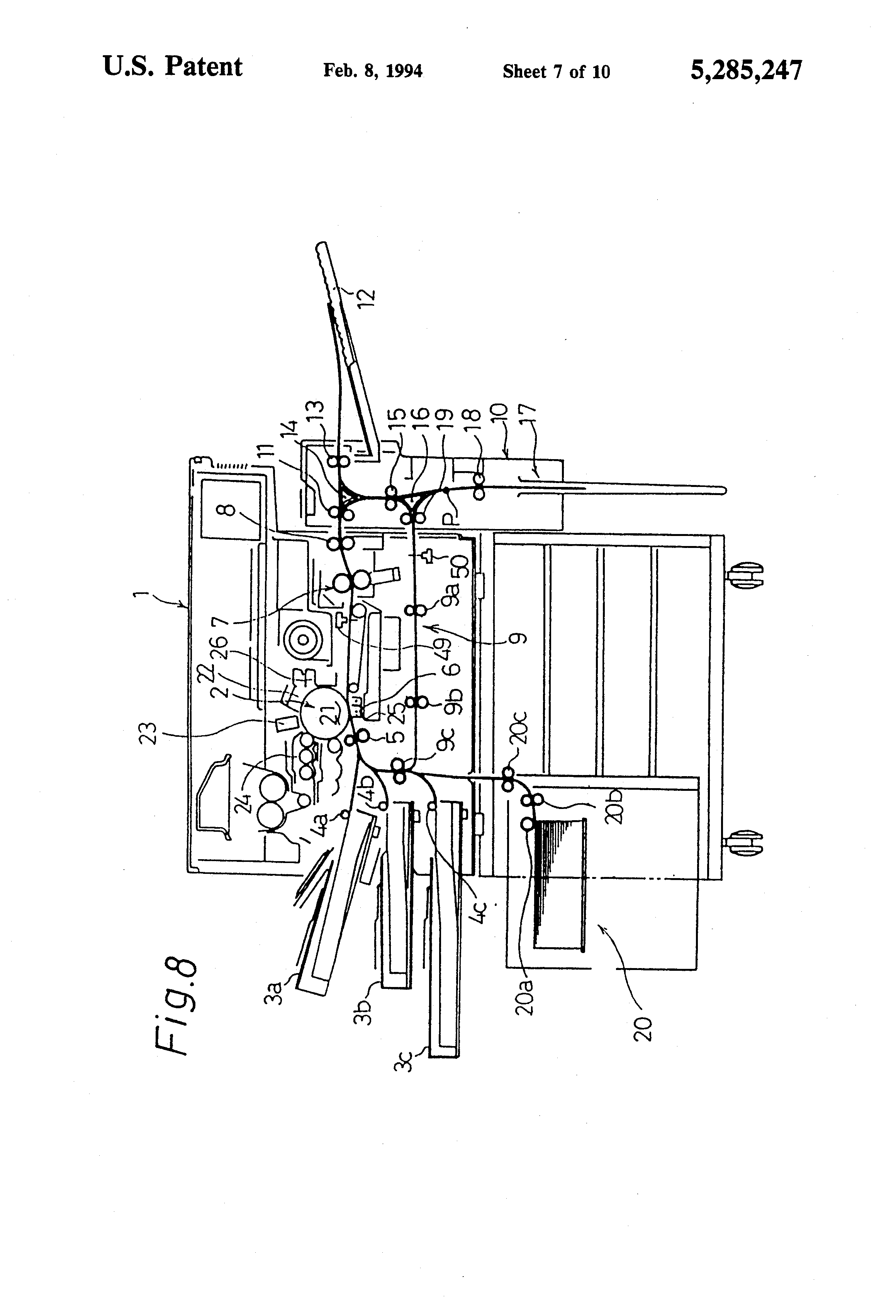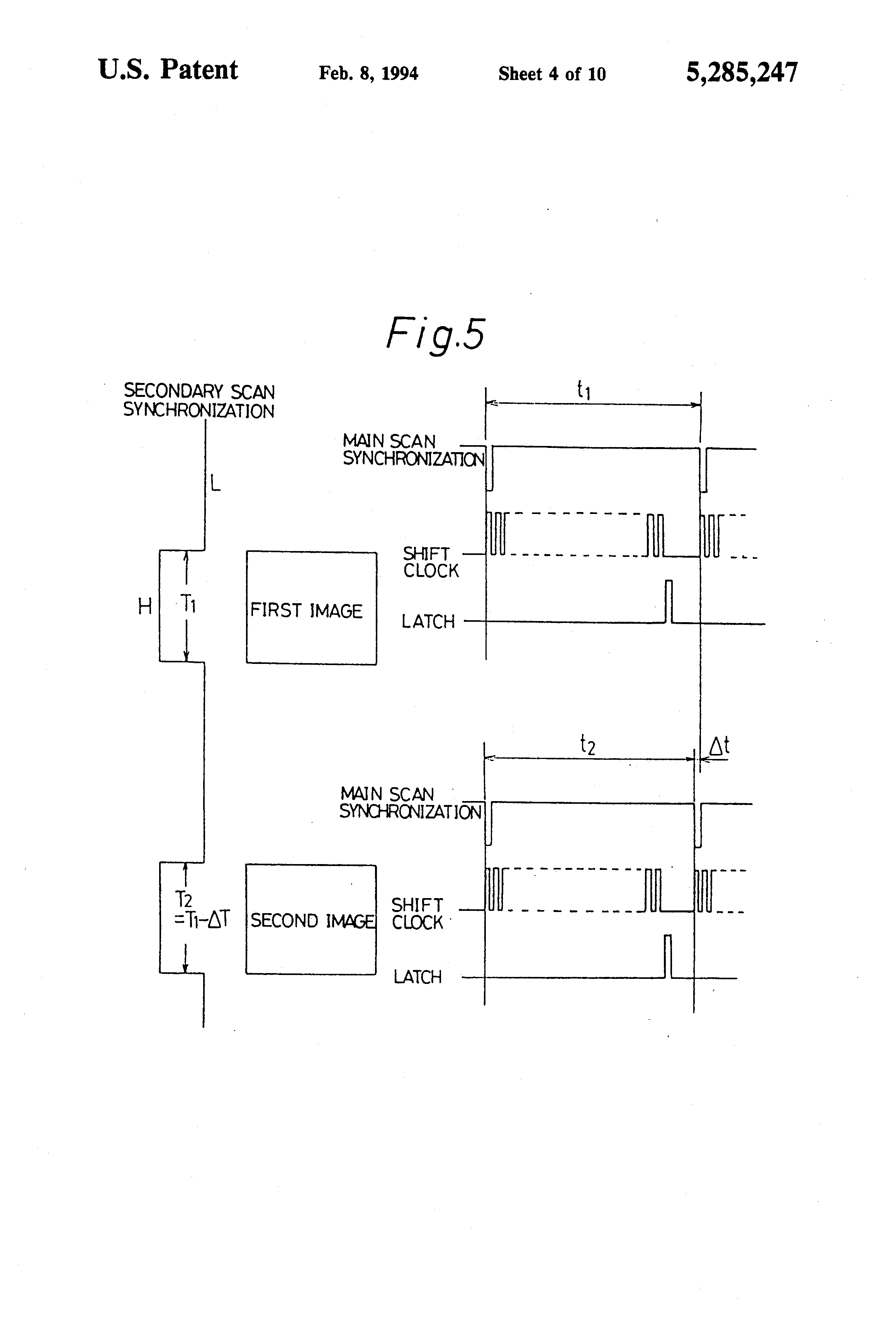 1. An image forming apparatus, comprising: a photoconductor; a linear print head for exposing the photoconductor so as to form a line image including a plurality of printing dots; a driving means for correlatively moving the photoconductor and the linear print head in a direction perpendicularly intersecting a longitudinal direction of the print head; an oscillator for generating a shift clock signal; a programmable counter for receiving the shift clock signal, for generating a main scan synchronization signal based on said shift clock signal, said main scan synchronization signal having a cycle rate, and for generating a secondary scan synchronization signal based on said shift signal, said secondary scan synchronization signal being set to a first value to signal an exposure of the photoconductor and a second value when the photoconductor is not being exposed; and a generating means for generating a strobe signal based on the main scan synchronization signal, while the secondary scan synchronization signal is set to said first value; an input means for inputting an image signal to said linear print head, said linear print head exposing the photoconductor according to the image signal in response to the generation of the strobe signal after one line of the image signal is inputted, said input means only being active while said secondary scan synchronization signal is set to said first value; an image forming section for forming an image formed on the photoconductor onto a sheet; wherein the programmable counter changes the main scan synchronization rate and the period during which the secondary scan synchronization is set to said first value to change the magnification of the image to be formed. 2. An improved image forming apparatus for providing multiple copying cycles of the same copy sheet, comprising: a photoconductor; means for applying an image to the photoconductor including a linear print head for exposing the photoconductor to a line image including a plurality of printing dots; a driving means for correlatively moving the photoconductor and the linear print head; an oscillator for generating a shift clock signal; a programmable counter for receiving the shift clock signal and for generating a main scan synchronization signal based on said shift clock signal, said main scan synchronization signal having a cycle rate; a generating means for generating a strobe signal based on the main scan synchronization signal; an input means for inputting an image signal to said linear print head, said linear print head exposing the photoconductor according to the image signal in response to the generation of the strobe signal after one line of the image signal is inputted; an image forming section for forming an image formed on the photoconductor onto a copy sheet; a transporting means capable of transporting a copy sheet on which an image has been formed back to the image forming section for a subsequent round of an image forming process wherein the programmable counter changes the main scan synchronization signal based on a predetermined value prior to the subsequent round of the image forming process. 3. An image forming apparatus, comprising: a photoconductor; a linear print head for exposing the photoconductor so as to form a line image including a plurality of printing dots; a driving means for correlatively moving the photoconductor and the linear print head in a direction perpendicularly intersecting a longitudinal direction of the linear print head; a generating means for generating a strobe signal at a predetermined cycle; an input means for inputting an image signal to said linear print head, said linear print head exposing the photoconductor according to the image signal in response to the generation of the strobe signal after one line of the image signal is inputted; an image forming section for transferring the image formed on the photoconductor onto a sheet; a fixing means for fixing the image on the sheet; a transporting means for transporting the sheet on which an image has been formed during a first round of an image forming process back to the image forming section for a second round of an image forming process; a first detector positioned along a path of said sheet before a fixing means, said first detector detecting the passage of a leading edge of said sheet and a trailing edge of said sheet and determining a first length of said sheet; a second detector positioned along a path of said paper after the fixing means, said second detector detecting the passage of a leading edge of said sheet and a trailing edge of said sheet and determining a second length of said sheet; processing means for comparing said first length and said second length to determine a difference in length of said sheet; and an exposure timing control means for setting a generating cycle of the strobe signal for the second round of an image forming process on a sheet based on said strobe signal of said first round and said difference in length of said sheet so as to vary from the generating cycle of a first round of the image forming process. 4. The image forming apparatus as defined in claim 3, wherein the linear print head is an LED array where a plurality of LEDs are linearly arranged, and the input means is a driving circuit for selectively causing the LED to emit light. 5. The image forming apparatus as defined in claim 3, wherein the transporting means includes a means for transporting a sheet on which an image has been formed in a first round of an image forming process to the image forming section again by reversing the sheet for forming images on both sides of the sheet, and a means for transporting a sheet on which an image has been formed at a first round of an image forming process to the image forming section again, without reversing the sheet, for forming a plurality of images on the same surface of the sheet. 6. The image forming apparatus of claim 3, wherein the input means comprises: 
