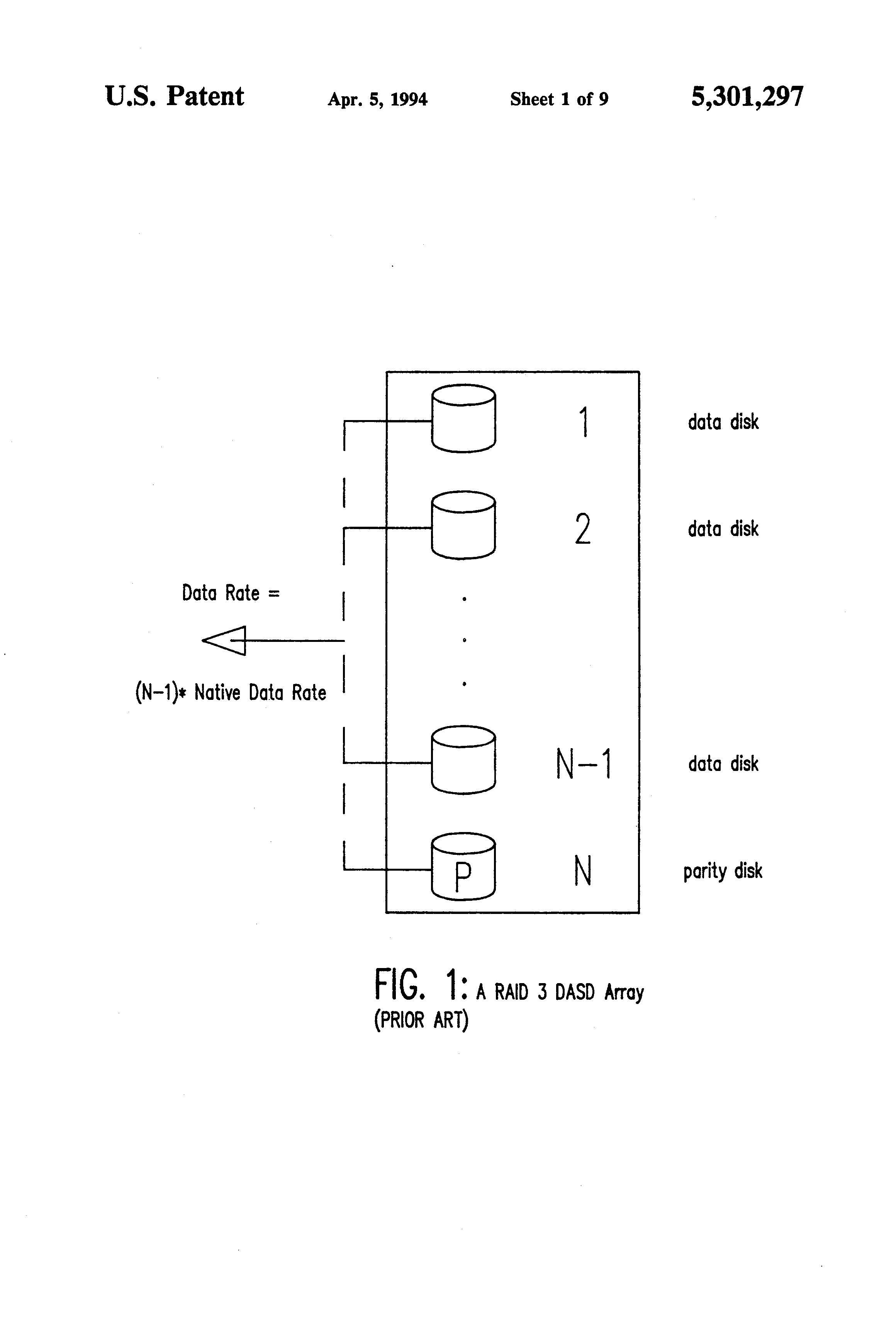 Alternatively, a RAID 5 array is any N data +P parity DASD array in which a selectable interleave depth controls the striping and where P>=0.