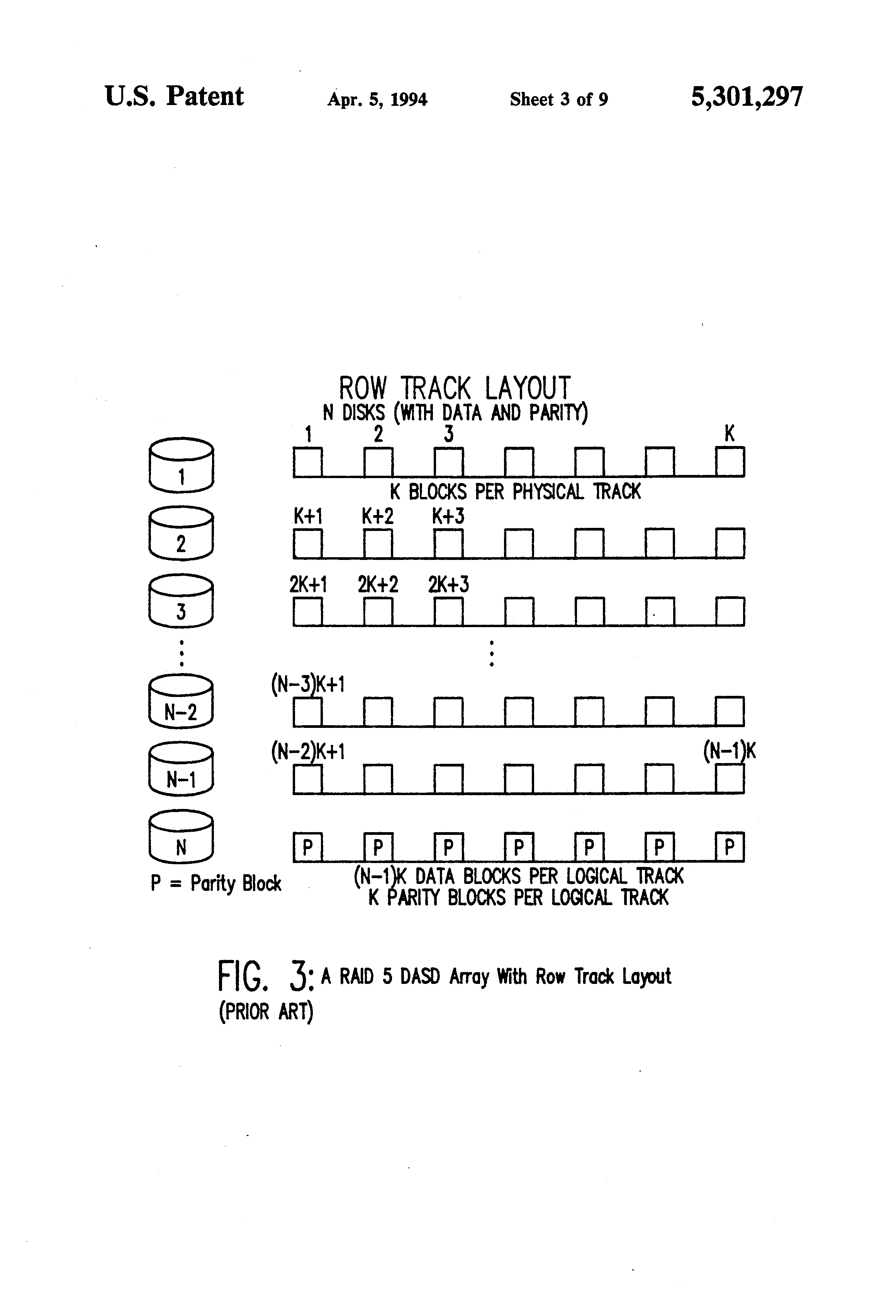 Additionally, the RAID 5 array of RAID 3 array is much simpler than a RAID 5 array to operate. For example, it does not have the problem of having to lock parity groups, as required by RAID 5, in order to maintain the consistency of parity groups in the face of concurrent updates. During degraded mode, when a physical device in the array is broken, the RAID 5 array of RAID 3 array suffers no loss in performance; it behaves like a RAID 3 array in this regard.