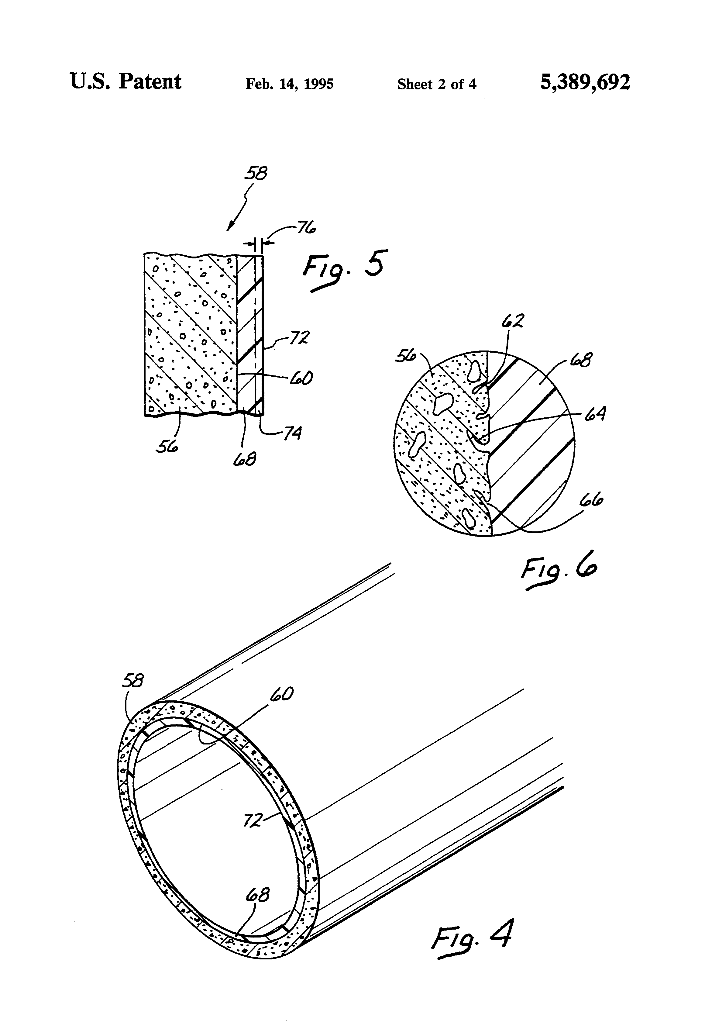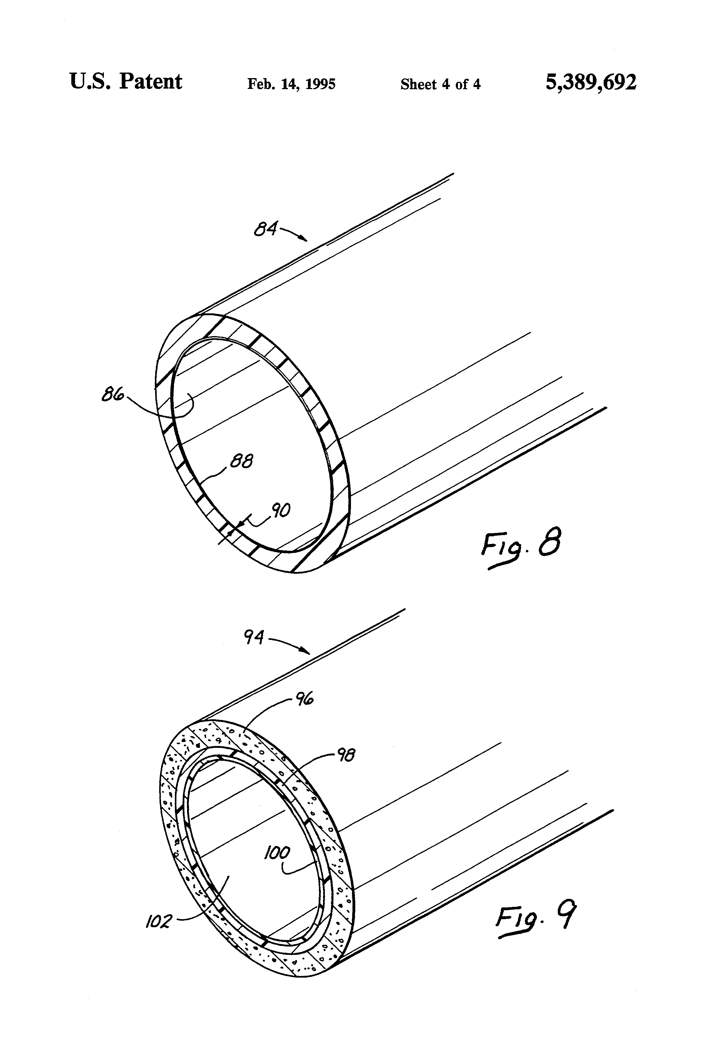 This application is a continuation-in-part of application Ser. No. 966,282, filed Oct. 26, 1992, and now U.S. Pat. No. 5,268,392, in the name of Richard L. Bertram, Applicant herein, for "Deteriorated Structure Repair Method and Substratum for Restoring and Lining Corroded Structure," priority of filing date for all subject matter common to this and said parent applications being hereby claimed. 1. Field of the Invention The present invention relates to the art of fluid conduits, and more particularly to the application of polymer substances to restore, strengthen and substitute for deteriorated and new concrete or metal structures that have to resist corrosion. 2. Description of the Prior Art Waste water and sewerage are frequently conducted through fluid conduits made of concrete. In some applications, the conduits are made of metal. Sewer systems frequently have reservoirs, containers and ponds, such as settling ponds which also are made of concrete and sometimes of metal. Sewerage and waste water often contain material that is highly corrosive, especially with respect to concrete and metal. The closed system which constitutes most sewerage systems in use presently, creates anaerobic conditions ideal for the proliferation of anaerobic bacteriae which result in hydrogen sulfide. Consequently, waste water pipes, sewage pipes, reservoirs, containers and ponds frequently are the subject of substantial corrosion and deterioration. In addition, corrosive material resulting from the digestive by-products of organisms existing within the waste water and sewer systems cause substantial deterioration of the concrete and metal conduits. Here in this specification for simplicity of explanation, reference will often be made to "conduits" and "pipes," by which terms I intend to include not only conduits and pipes but also box tunnels and culverts, reservoirs, containers and ponds as discussed above. Such "conduits" and "pipes" as those terms are used herein, include, for example, settling or processing "ponds" at sewerage processing plants, back-up reservoirs and, in general, building structures involved with such processing, unless the text specifies otherwise. The deterioration frequently takes the form of physical decay of the walls of the conduits so that the thickness of the walls is reduced. Actual amounts of the concrete or metal are literally removed or corroded away over the years. In many instances, sewer and waste water conduits and like structures have walls so thin that the conduits have collapsed under the weight of traffic passing over them, and it has been reported that people have stuck their arms through them with relative ease. Another undesirable effect of the corrosion and deterioration is that in the weakened condition that thin walls have, the walls crack more easily, resulting in leaks in the sewer system. Such leaks undermine the soil or prepared beds in which the concrete or metal pipes lay. Further, such leaks may contaminate the aquifer, may pollute the water ways and may surface to make the environment above unpleasant, as well. Some of the more common corrosive materials within sewer conduits are sulfuric acid and hydrogen sulfide, which can turn into sulfuric acid under the conditions frequently found in sewer systems. Their corrosive effects may be readily appreciated. Sewer conduits normally have an anaerobic slime deposit along the wall of the conduit which is submerged below the liquid line or level. Various metal sulfates are among the more common ingredients of this anaerobic deposit. In the substantially liquid waste water, the sulfates reduce to sulfide ions, which combine with the hydrogen in the waste water to outgas above the liquid level as hydrogen sulfide. Hydrogen sulfide, per se, can be highly corrosive to metals, of which some sewer pipes are made. Many concrete pipes have metal, as, for example, steel reinforcing ribs, beams and like support structure, which are sometimes called "rebar." Oxygen from the air intakes in the sewer system, such as manholes, as well as oxygen from water condensing on the upper portions of the interior surface of the conduit wall which are not in contact with the liquid being conducted, interacts with bacteria within the conduit above the liquid level. The bacteria produces more hydrogen sulfide. Oxygen from the liquid and condensing from the water in the air reacts with the hydrogen sulfide gas to create the highly corrosive sulfuric acid. The hydrogen of the acid reacts with the calcium hydroxide in the cement of the concrete conduit, and calcium results as gypsum or calcium sulfate, which has been described as a soft corrosion product. The gypsum drops off the interior of the wall itself, making the wall more thin and substantially weakened. In this manner, whole chunks of the concrete wall are removed or vanish, reducing the thickness of the wall. Restoring such damaged and weakened conduits and pipes in the past has been accomplished primarily through two fundamental methods. In one basic modality, the concrete conduits are entered and fresh concrete is troweled onto the walls to build the thickness back to the original dimension. This method is somewhat problematic in that troweling on the roof of the conduit requires special efforts and time. Frequently, such as in sewer conduits, for example, the repair must be performed within a specified time window. Usually, sewer conduits have a relatively lower flow rate or level during the hours between midnight and the normal waking hours of around seven in the morning. After the normal waking hours, most sewer conduits are so full that entry into the conduit and any repair are not possible. A second modality involves a process of digging from the top surface down to the weakened conduit. The earth around the weakened conduit is excavated, and a layer of concrete of suitable thickness is poured around the weakened conduit to, in effect, provide a new conduit encasing the old