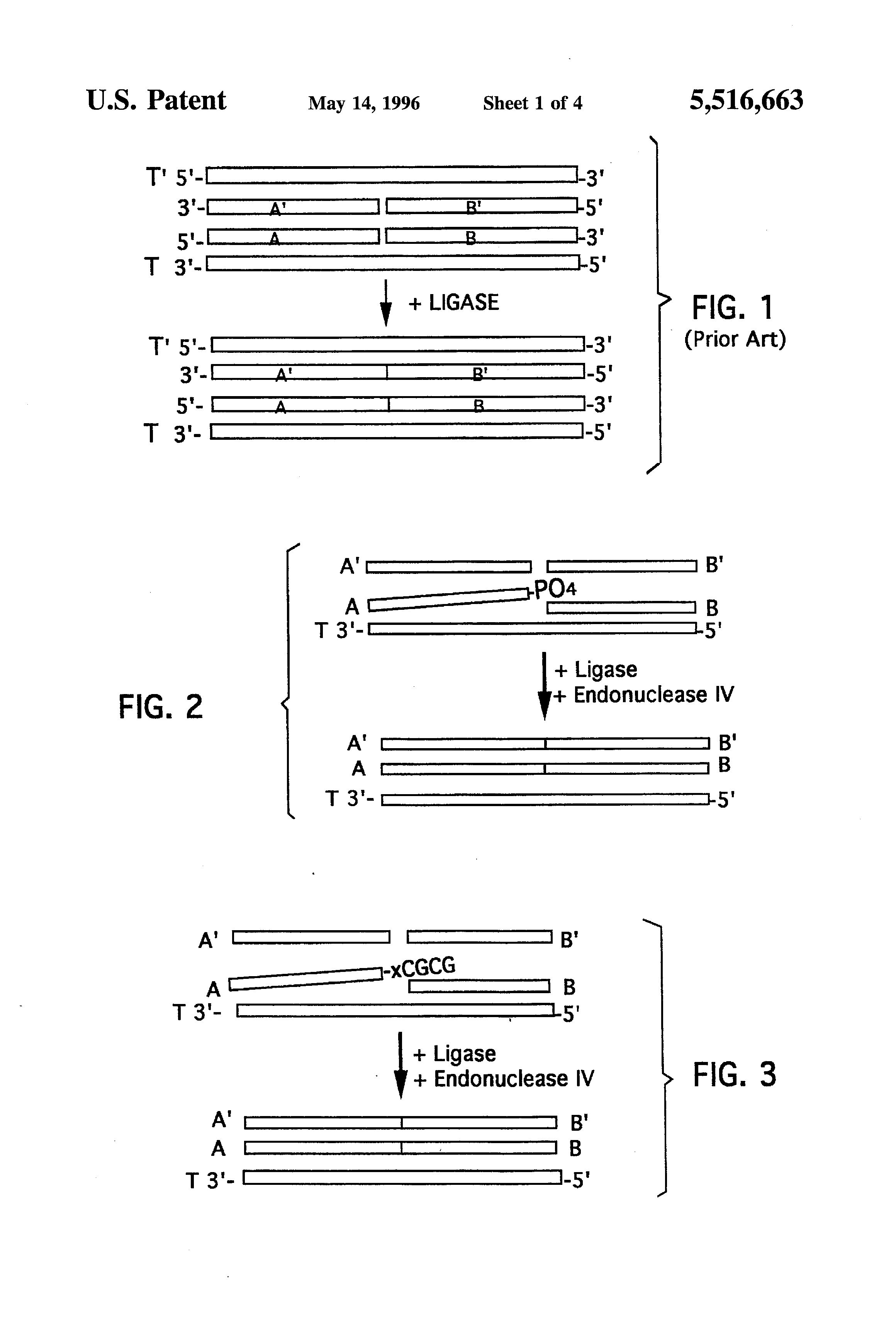 This application is a continuation-in-part of each of the following U.S. applications: Ser. No.07/634,771, filed Jan. 9, 1991, abandoned, which is a continuation-in-part of application Ser. No. 07/470,674, filed Jan. 31, 1990, now abandoned; Ser. No. 07/722,798, filed Jun. 28, 1991, issued at U.S. Pat. No. 5,427,930; Ser. No. 07/869,306, filed Apr. 16, 1992, abandoned, which is a continuation of Ser. No. 07/860,861, filed Mar. 31, 1992, now abandoned; Ser. No. 07/925,402, filed Aug. 3, 1992, abandoned; and Ser. No. 07/826,932, filed January 21, 1992, abandoned. The first two mentioned applications form the basis of EP-A-0 439 182, published on Jul. 31, 1991. The entire disclosure of each of the above-mentioned applications is incorporated herein by reference. This invention relates to methods of amplifying target nucleic acids and, particularly, to methods of performing ligase chain reaction amplifications wherein at least one of the probes is reversibly modified at the ligation site so that it is not a substrate for the enzyme catalyzed ligation. Exemplary modifications include chemical blockage of reactant groups, or an abasic site and the addition of one or more nucleic acid bases to form an "overhang". The modified end prevents or reduces target independent spurious signal development and is later corrected in a target dependent manner to enable amplification. Oftentimes, the feasibility of a nucleic acid based diagnostic assay is dependent on the ability to amplify the signal generated by only a few molecules of target. Although signal amplification is one potential solution, target amplification is often the preferred solution in nucleic acid based assays. Target amplification involves the repeated copying or duplication of sections of the nucleic acid designated as the target sequence. One mechanism for target amplification is known as ligase chain reaction (LCRT™). In LCR™, two primary probes (first and second, both of same sense) and two secondary probes (third and fourth, both of opposite sense with respect to primary probes) are employed in excess. The first probe hybridizes to a first segment of the target strand and the second probe hybridizes to a second segment of the target strand, the first and second segments being contiguous so that the 3' hydroxyl end of an "upstream" probe abuts the 5' phosphate end of a "downstream" probe, and so that a ligase can covalently ligate the two probes into a fused ligation product. In like manner, LCR™ employs upstream and downstream secondary probes. A third probe (downstream secondary) can hybridize to the first probe (upstream primary) and a fourth probe (upstream secondary) can hybridize to the second probe (downstream primary) in a similar abutting fashion. Of course, if the target is initially double stranded, the secondary probes can also hybridize to the target complement in the first instance. Once the fused strand of primary probes is separated from the target strand, it will hybridize with the third and fourth (secondary) probes which can be ligated to form a complementary, secondary fused product. In order to understand LCR™ and the improvements described herein, it is important to realize that the fused products are functionally equivalent to either the target or its complement. By repeated cycles of hybridization and ligation, amplification of the target sequence is achieved. This technique is described more completely in EP-A-320 308, the entire disclosure of which is incorporated herein by reference. One of the great strengths of amplification reactions is their ability to detect exceedingly small numbers of target molecules. However, it is important that the amplification process be highly specific since the amplification of non-target sequences along with signal could potentially impair the reliability of the amplification process. One potential problem associated with ligase chain reaction is background signal caused by target independent ligation of the probes. Since the third probe hybridizes to the first probe and the fourth probe hybridizes to the second probe, the probes, which are added in excess, can easily form duplexes among themselves. These duplexes can become ligated independently of the presence of target to form a fused product which is then indistinguishable from the desired amplified target, yet which is still capable of supporting further amplification. Although target independent ligation of these duplexes is a relatively rare event, it is sufficiently common to cause undesirably high background signals in highly amplified diagnostic assays. EP-A-439 182 (corresponding to parent application Ser. No. 07/634,77 1 ) describes several mechanisms by which this background or spurious signal in LCRm can be reduced. One such mechanism involves 3' blocking groups or abasic sites that are "corrected" in the presence of target to yield ends that are ligation competent, i.e. ends that possess the 3' hydroxyl substrate necessary for ligation. The present invention expands and develops these mechanisms, particularly with regard to the use of endonuclease IV as the correction enzyme. Levin, et al, "Metalloenzymes in DNA Repair", J. Biol. Chem. 266(34):22893-22898 (1991) have demonstrated that Endonuclease IV in native form contains zinc, and that inactive enzyme (purified in a metal free buffer) can be reactivated by the addition of certain divalent cations. In particular, Co2+ and Mn2 + at 200 μM were effective to reactivate the enzymes, depending on the method (EDTA or 1,10-phenanthroline) of inactivation. Johnson and Demple, J. Biol. Chem. 263(34):18009-18016 (1988) have shown that the activity of a related enzyme, yeast 3' phosphoglycoaldehyde diesterase, is enhanced by concentrations of Co2+ from 3 μM to about 3 mM, above which the cation was inhibitory. A second potential problem associated with nucleic acid amplification systems is the potential for airborne and carryover contamination. Due to the e