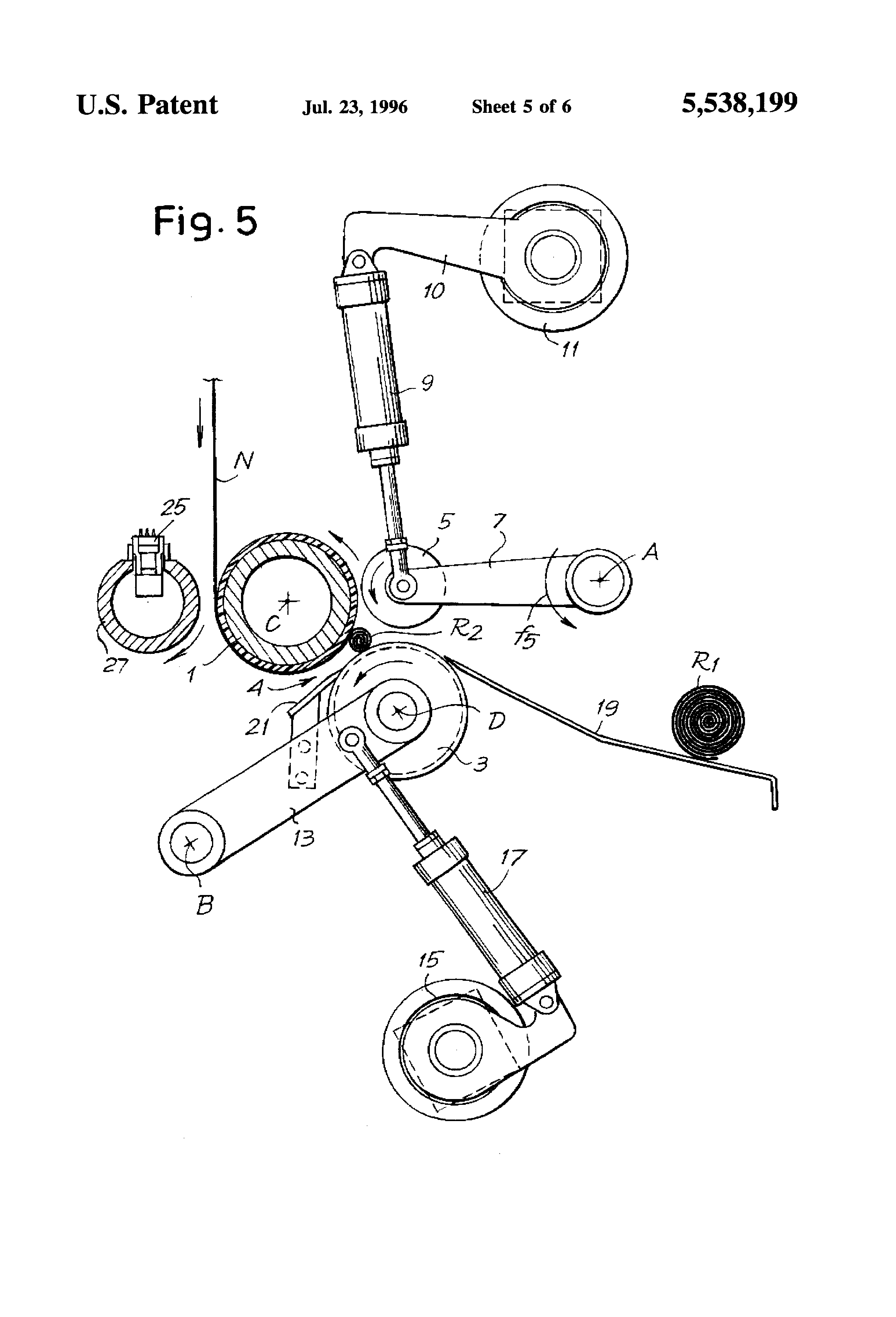 Although there is shown the movement of winding roller (3) toward winding roller (1), it is also possible that winding roller (3) does not oscillate and that winding roller (1) is caused to move toward winding roller (3).