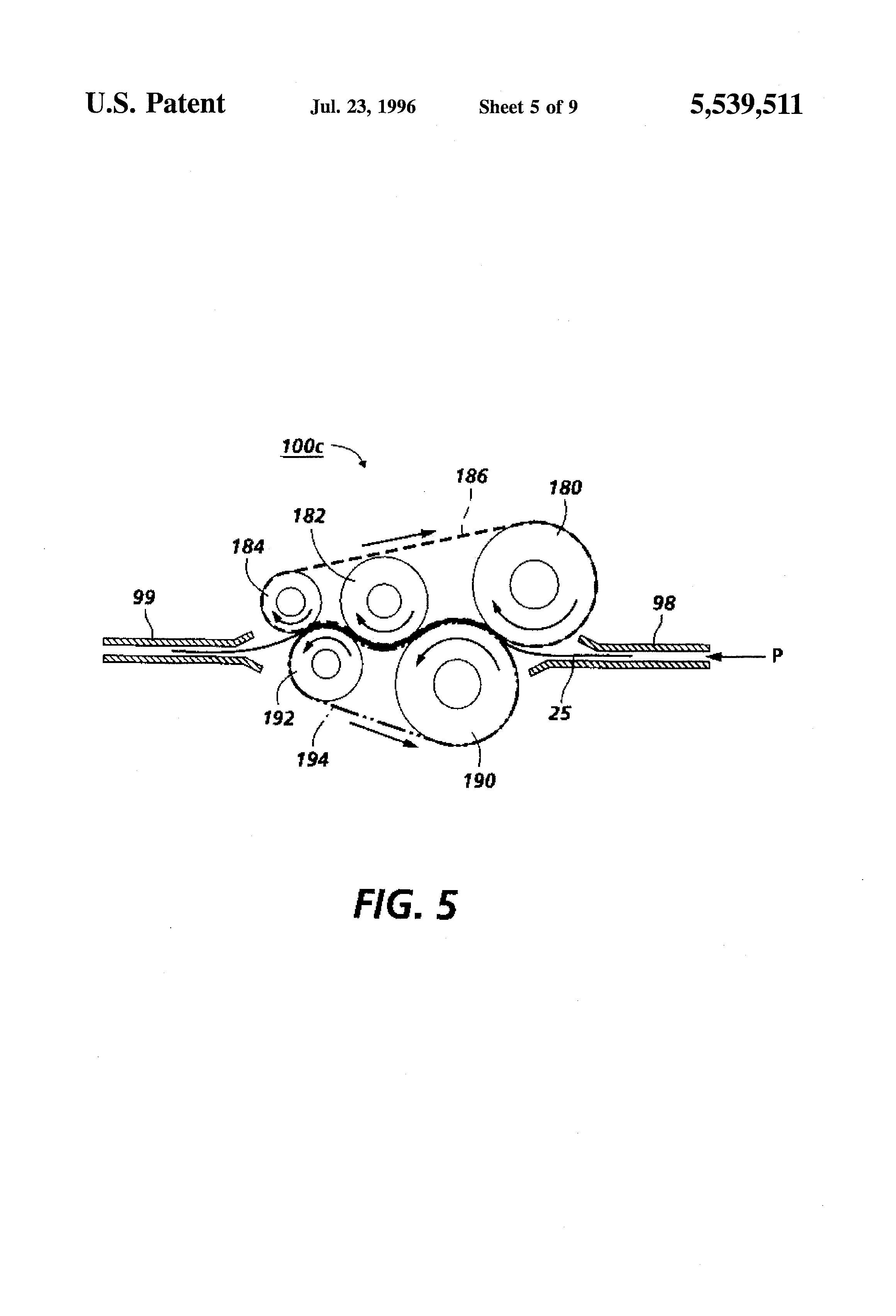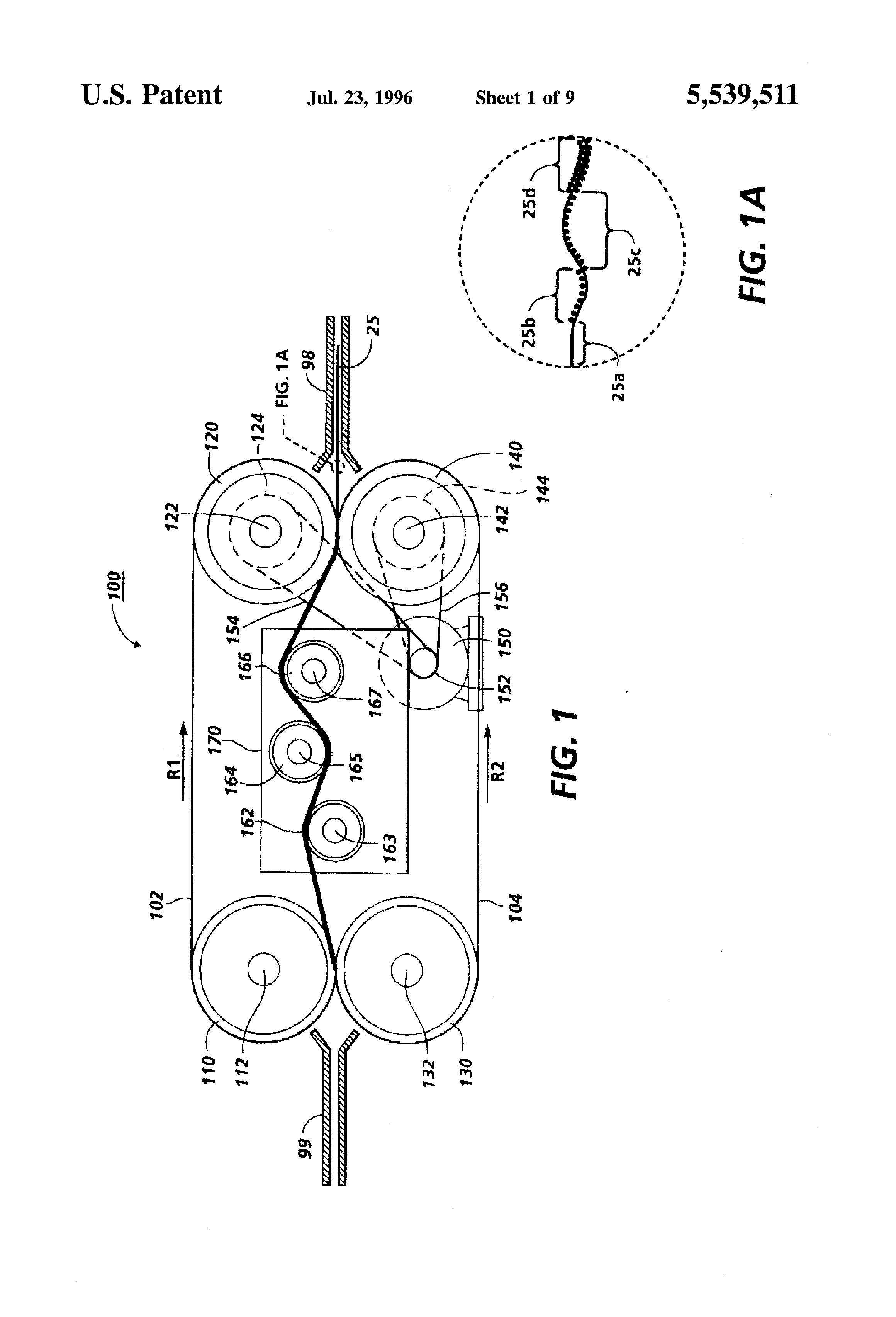 1. An apparatus for decurling a sheet having multiple curl conditions therein, comprising: a first decurling member positionable to contact the sheet for removing a first curl condition therefrom; a second decurling member positionable to contact the sheet for removing a second curl condition therefrom, said first decurling member and said second decurling member forming an extended multidirectional nip; and means for advancing the sheet along a sheet path through the multidirectional nip. 2. The apparatus of claim 1, wherein said advancing means comprises a first belt for contacting a first side of the sheet. 3. The apparatus of claim 2, wherein said advancing means comprises a second belt for contacting a second side of the sheet. 4. The apparatus of claim 3, wherein said second decurling member comprises a roller for directing said second belt into contact with the second side of the sheet. 5. The apparatus of claim 2, wherein said first decurling member comprises a roller for directing said first belt into contact with the first side of the sheet. 6. The apparatus of claim 1, wherein: said first decurling member includes a first arcuate portion for bending the sheet in a first direction; and said second decurling member includes a second arcuate portion for bending the sheet in a second direction opposed from the first direction. 7. The apparatus of claim 1, further comprising a third decurling member positionable in the multidirectional nip to contact the sheet for removing a third curl condition therefrom. 8. An apparatus for decurling a sheet having multiple curl conditions therein, comprising: a first decurling member positionable to contact the sheet for removing a first curl condition therefrom wherein said first decurling member comprises a first baffle for directing a first belt into contact with a first side of the sheet; a second decurling member positionable to contact the sheet for removing a second curl condition therefrom, said first decurling member and said second decurling member forming an extended multidirectional nip; and means for advancing the sheet along a sheet path through the multidirectional nip wherein said advancing means comprises said first belt for contacting said first side of the sheet. 9. An apparatus for decurling a sheet having multiple curl conditions therein, comprising: a first decurling member positionable to contact the sheet for removing a first curl condition therefrom; a second decurling member positionable to contact the sheet for removing a second curl condition therefrom, said first decurling member and said second decurling member forming an extended multidirectional nip wherein said second decurling member comprises a baffle for directing a second belt into contact with a second side of the sheet; and means for advancing the sheet along a sheet path through the multidirectional nip wherein said advancing means comprises a first belt for contacting a first side of the sheet and said second belt for contacting said second side of the sheet. 10. An apparatus for decurling a sheet having multiple curl conditions therein, comprising: a first decurling member positionable to contact the sheet for removing a first curl condition therefrom, wherein said first decurling member bends the sheet at a positive angle relative to a sheet path; a second decurling member positionable to contact the sheet for removing a second curl condition therefrom, said first decurling member and said second decurling member forming an extended multidirectional nip wherein said second decurling member bends the sheet at a negative angle relative to the sheet path with the positive angle being of a greater magnitude than the negative angle; and means for advancing the sheet along the sheet path through the multidirectional nip. 11. An apparatus for decurling a sheet having multiple curl conditions therein, comprising: a first decurling member positionable to contact the sheet for removing a first curl condition therefrom wherein said first decurling member bends the sheet at a first angle relative to a sheet path; a second decurling member positionable to contact the sheet for removing a second curl condition therefrom, said first decurling member and said second decurling member forming an extended multidirectional nip, wherein said second decurling member bends the sheet at a second angle relative to the sheet path; means for variably positioning said first and second decurling members so as to alter said first and second angles; and means for advancing the sheet along the sheet path through the multidirectional nip. 12. An apparatus for decurling a sheet having multiple curl conditions therein, comprising: a first decurling member positionable to contact the sheet for removing a first curl condition therefrom wherein said first decurling member bends the sheet at a positive angle relative to a sheet path; a second decurling member positionable to contact the sheet for removing a second curl condition therefrom, said first decurling member and said second decurling member forming an extended multidirectional nip wherein said second decurling member bends the sheet at a negative angle relative to the sheet path with the positive angle being of a greater magnitude than the negative angle; a third decurling member positionable in the multidirectional nip to contact the sheet for removing a third curl condition therefrom whereby said third decurling member bends the sheet at a second positive angle relative to the sheet path with the second positive angle having a lesser absolute value than the negative angle; and means for advancing the sheet along a sheet path through the multidirectional nip. 13. A printing machine for printing indicia on sheets of the type including a decurler for decurling a sheet having multiple curl conditions therein, comprising: an extended multidirectional nip including a first decurling member positionable to contact the sheet for removing 
